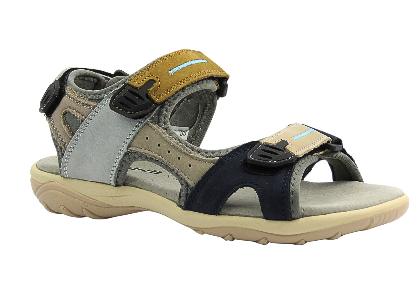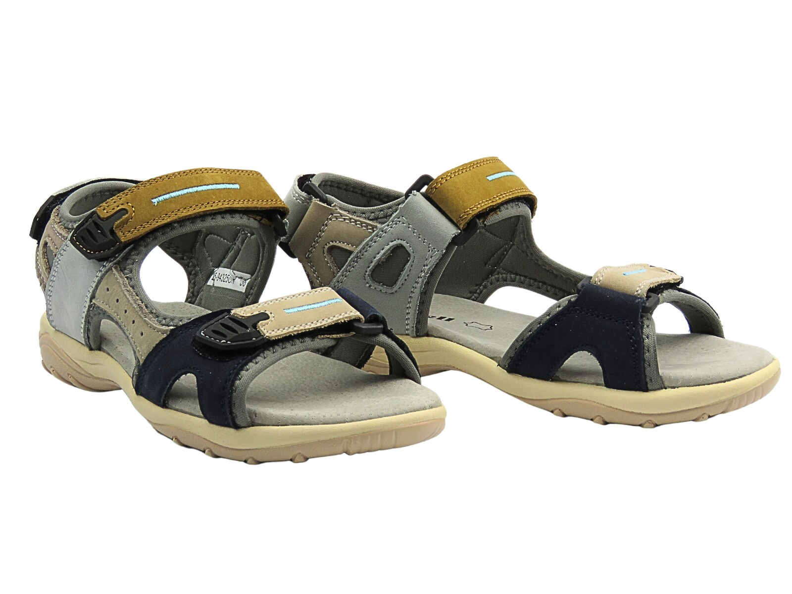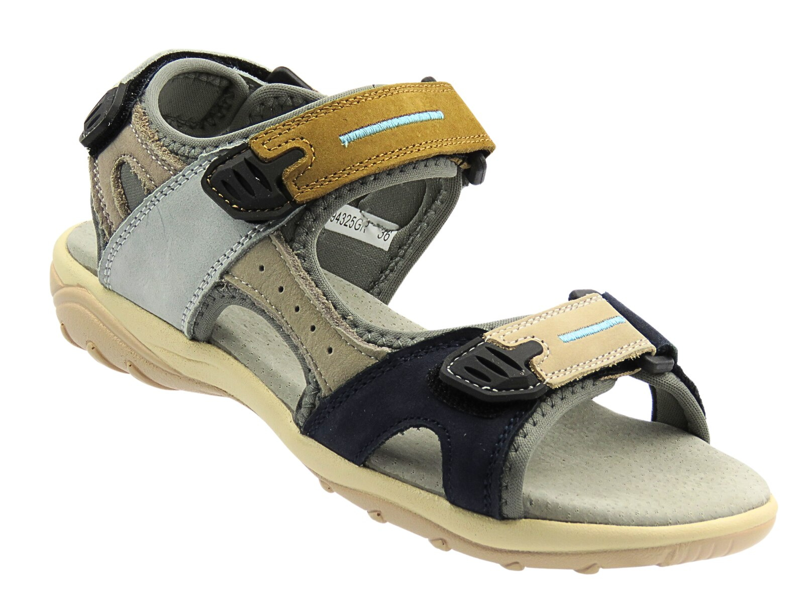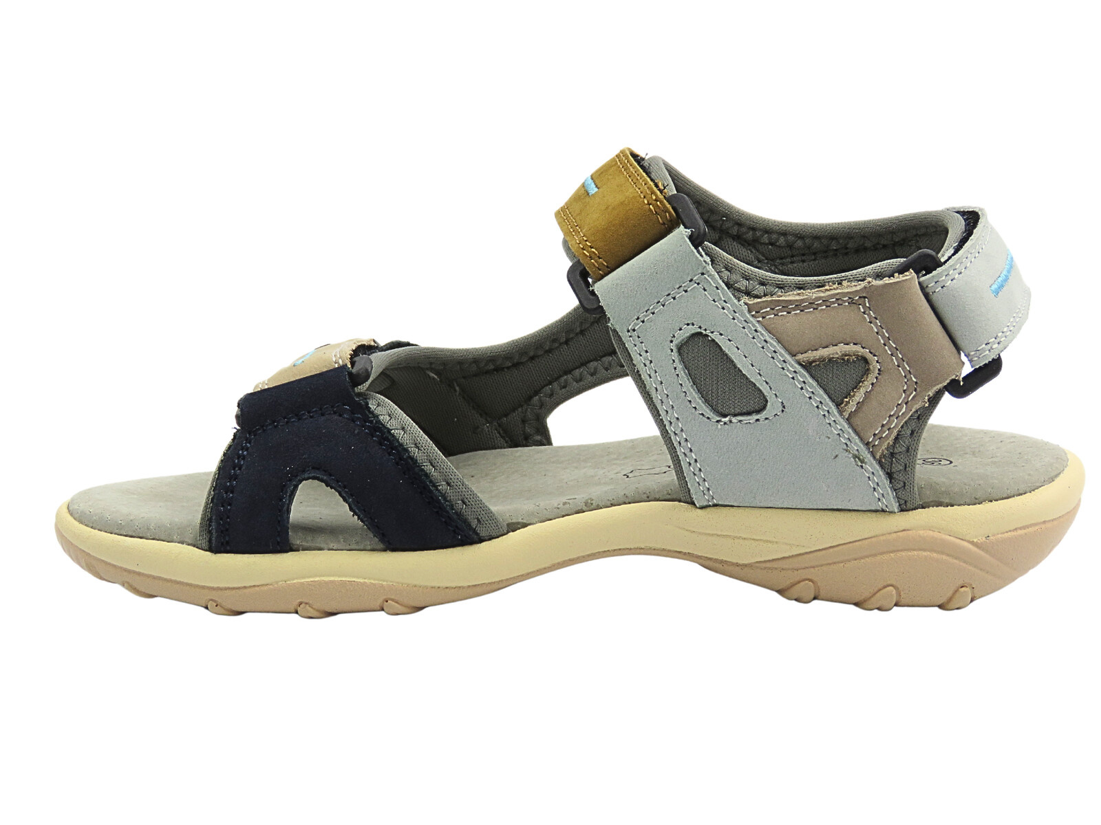 Skórzane sandały damskie na rzepy szare Cambell 25-94325