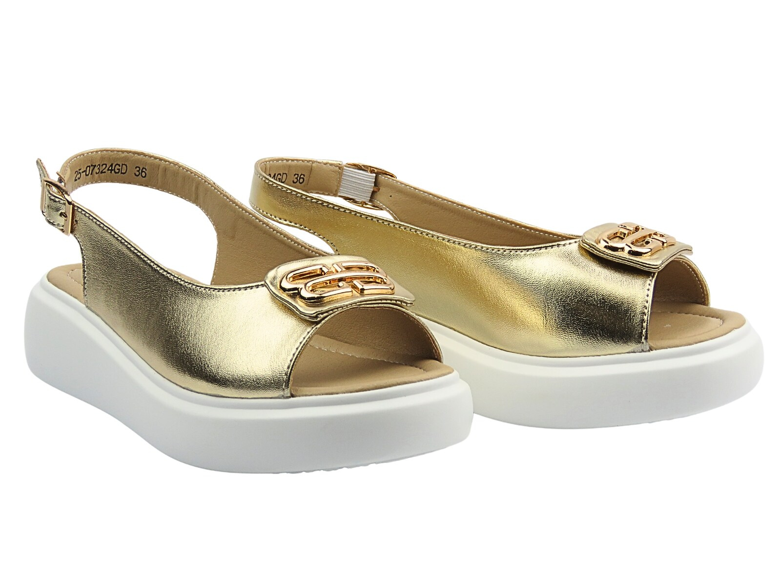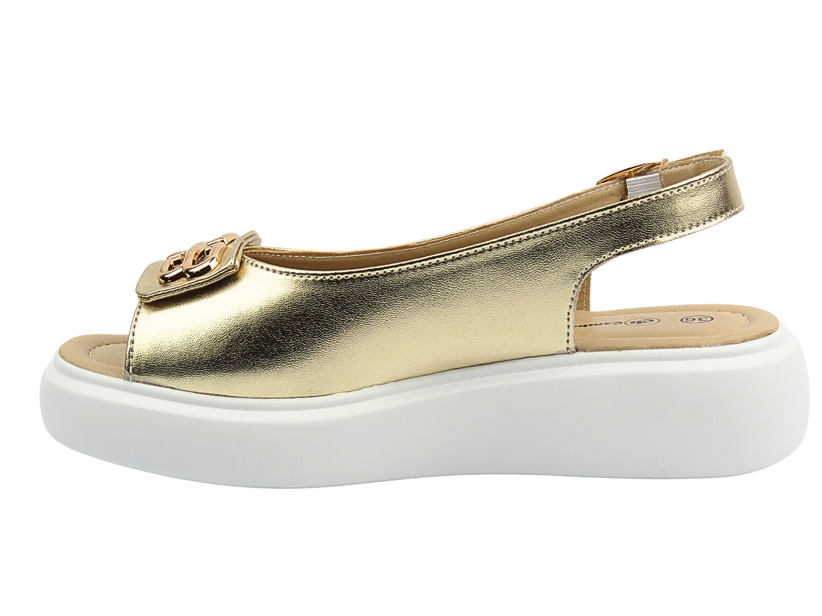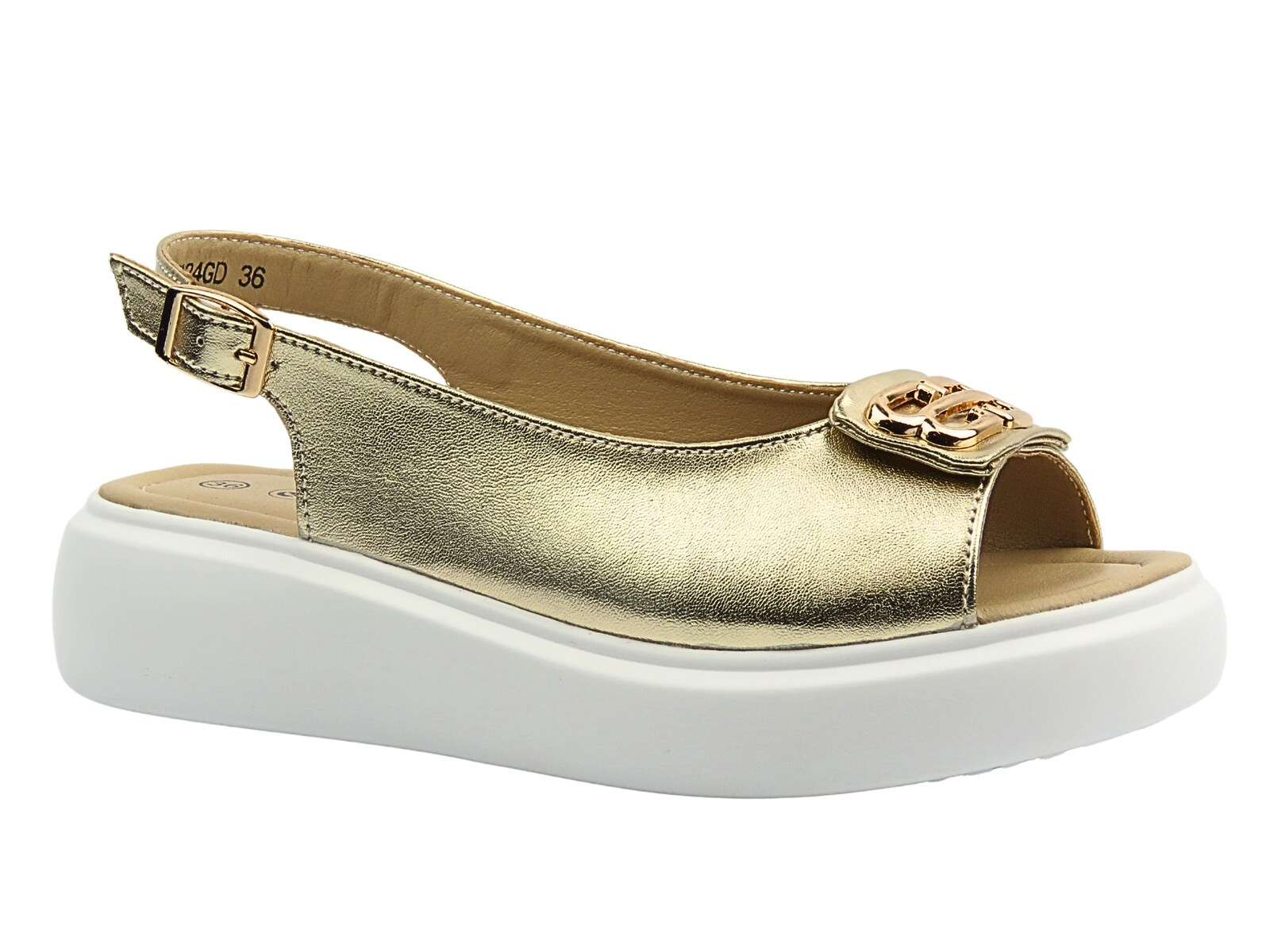 Skórzane sandały damskie na platformie złote Cambell 25-07324