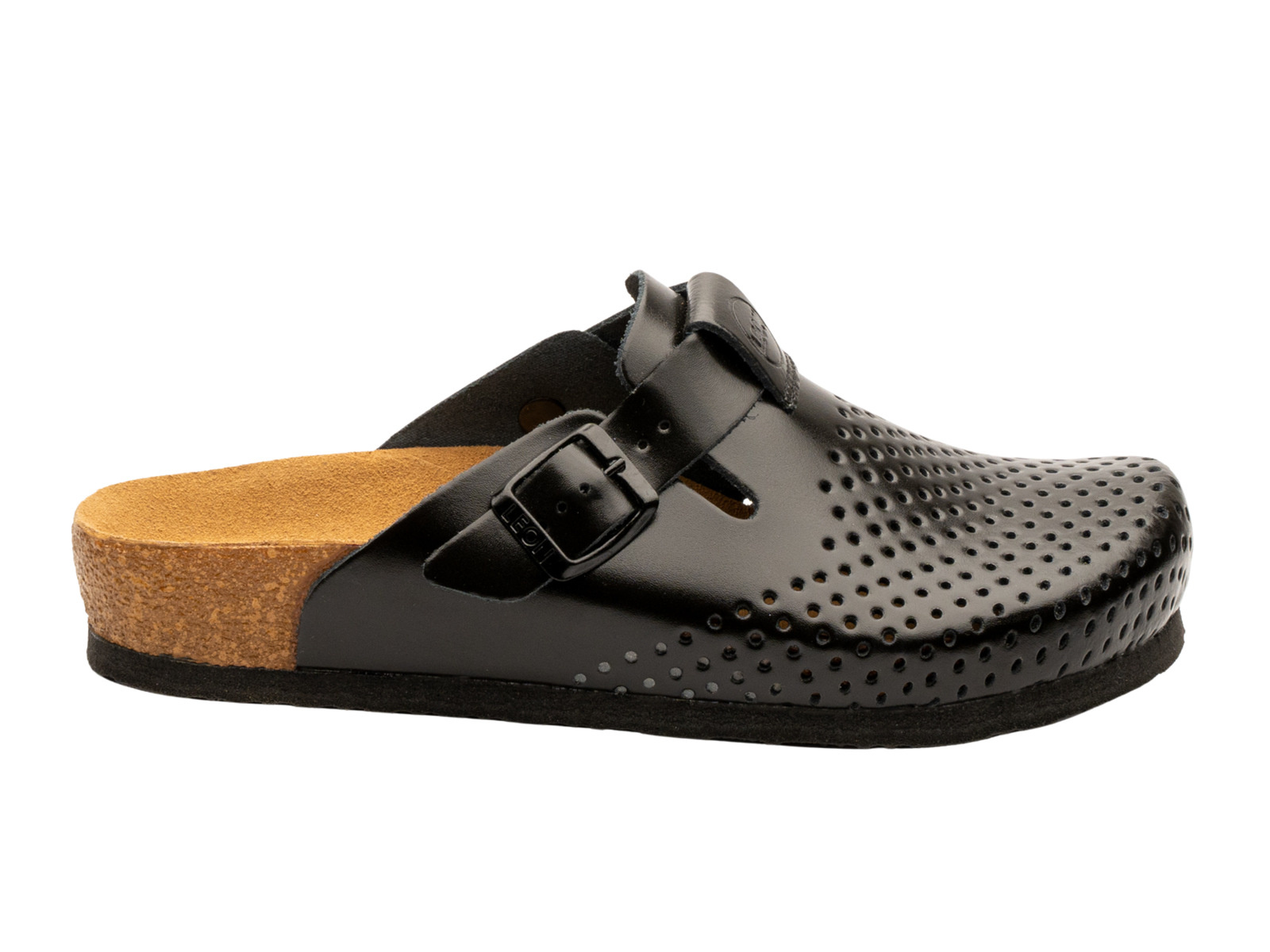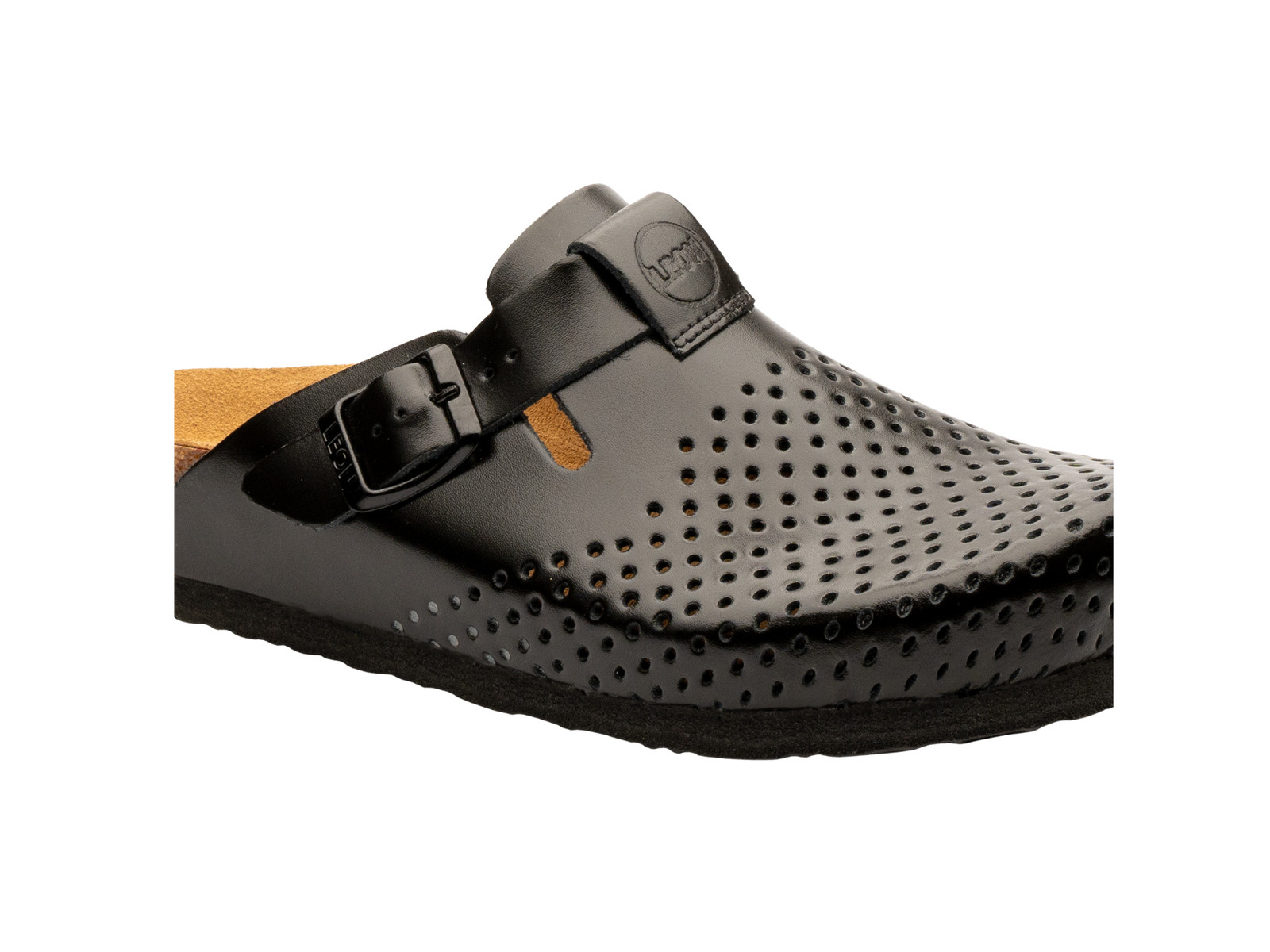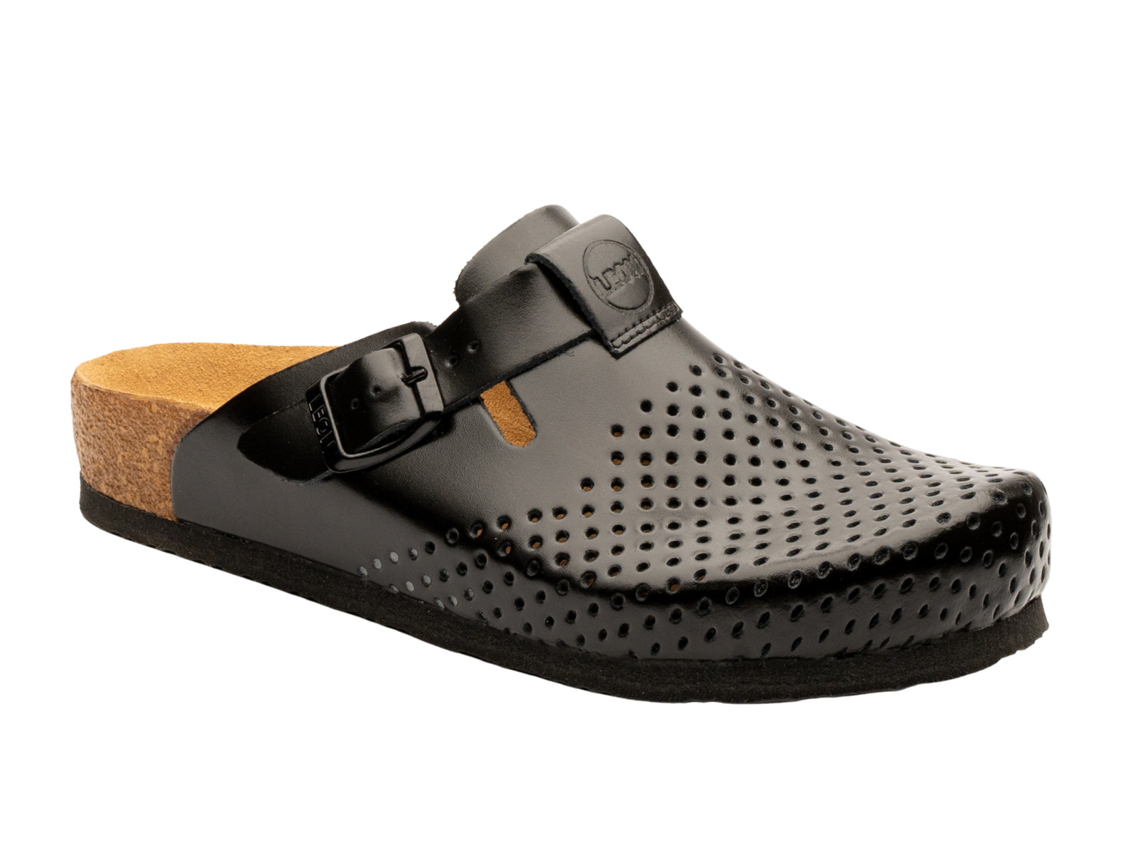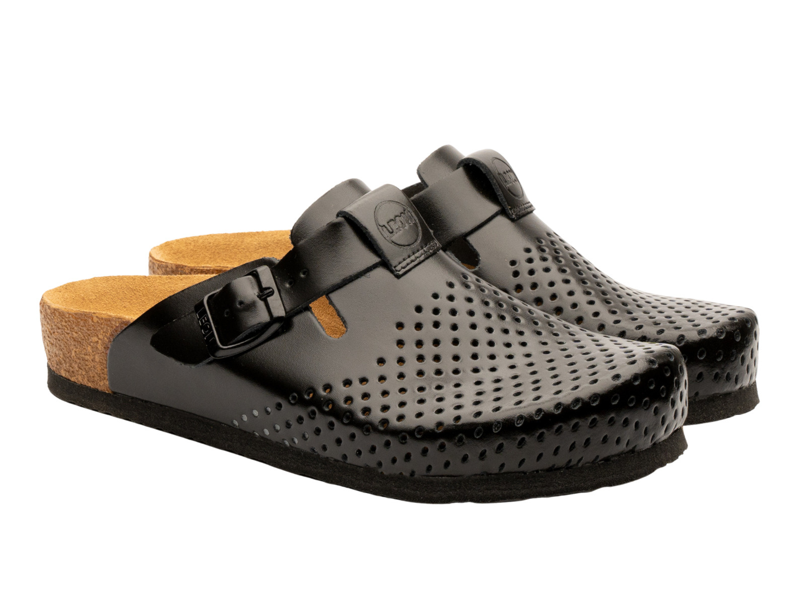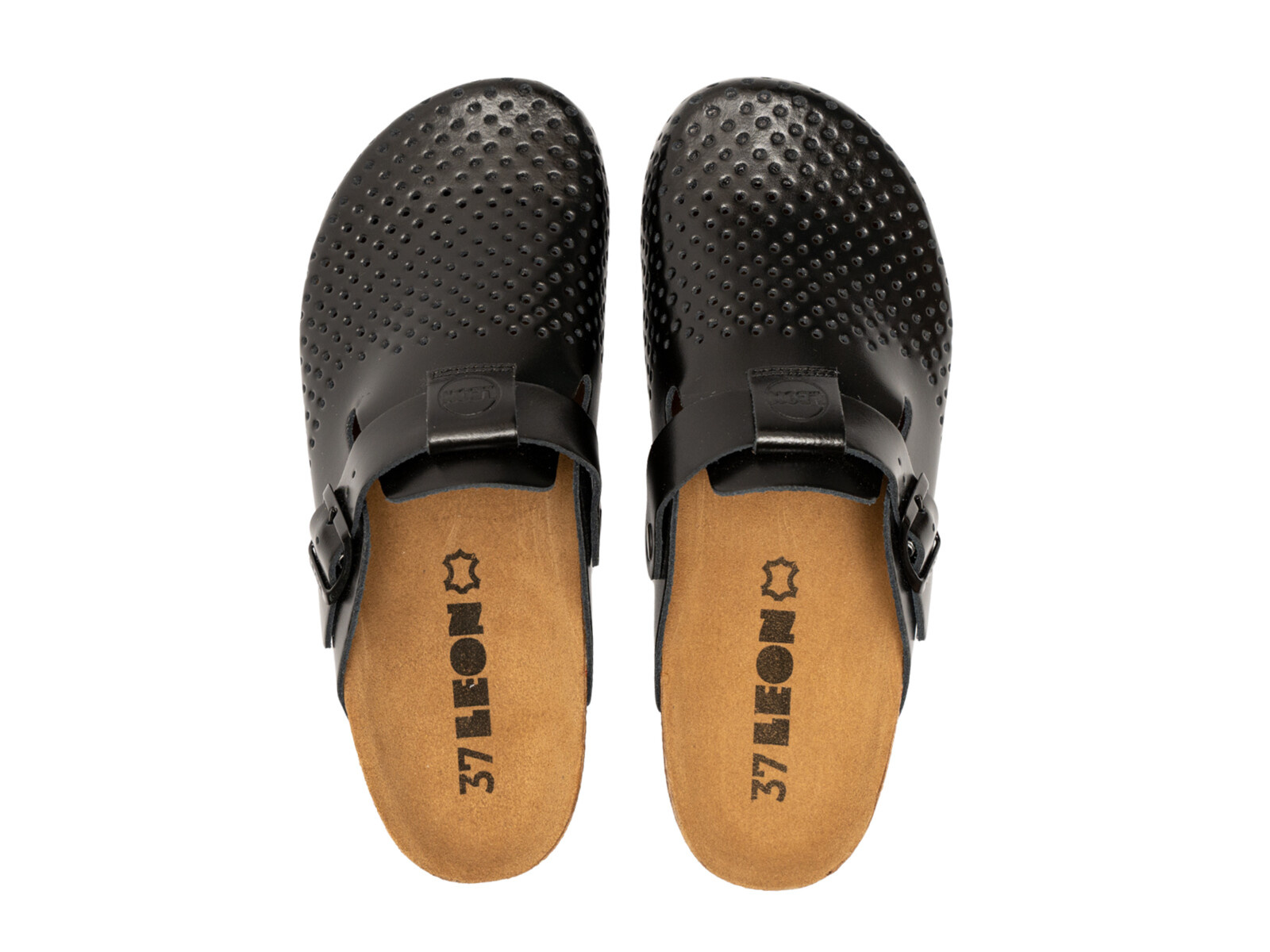 Skórzane klapki damskie Leon 4250 czarne z klamrą – komfort i elegancja