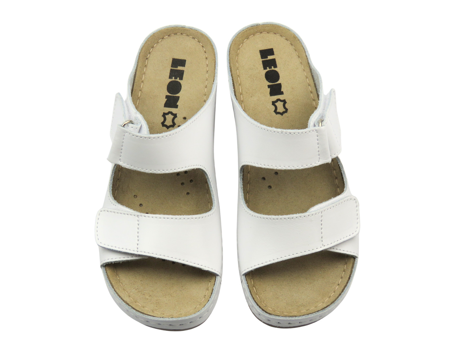 Te wygodne klapki Leon 905 w klasycznym białym kolorze to doskonałe rozwiązanie dla osób, które cenią sobie połączenie estetyki i zdrowego wsparcia dla stóp.