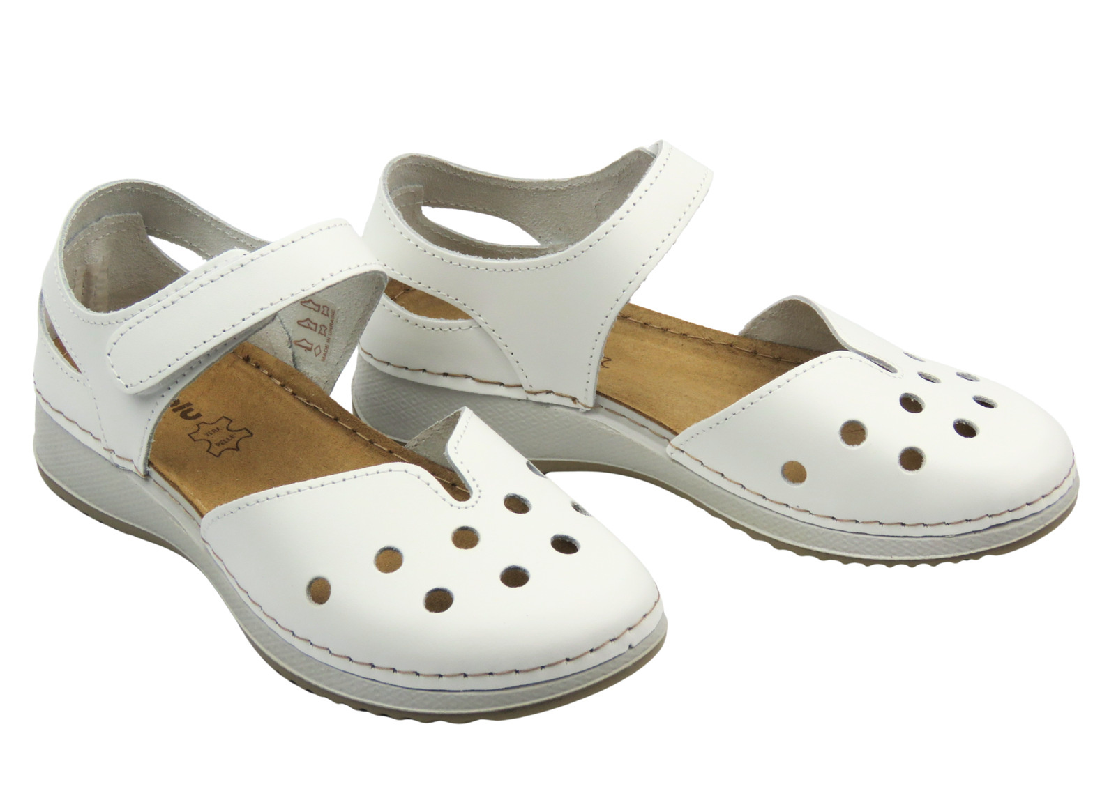 Skórzane sandały damskie z zakrytymi palcami białe Inblu SD-3KU