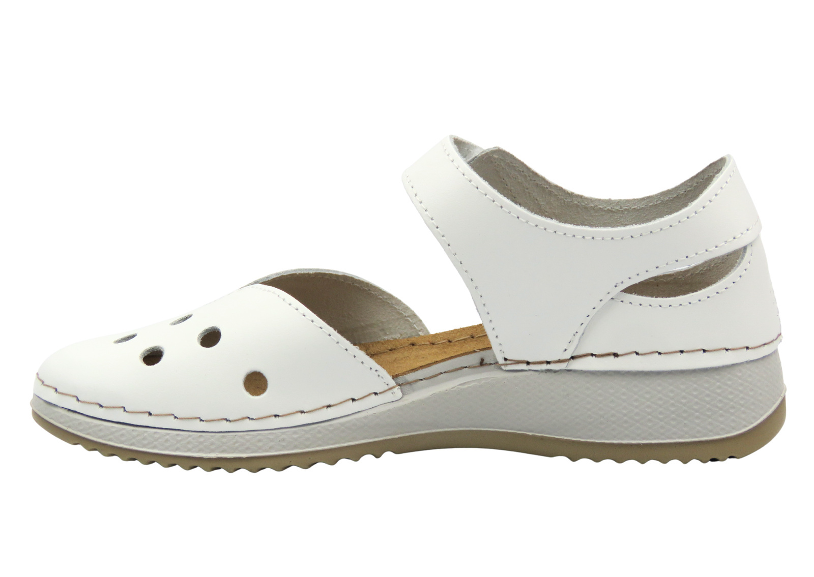Inblu SD-3KU to zabudowane sandały damskie stworzone z myślą o kobietach, które cenią wygodę, ochronę stopy i ponadczasowy styl. Ich klasyczny biały kolor w połączeniu z subtelną perforacją sprawia, że doskonale wpisują się w letnią garderobę, zapewniając jednocześnie przewiewność i elegancki wygląd.