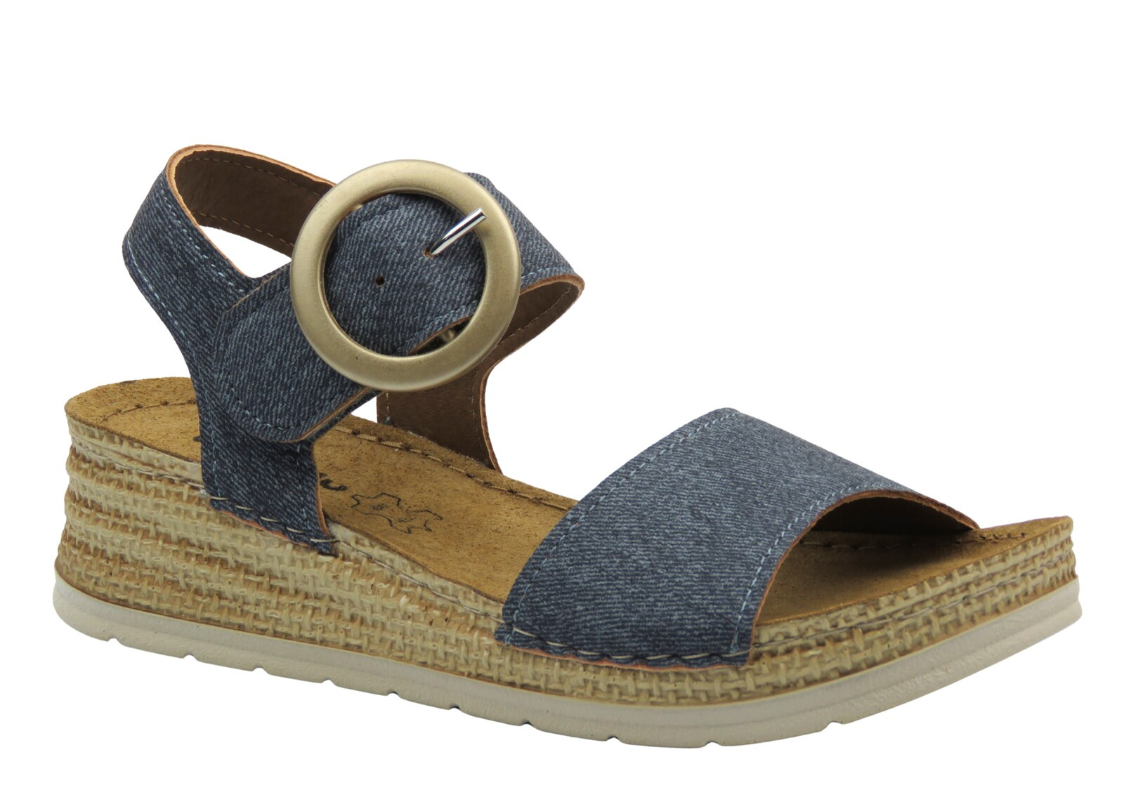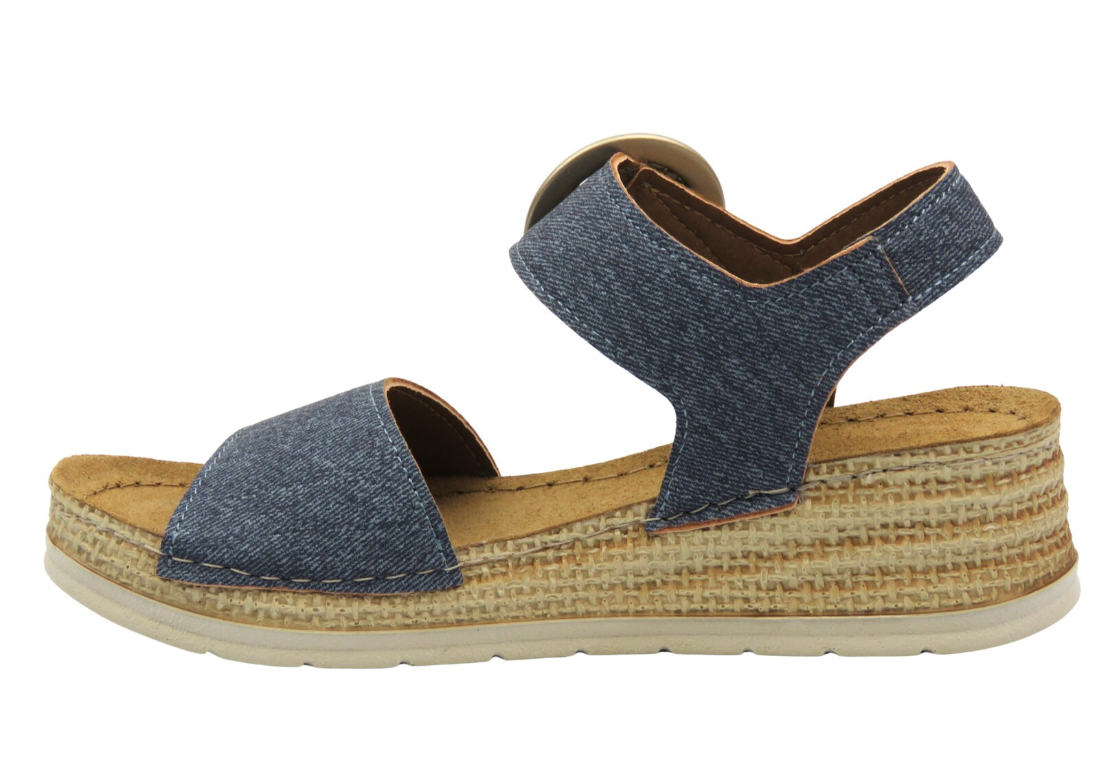 Model Inblu RV-13 to modne sandały na koturnie w granatowym kolorze, które łączą letnią lekkość z eleganckim stylem. Cholewka wykonana ze skóry ekologicznej idealnie dopasowuje się do stopy, zapewniając trwałość i przyjemny wygląd. To propozycja dla kobiet, które chcą wyglądać stylowo i czuć się swobodnie każdego dnia.