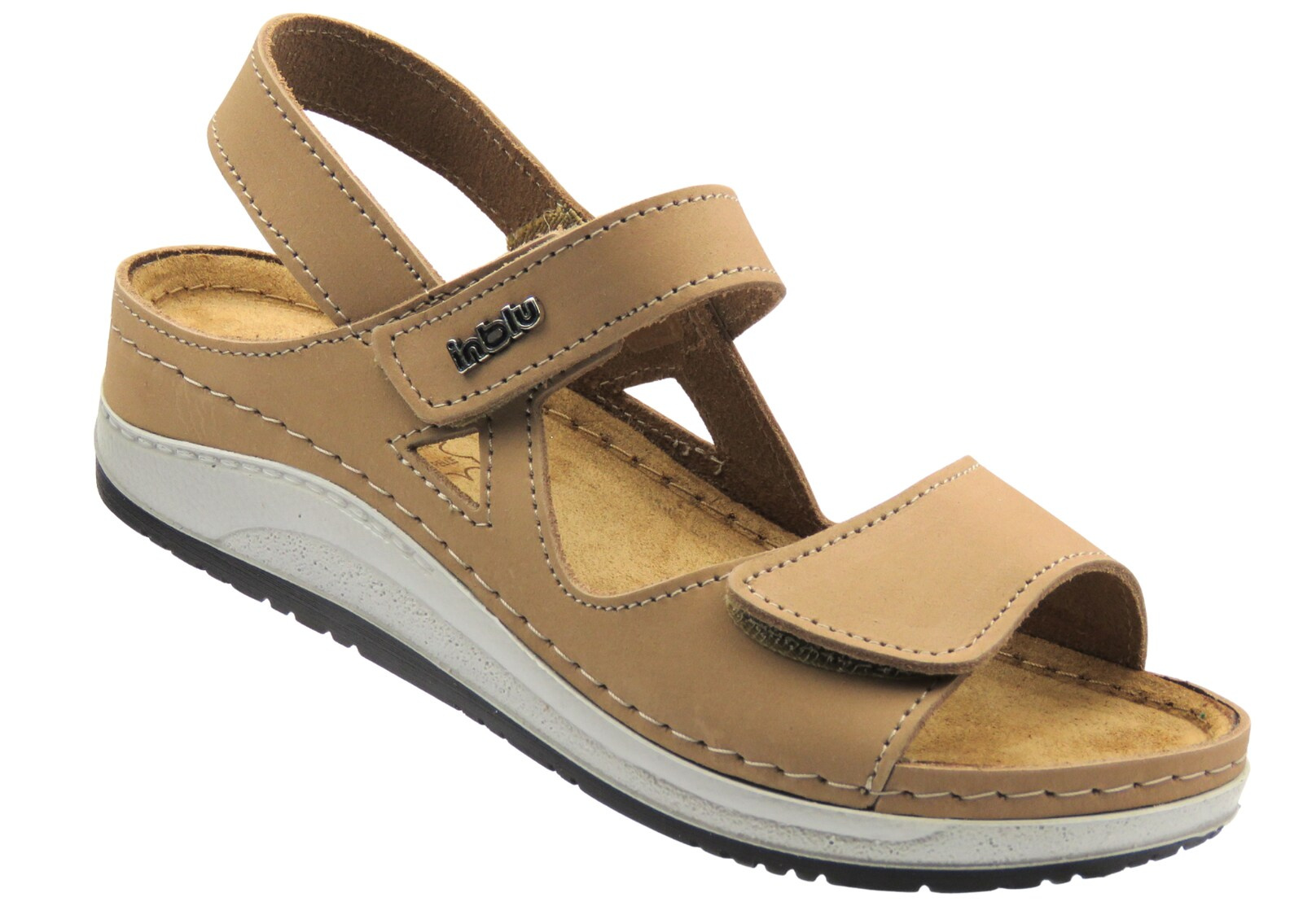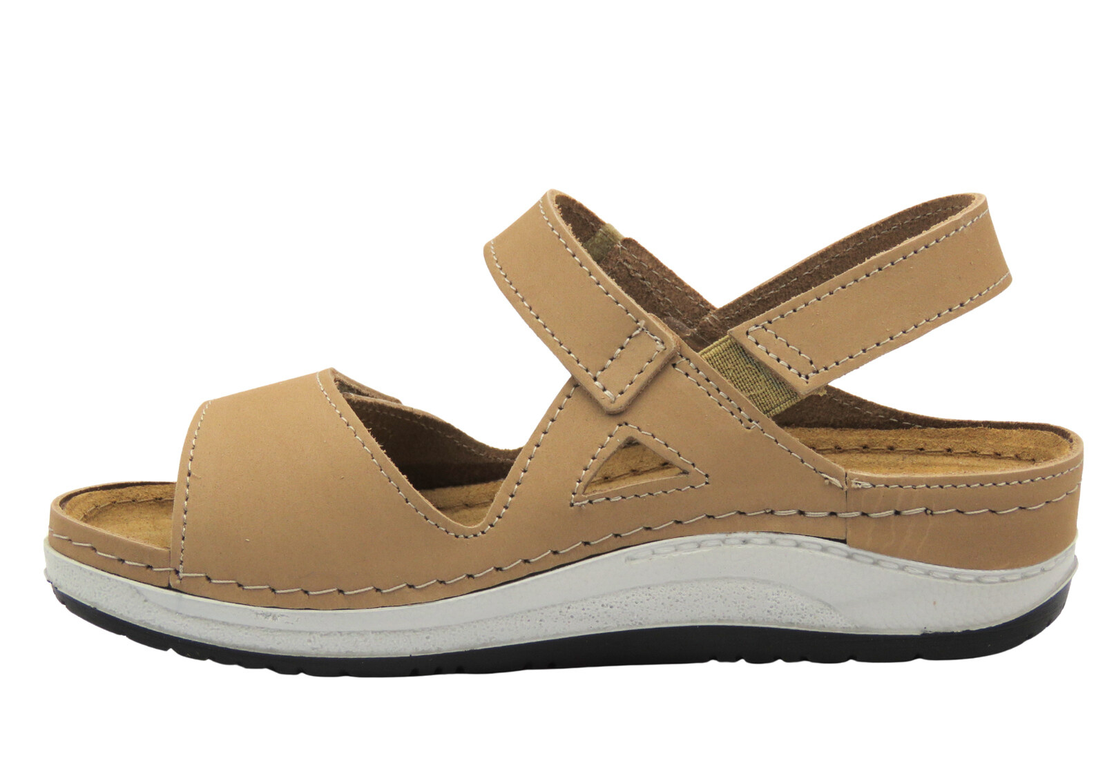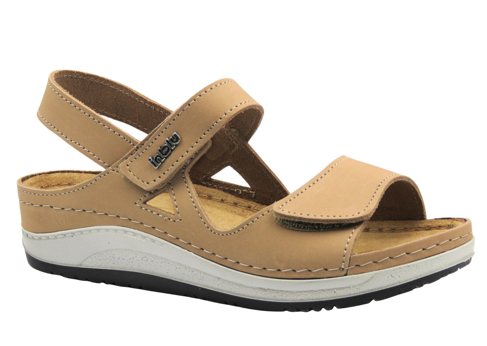 Komfortowe sandały damskie ze skóry naturalnej jasnobrązowe Inblu PF-1KU