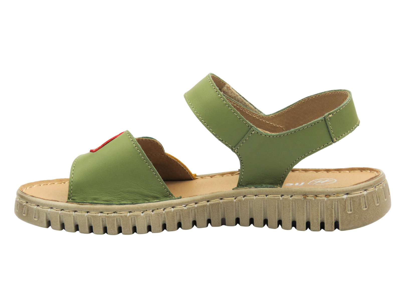 Skórzane sandały damskie na rzep zielone Helios Komfort 151