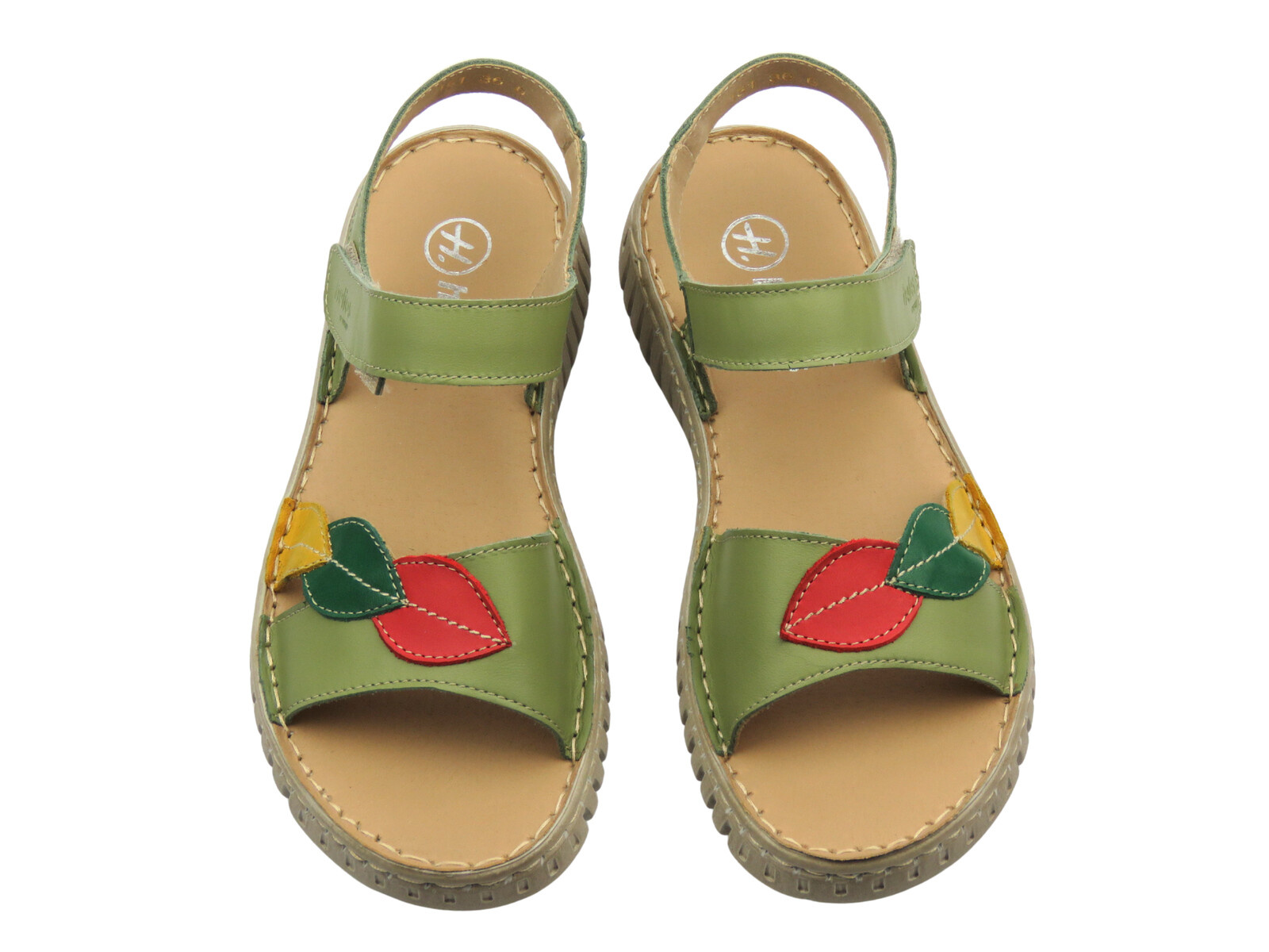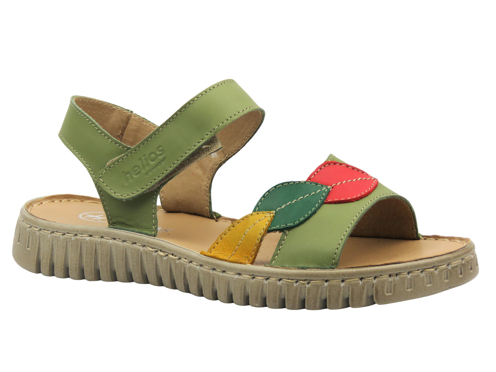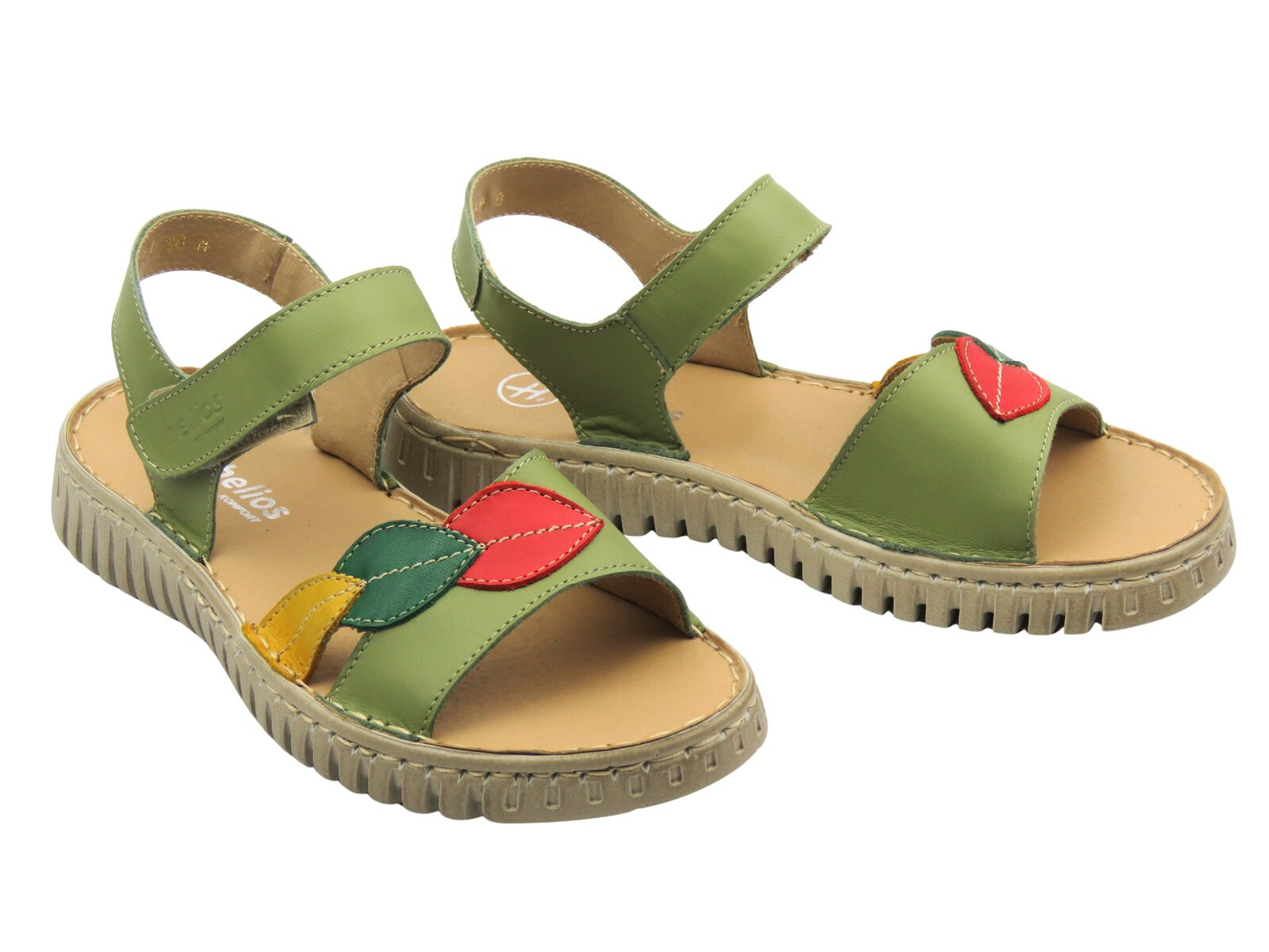 Skórzane sandały damskie Helios Komfort 151, zielone