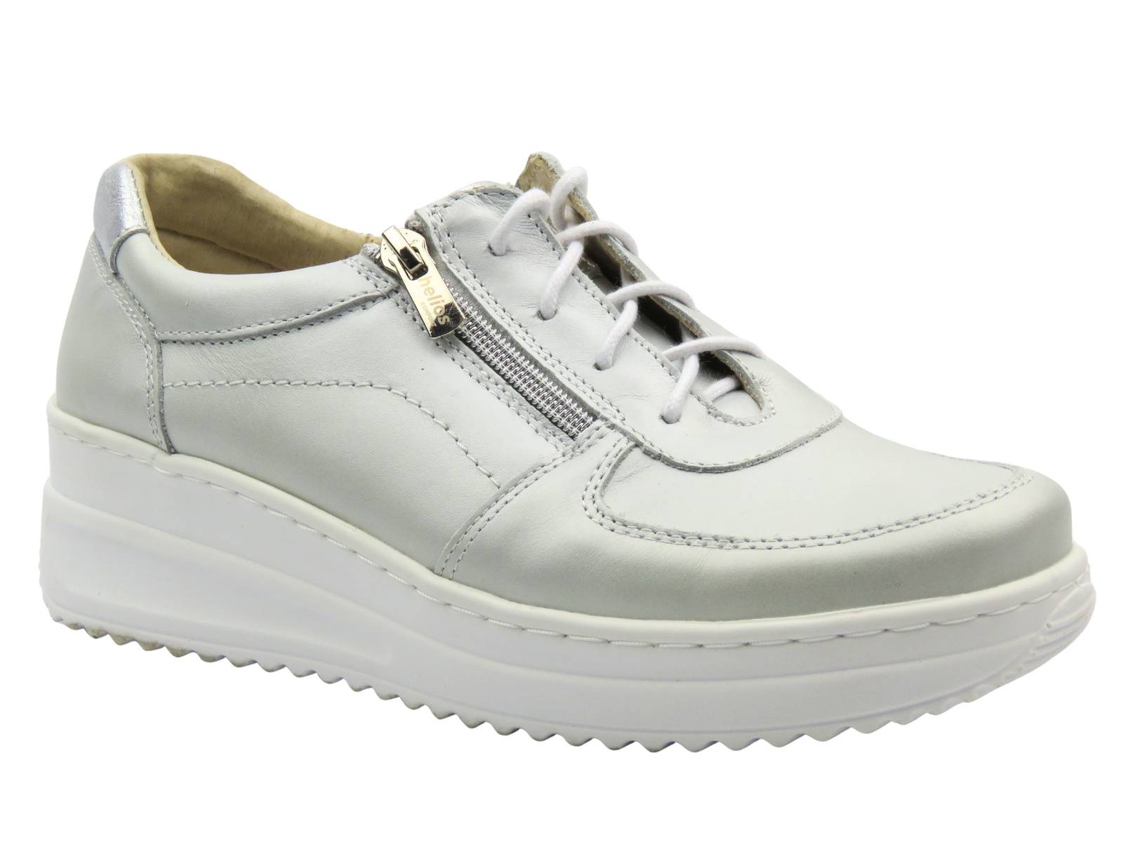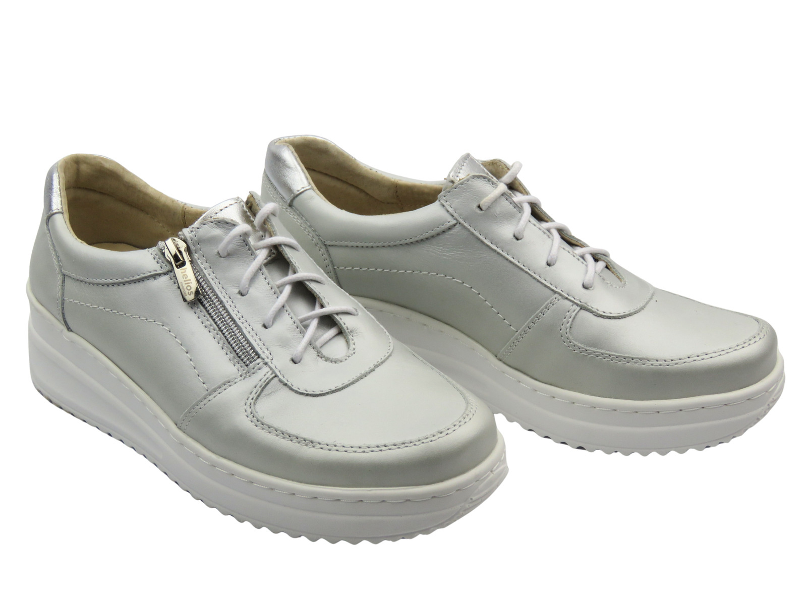 Wygodne, skórzane półbuty damskie srebrne Helios 419