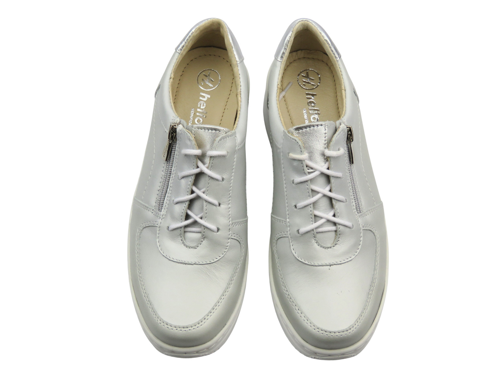 Półbuty damskie cenionej polskiej marki Helios Komfort zostały wykonane z wysokiej jakości skóry naturalnej licowej w eleganckim, srebrnym odcieniu.