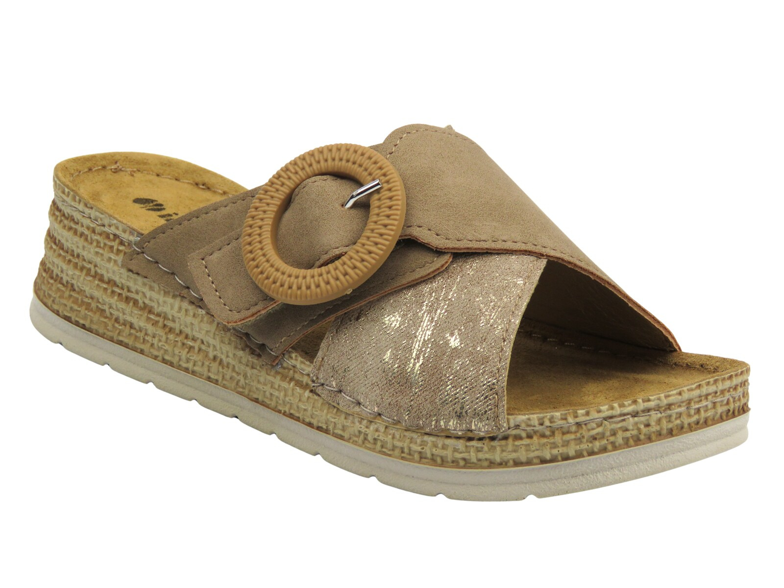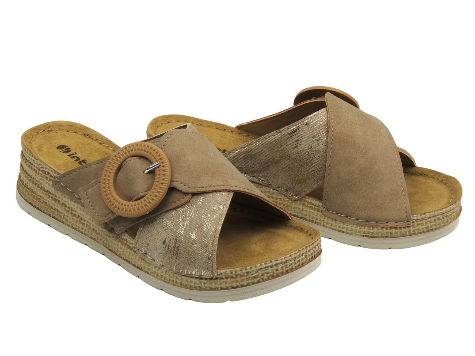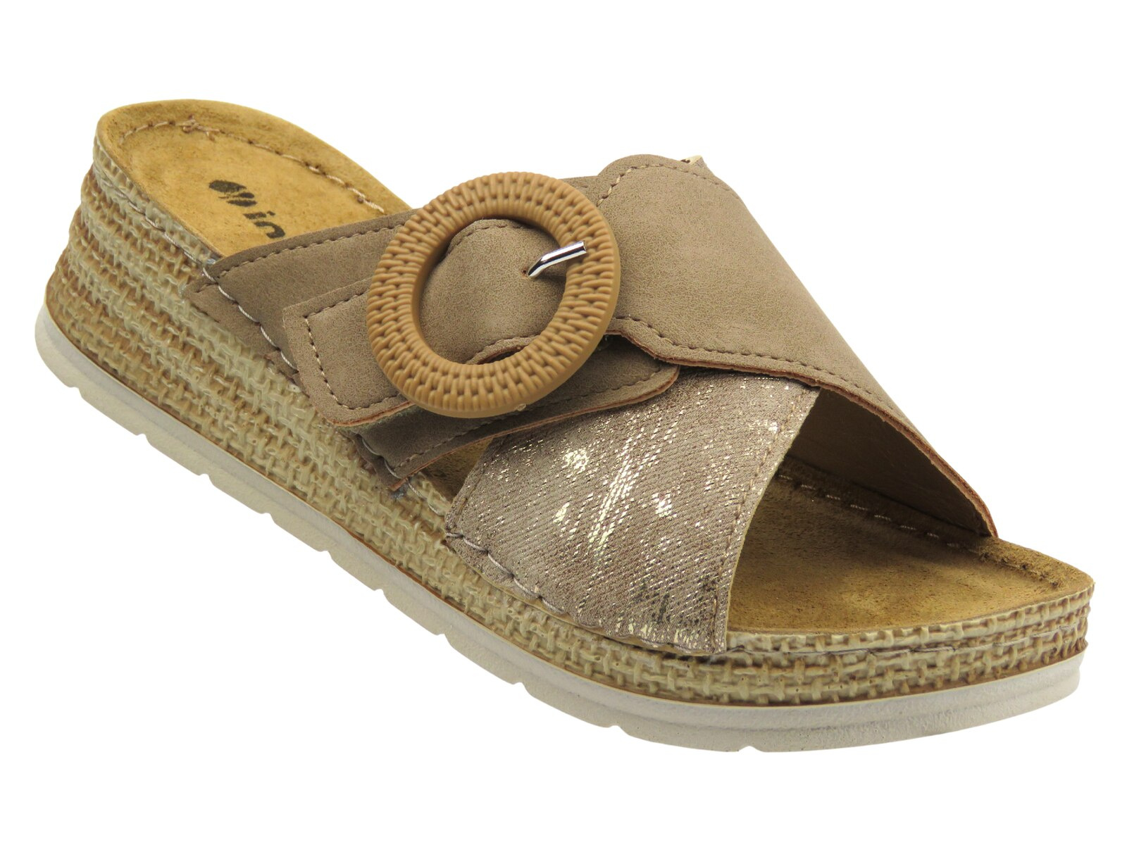 Klapki damskie na koturnie jasnobrązowe Inblu RV-12