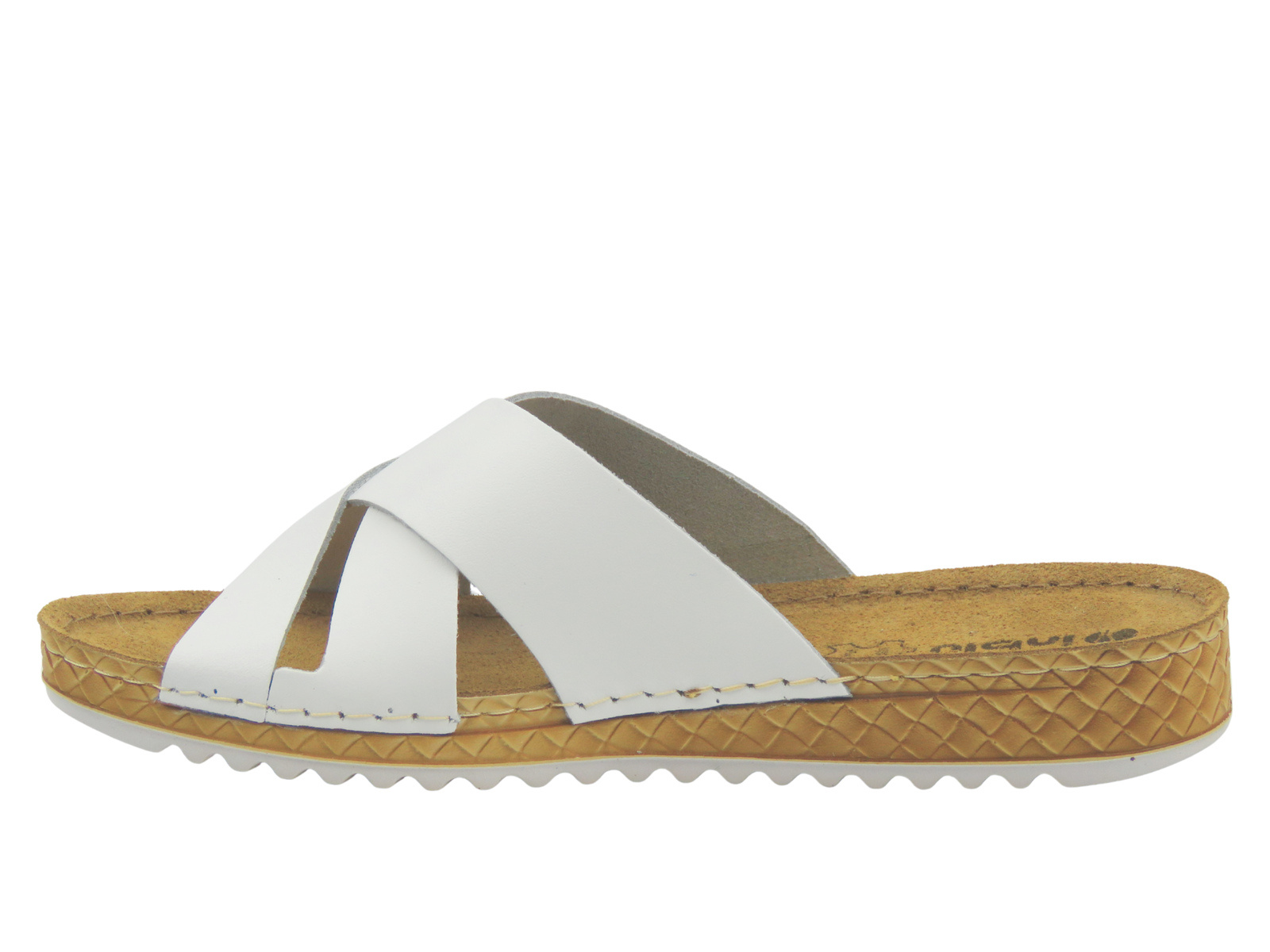Skórzana cholewka w formie krzyżujących się pasków zapewnia doskonałe dopasowanie do stopy oraz przewiewność. Wnętrze i wkładka ze skóry naturalnej gwarantują oddychalność, higienę i komfort podczas całodziennego noszenia.