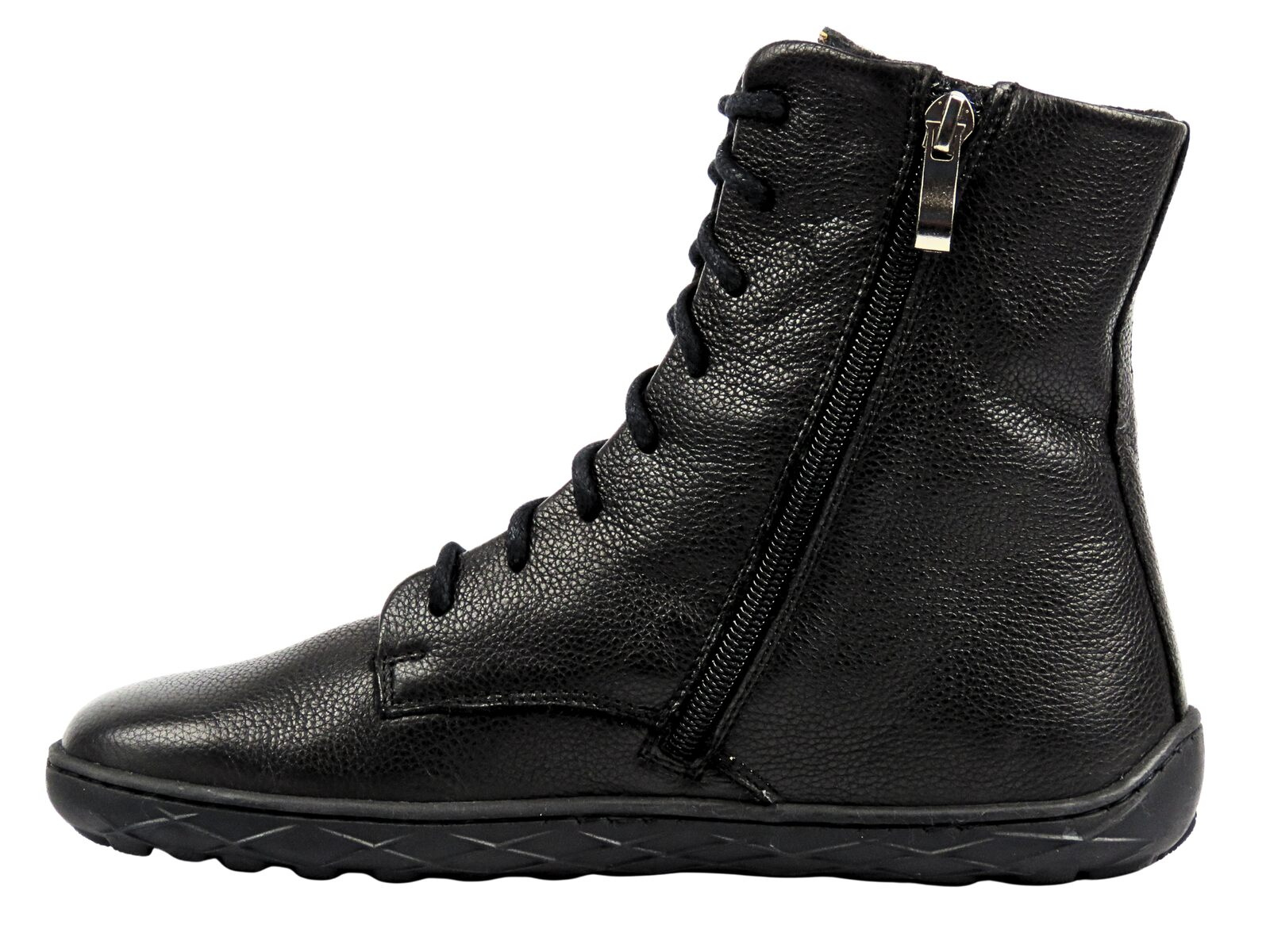 Sznurowanie w połączeniu z bocznym suwakiem ułatwia zakładanie i pozwala na wygodne dopasowanie obuwia do stopy. 2-centymetrowa podeszwa amortyzuje kroki i izoluje od podłoża, zapewniając komfort przez cały dzień.