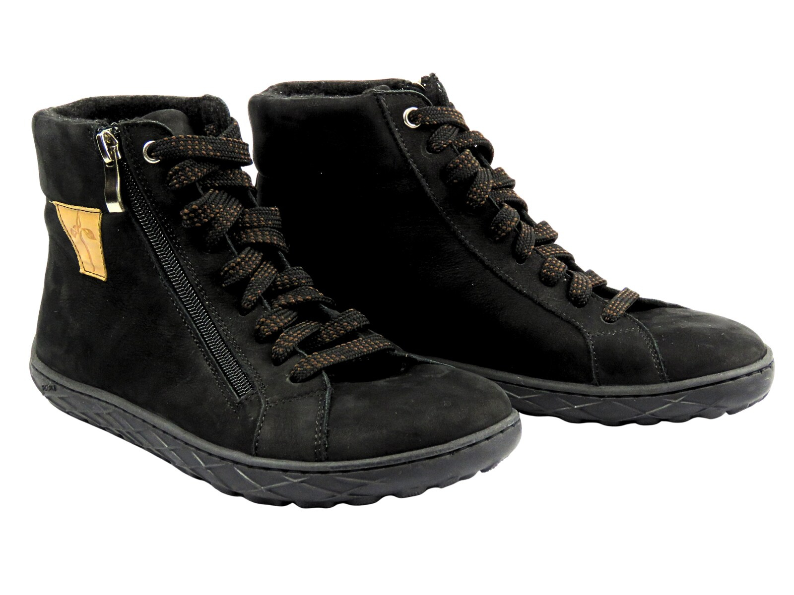 Barefoot botki minimalistyczne damskie Nika Komfort 1443, czarne – ciepło i wygoda na co dzień