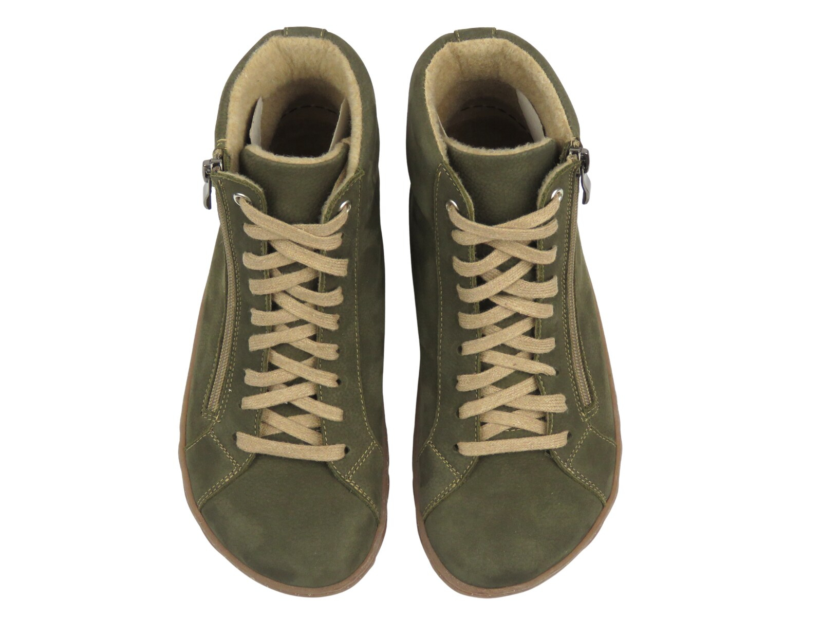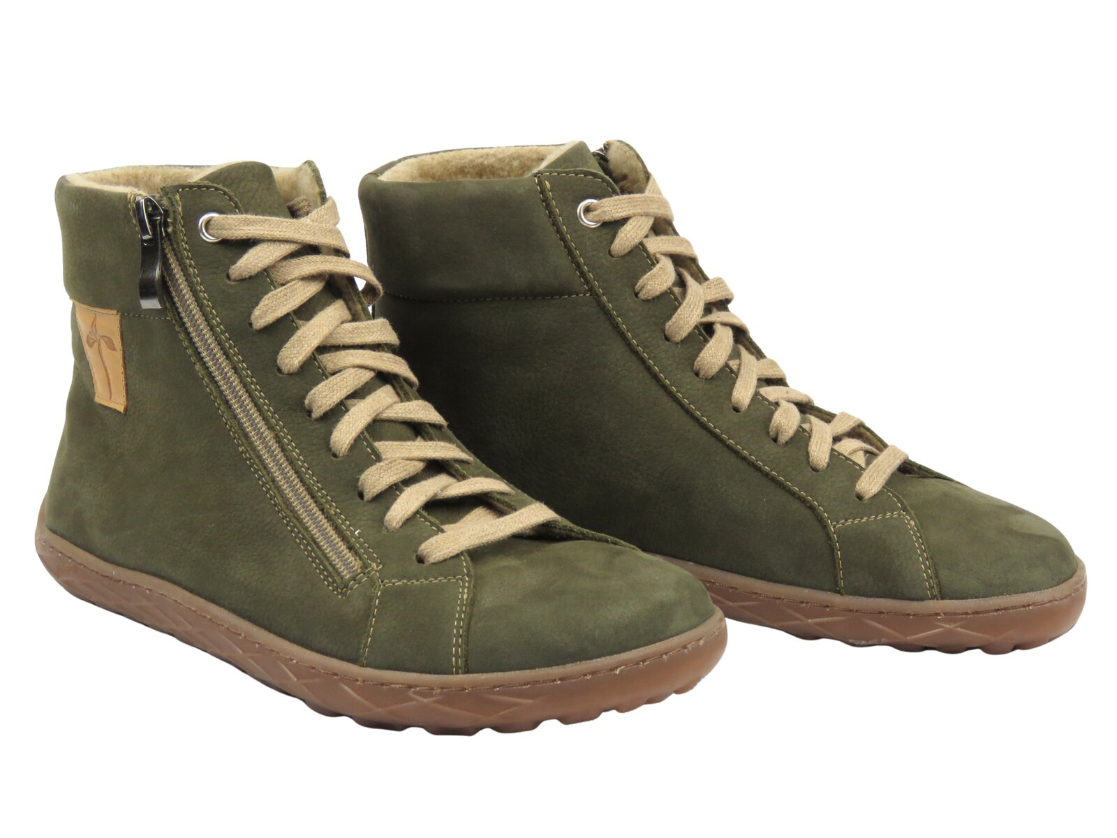 Barefoot botki minimalistyczne damskie Nika Komfort 1443, oliwkowe – ciepło i wygoda na co dzień