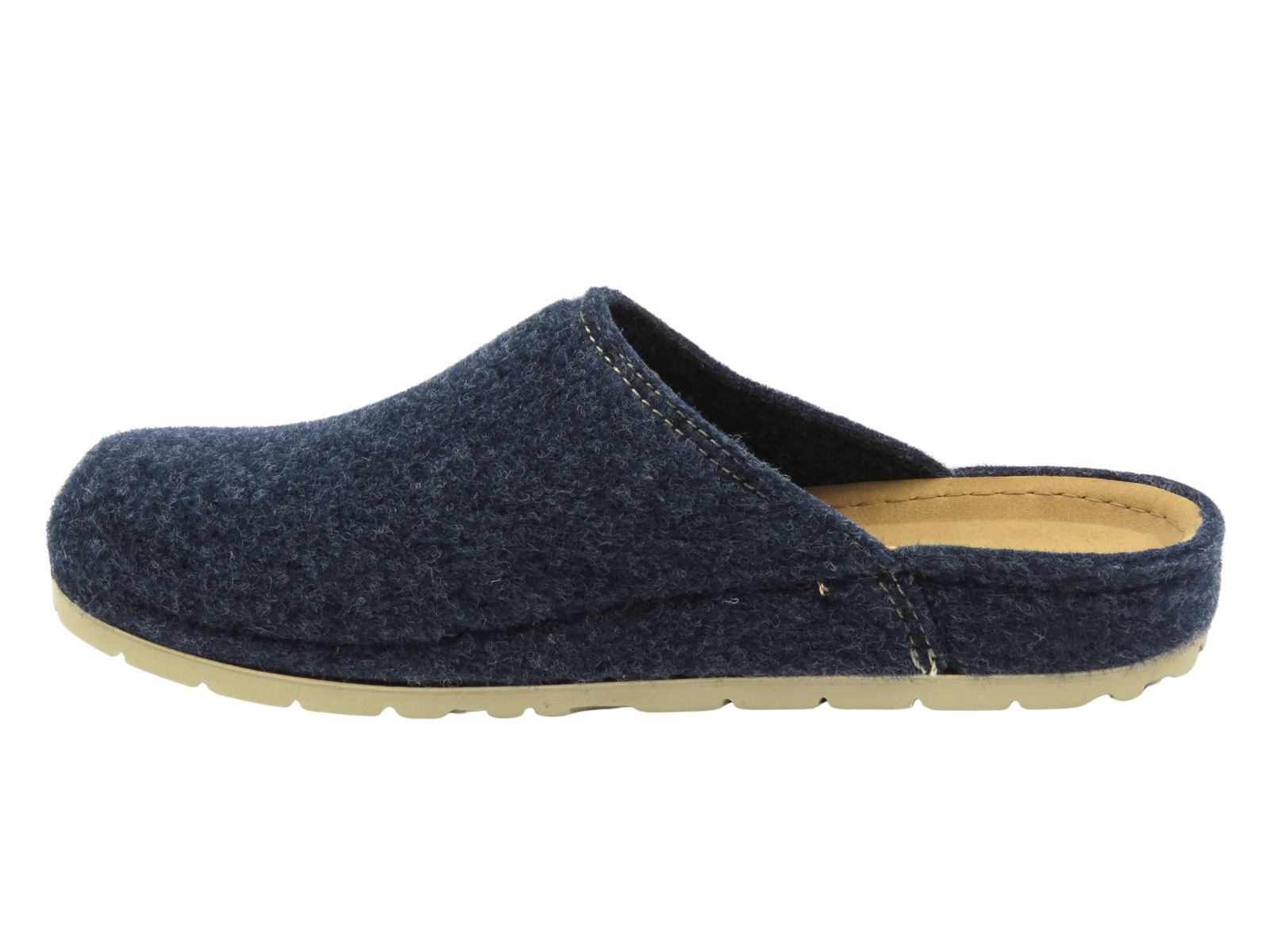 Wnętrze oraz wkładka pokryte są skórą ekologiczną, co gwarantuje miękkość oraz łatwość utrzymania czystości – to idealne rozwiązanie dla osób, które szukają praktycznych domowych pantofli.