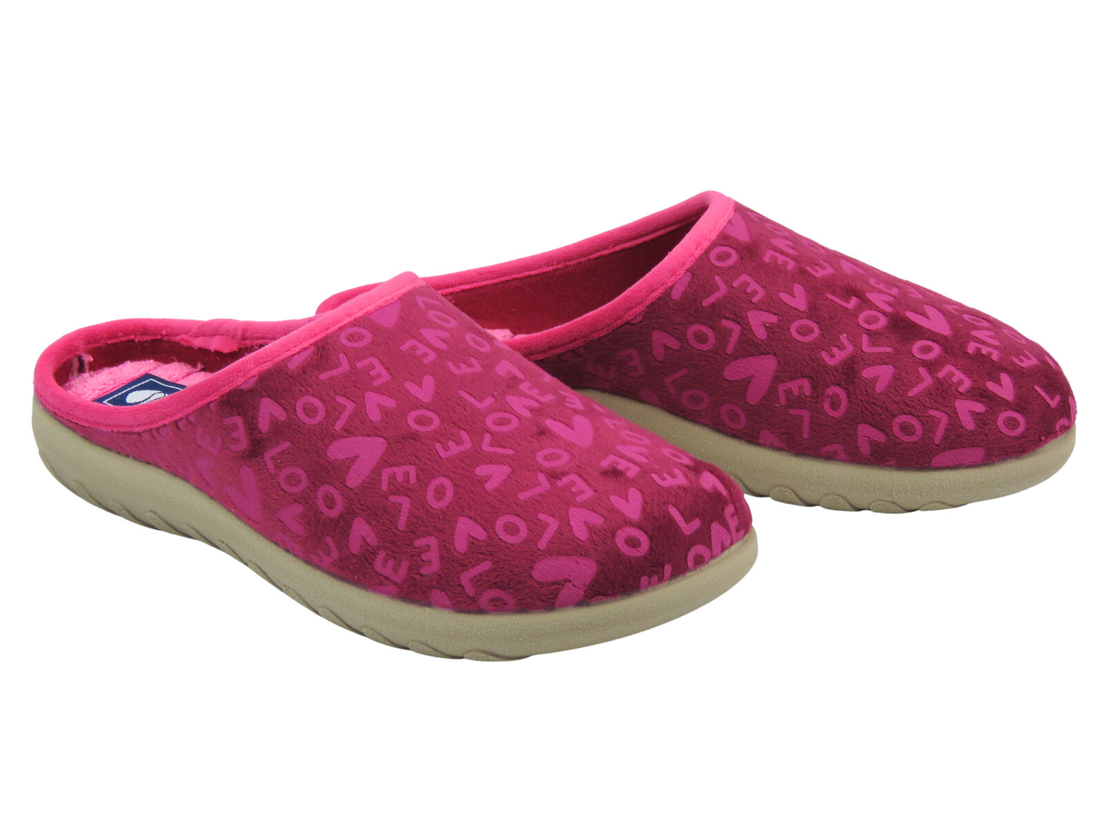 Damskie kapcie Inblu ET-32 to połączenie wygody, funkcjonalności i stylowego wyglądu. Wykonane w całości z miękkiej tkaniny, przyjemnie otulają stopy i zapewniają komfort noszenia przez cały dzień. Intensywny bordowy kolor ozdobiony nadrukiem w kształcie serc i liter LOVE dodaje im wyjątkowego charakteru.