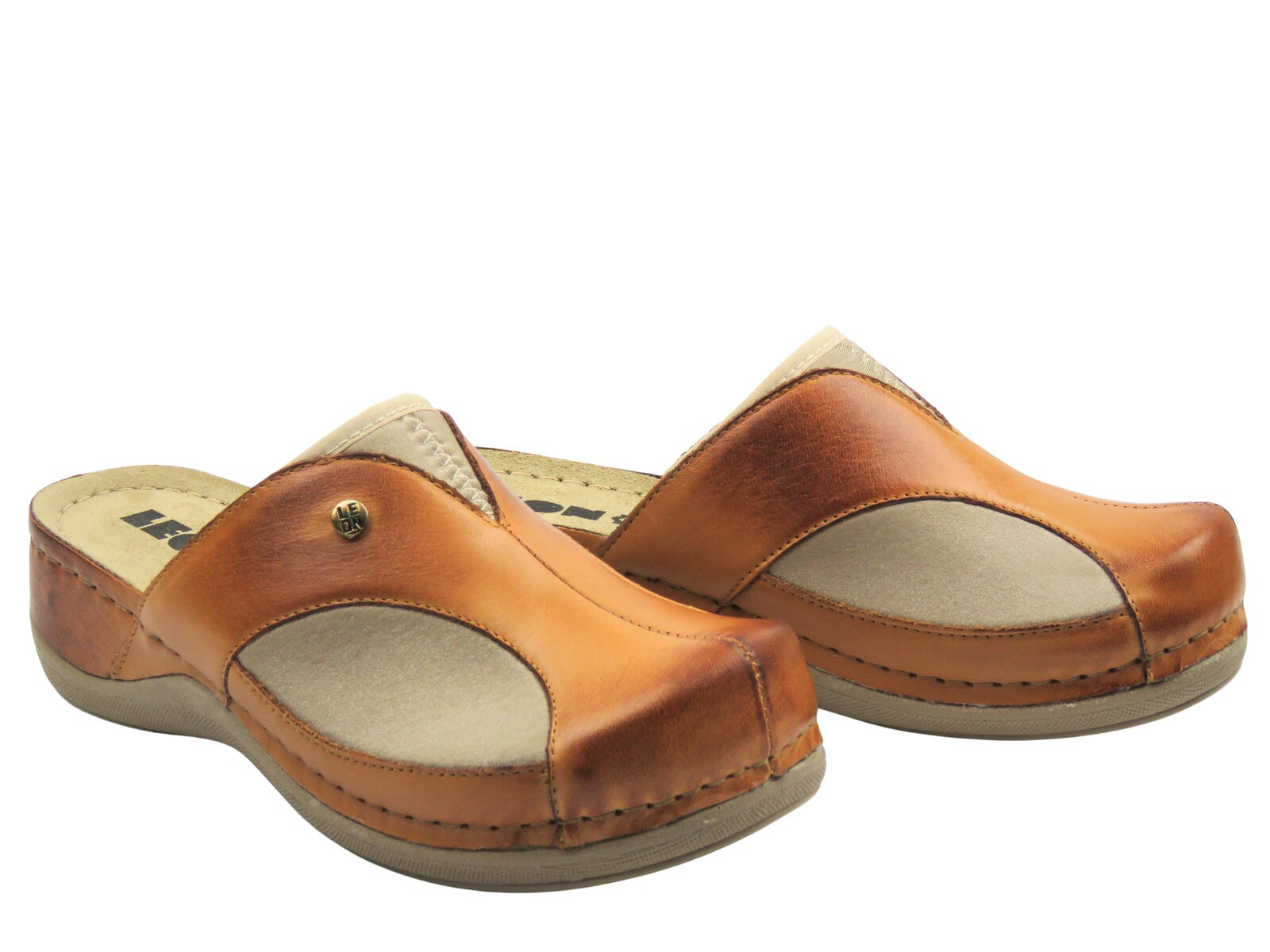 Skórzane klapki damskie brąz Leon 912 brązowe