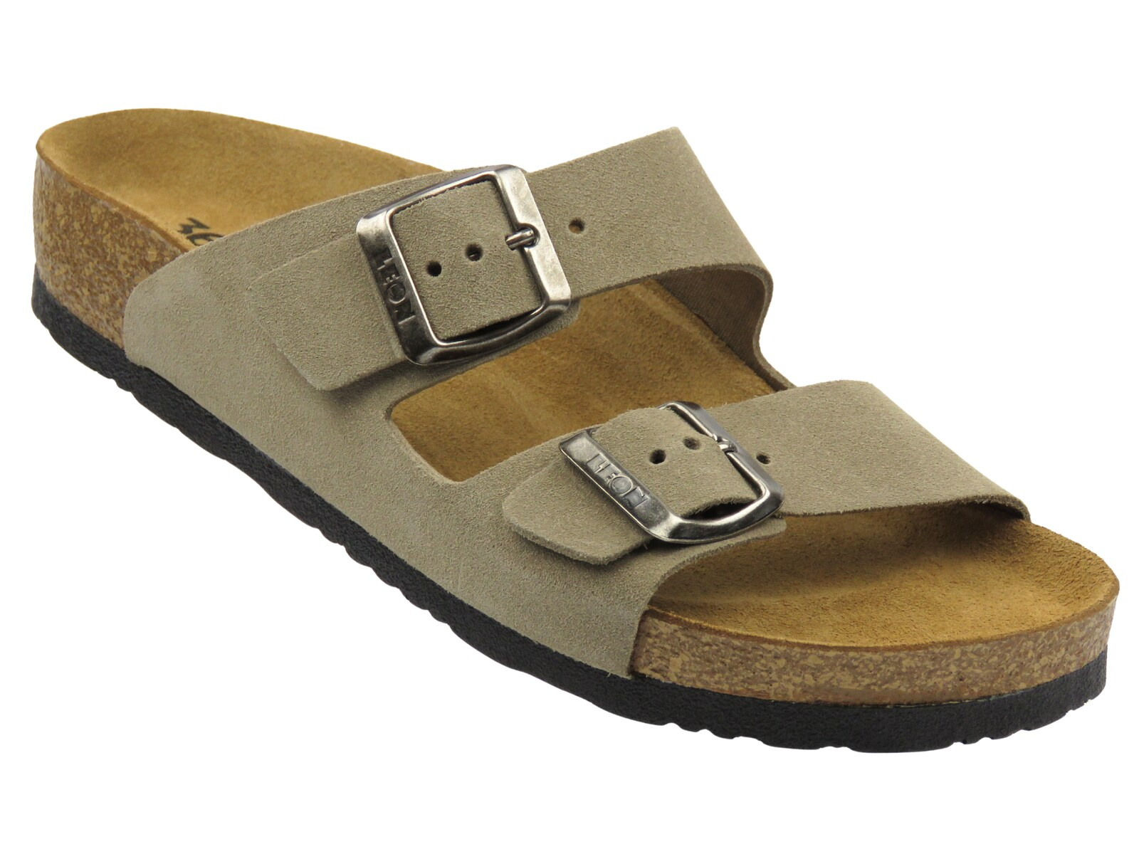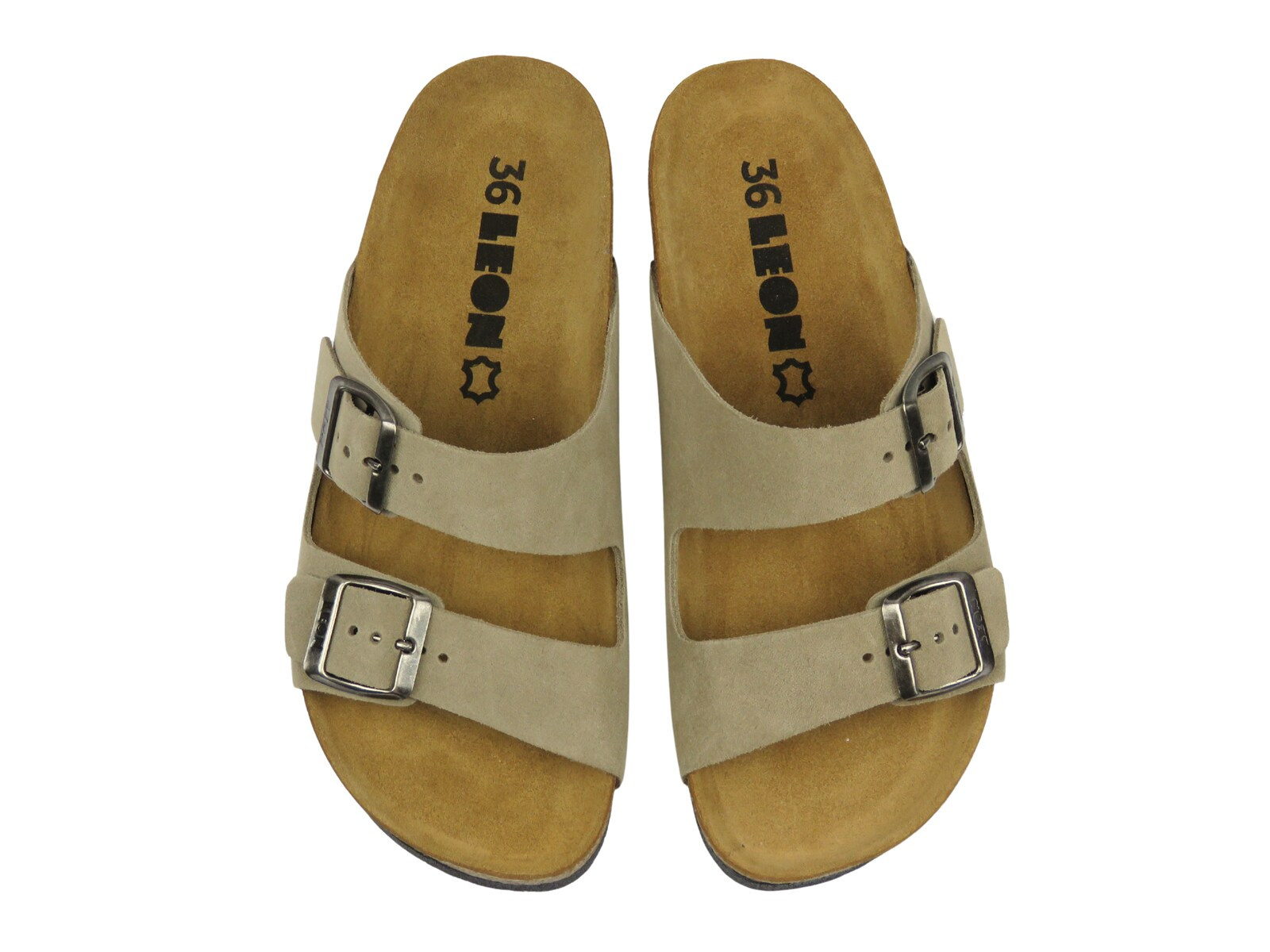 Skórzane klapki damskie z klamrami szare Leon 4010
