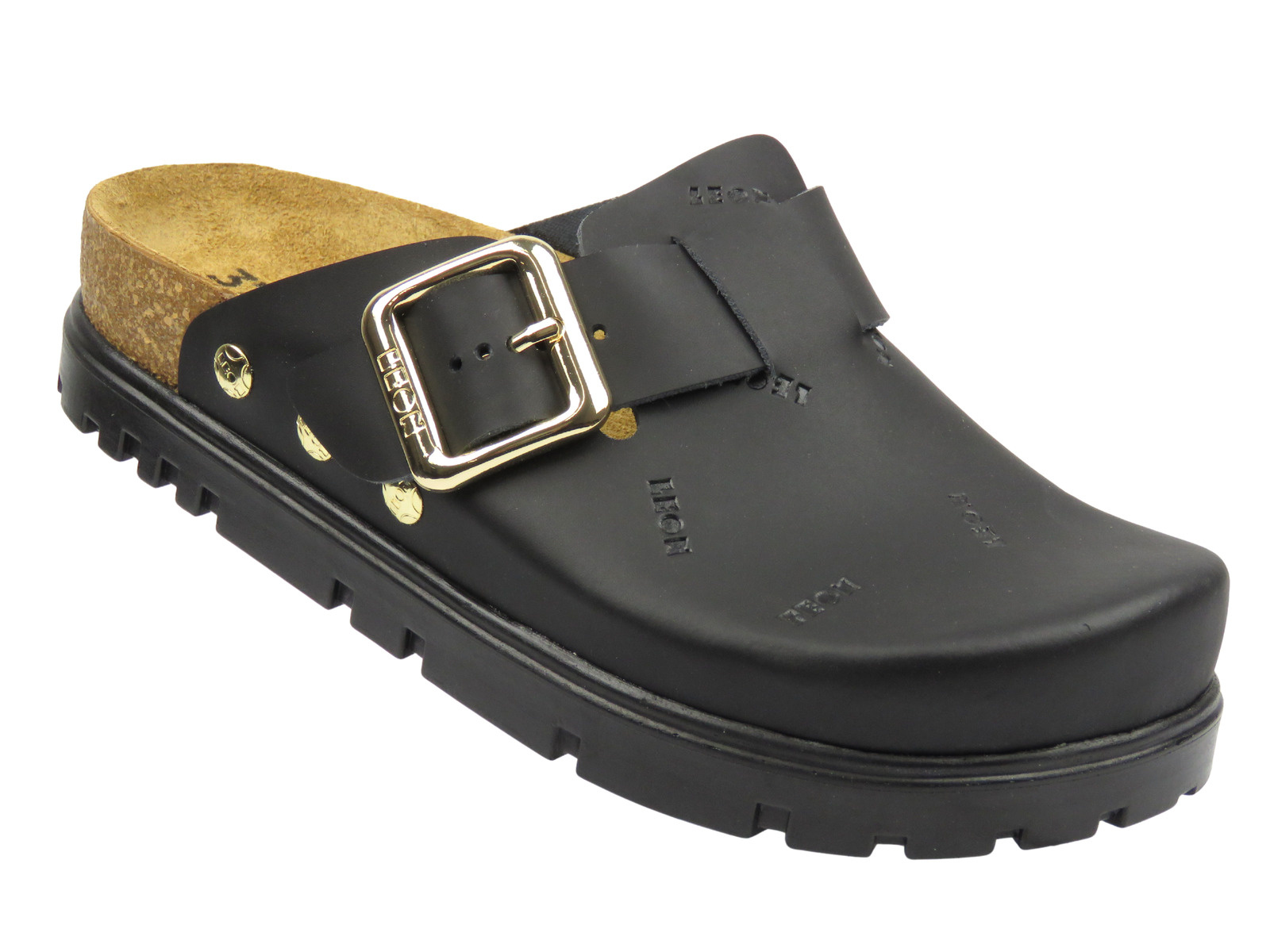 Leon 6000 to klasyczne chodaki wykonane w całości z naturalnej skóry. Prosty fason z regulowaną klamrą łączy wygodę i trwałość w codziennym użytkowaniu.