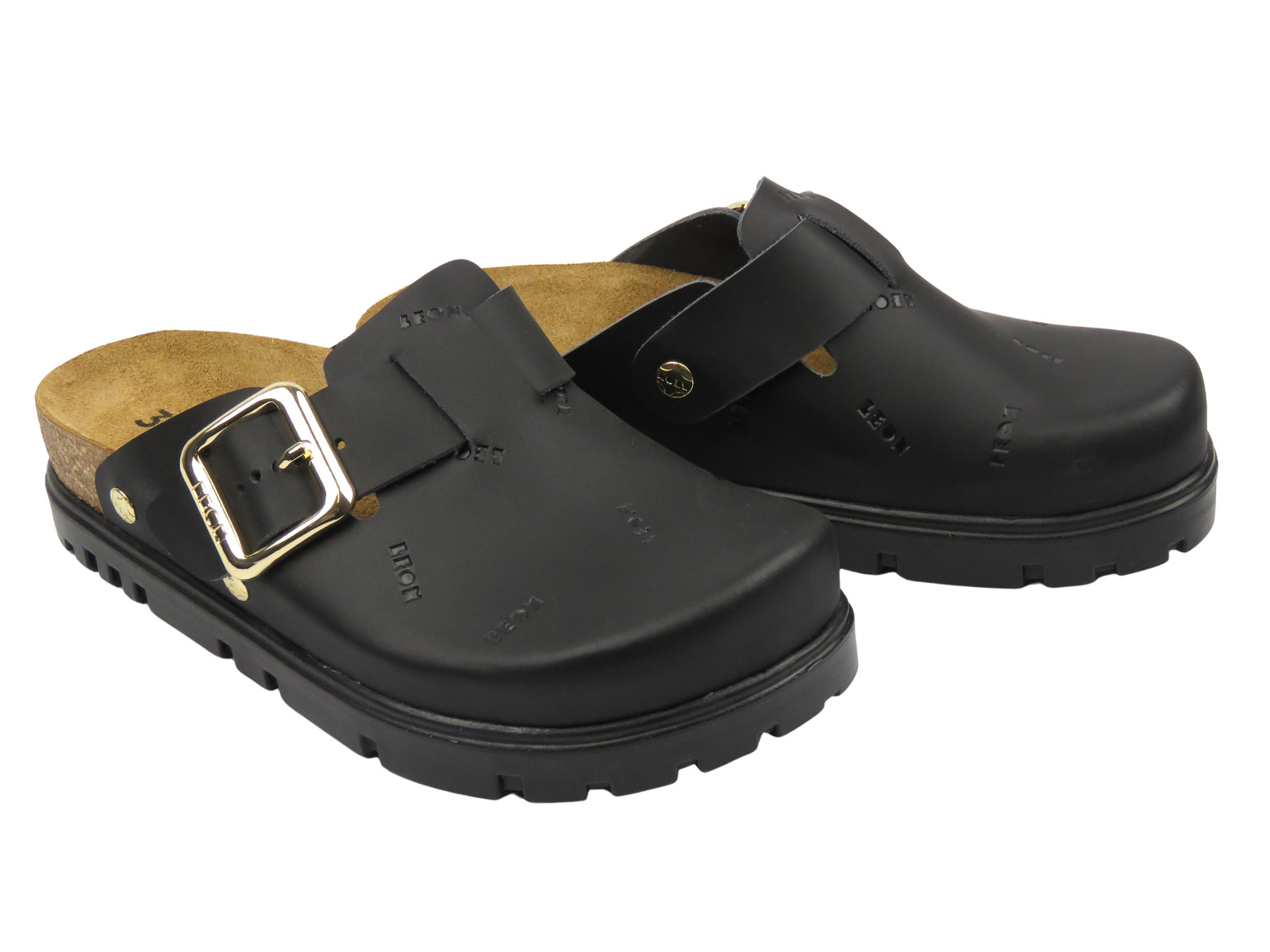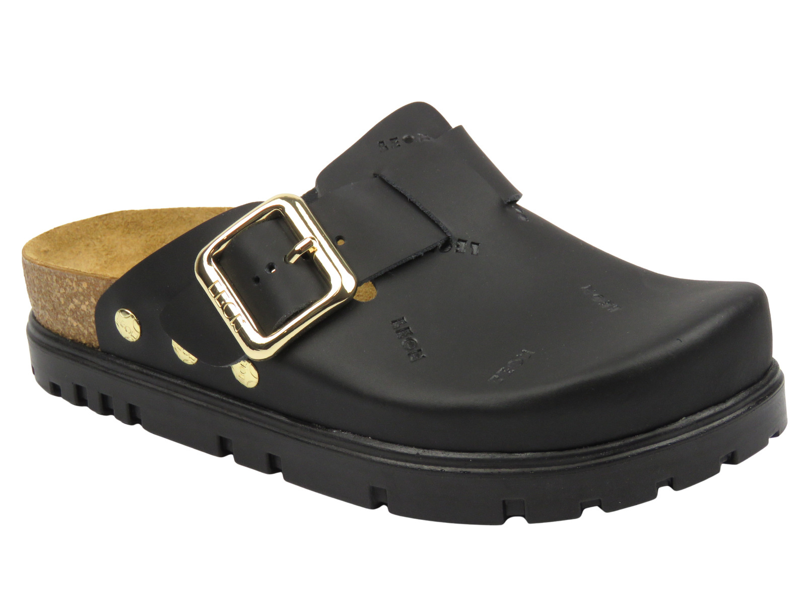 Skórzane klapki damskie z zakrytymi palcami czarne Leon 6000