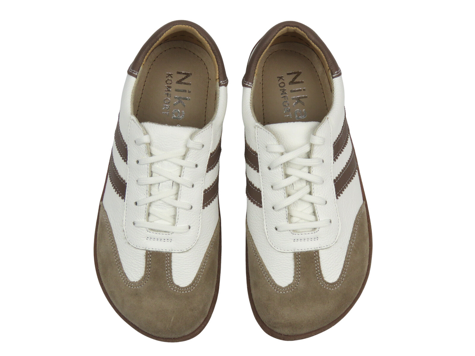 Nika Komfort 1444 to propozycja dla kobiet, które chcą połączyć minimalistyczny styl z naturalnym komfortem barefoot. Wykonane w całości z naturalnej skóry – zarówno na zewnątrz, jak i wewnątrz – dopasowują się do kształtu stopy i zapewniają odpowiednią wentylację. Jasna kolorystyka z subtelnymi brązowymi akcentami nadaje im uniwersalnego charakteru, idealnego do codziennych i casualowych stylizacji.