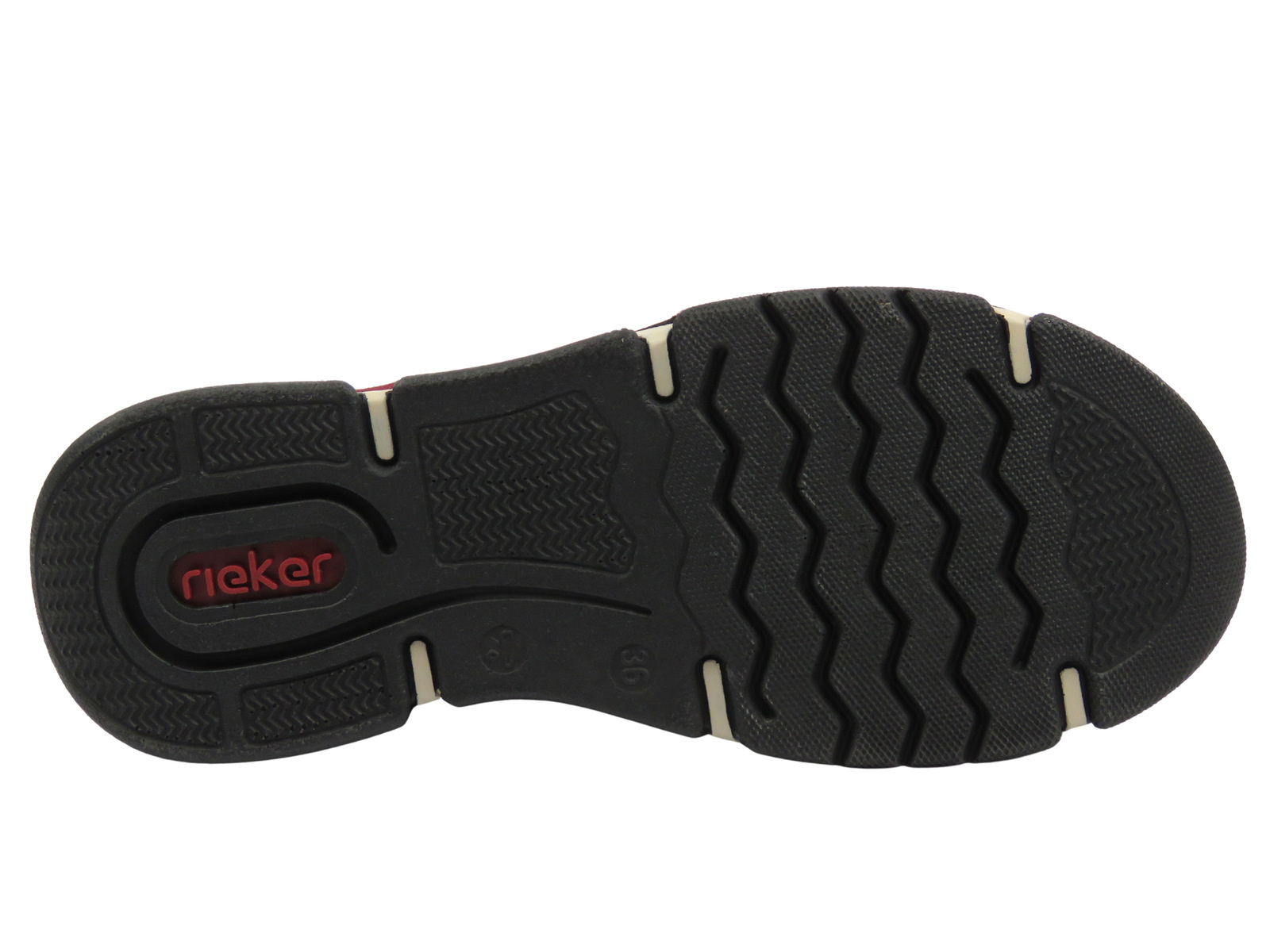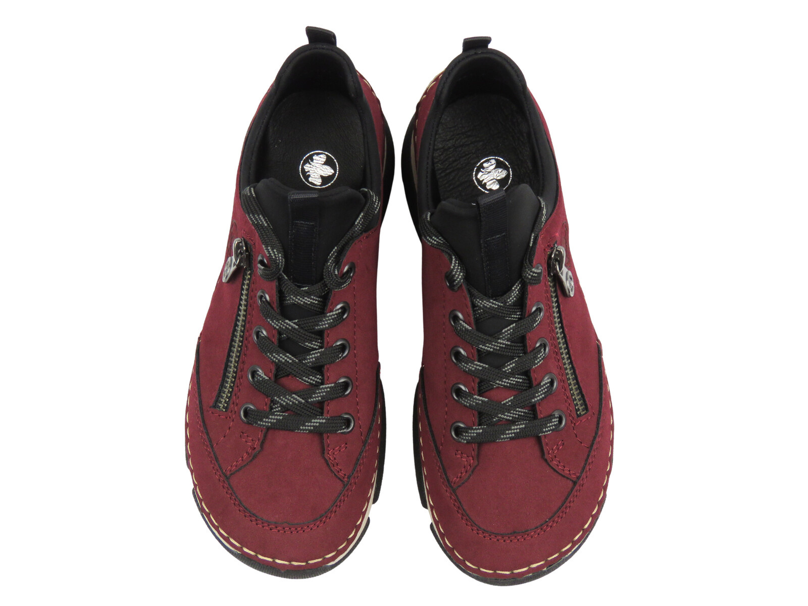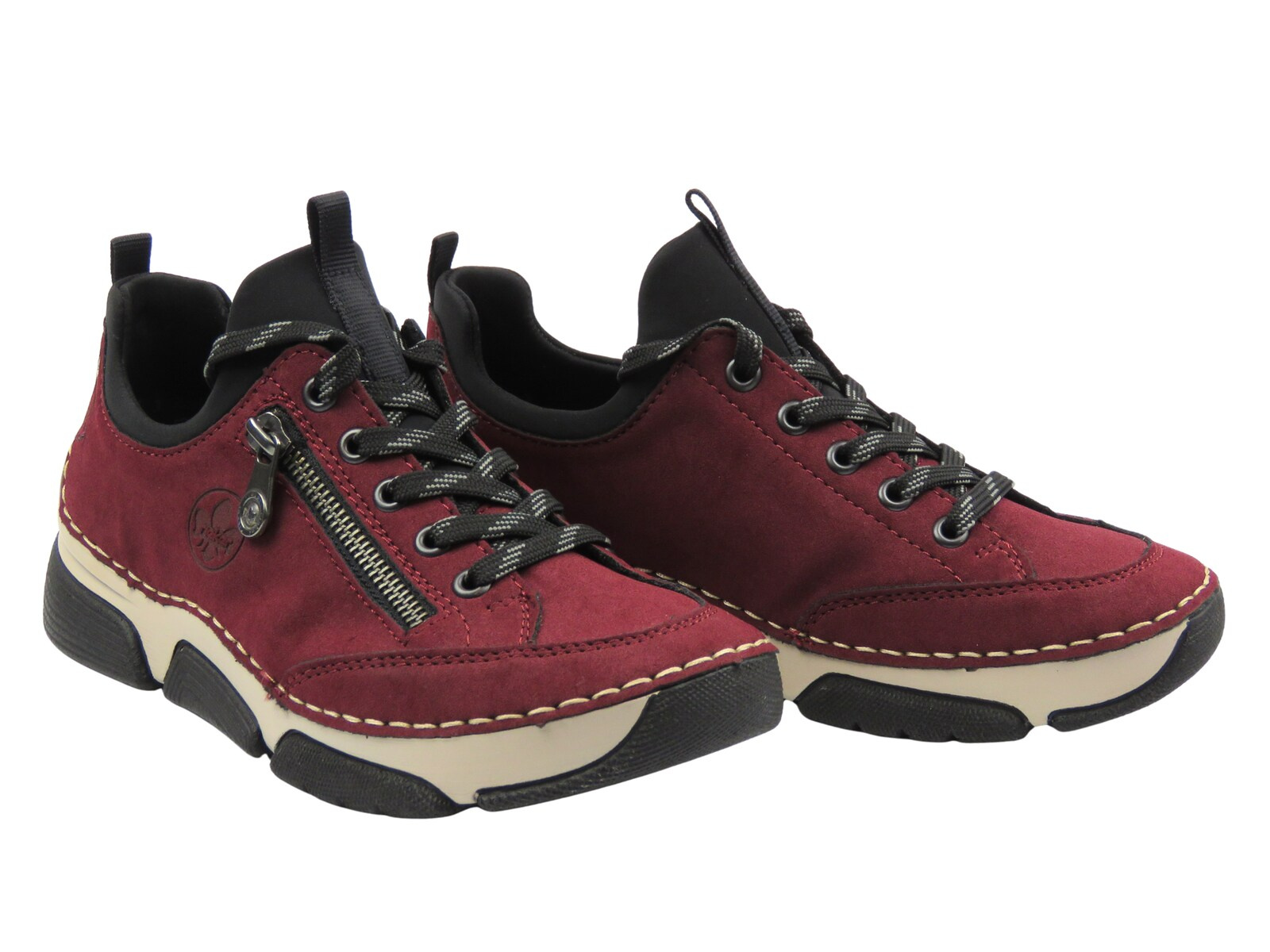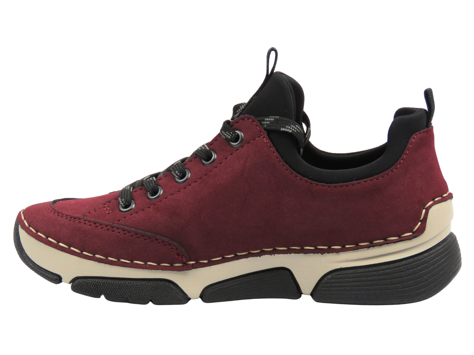 Postaw na buty sportowe Rieker 45973 w bordowym kolorze, jeśli szukasz połączenia stylu, komfortu i funkcjonalności na co dzień.