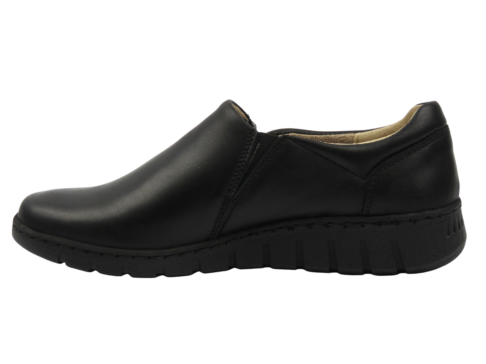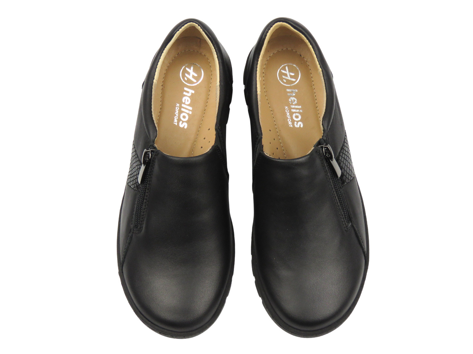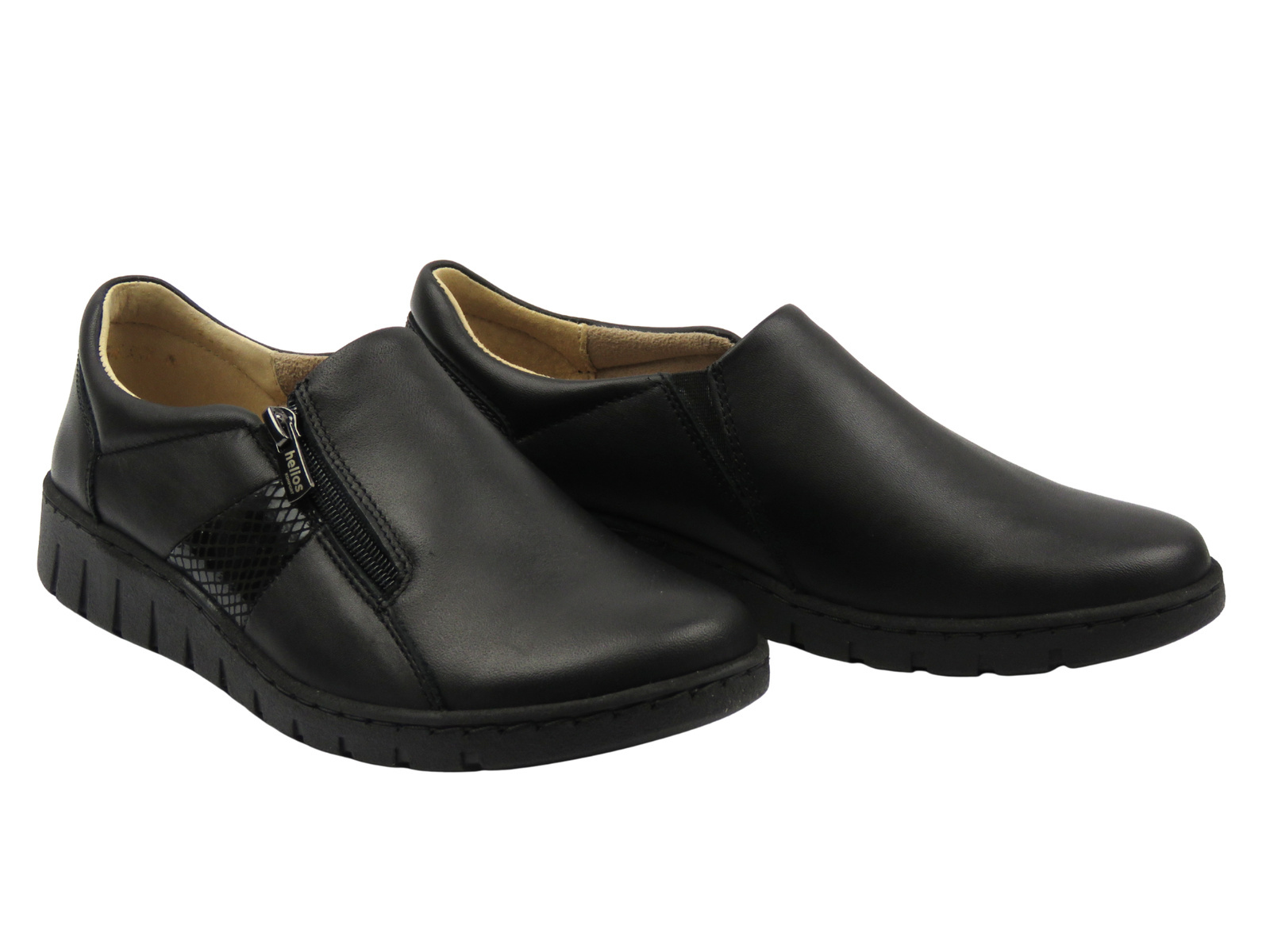 Skórzane półbuty damskie wsuwane czarne Helios Komfort 454