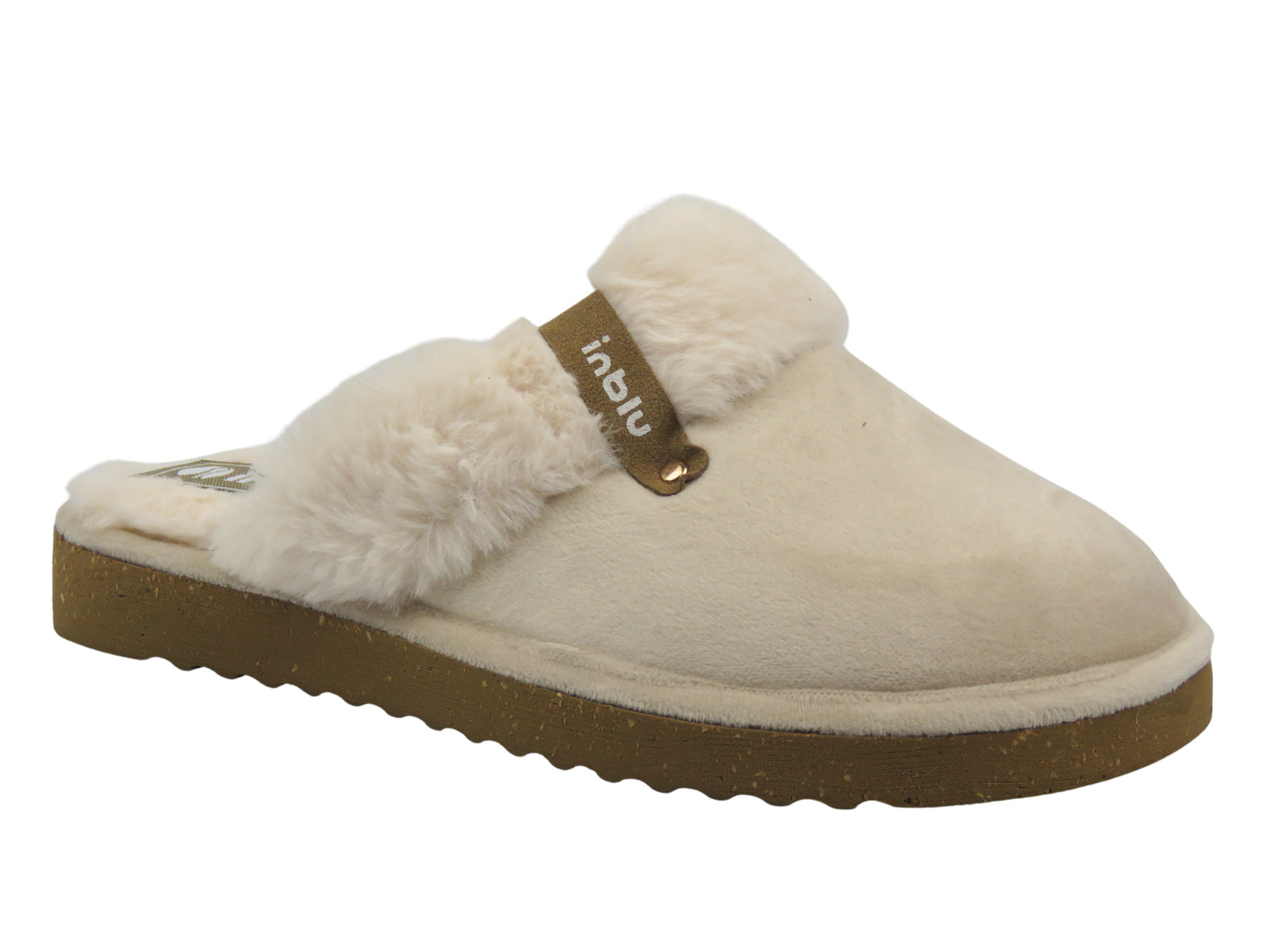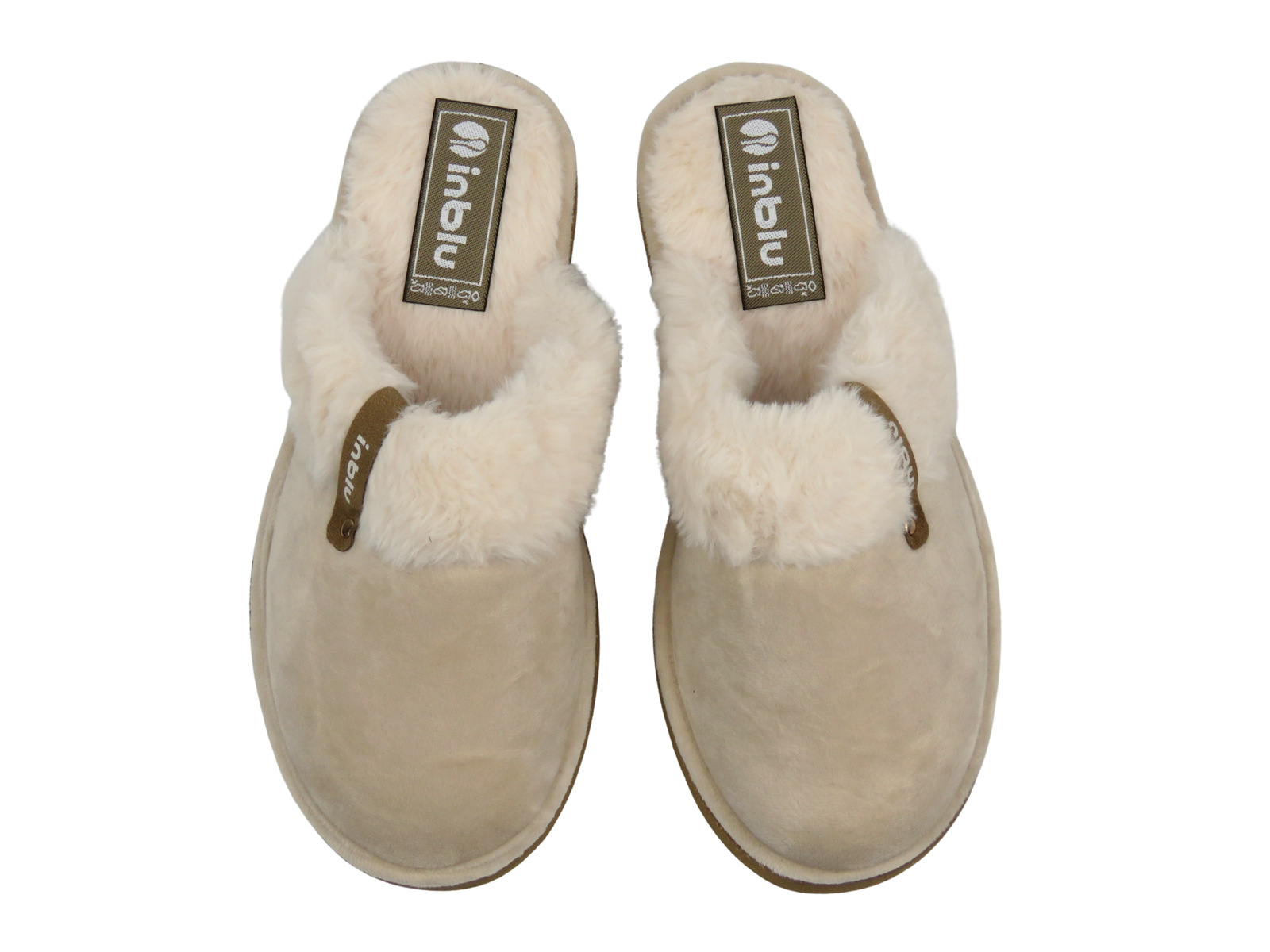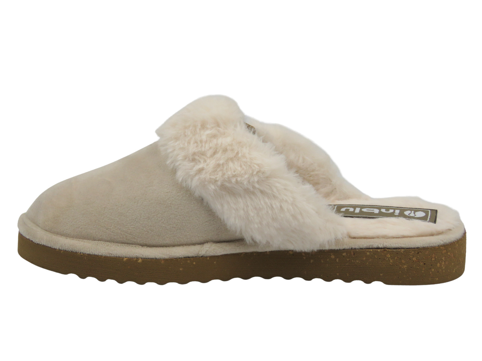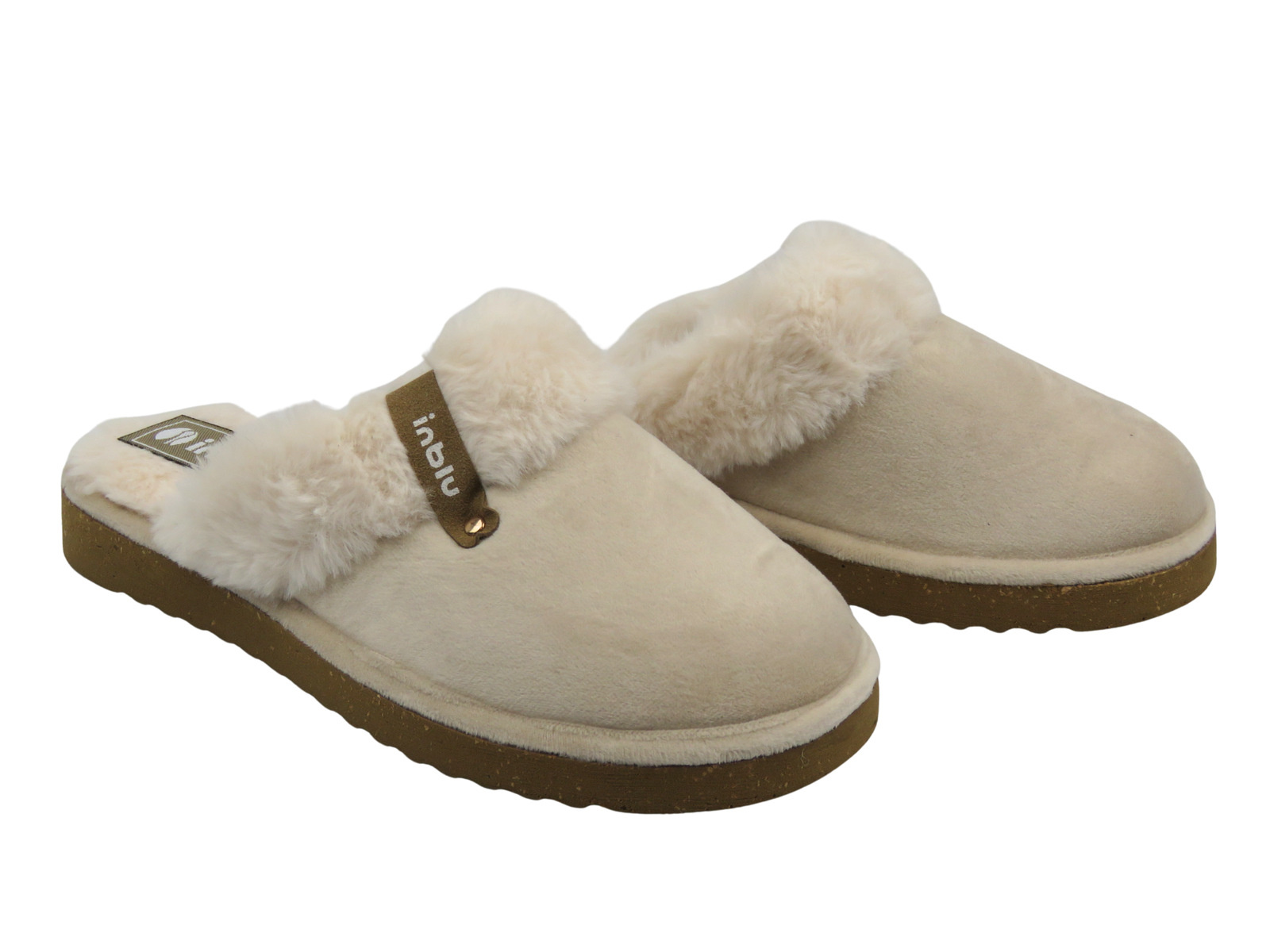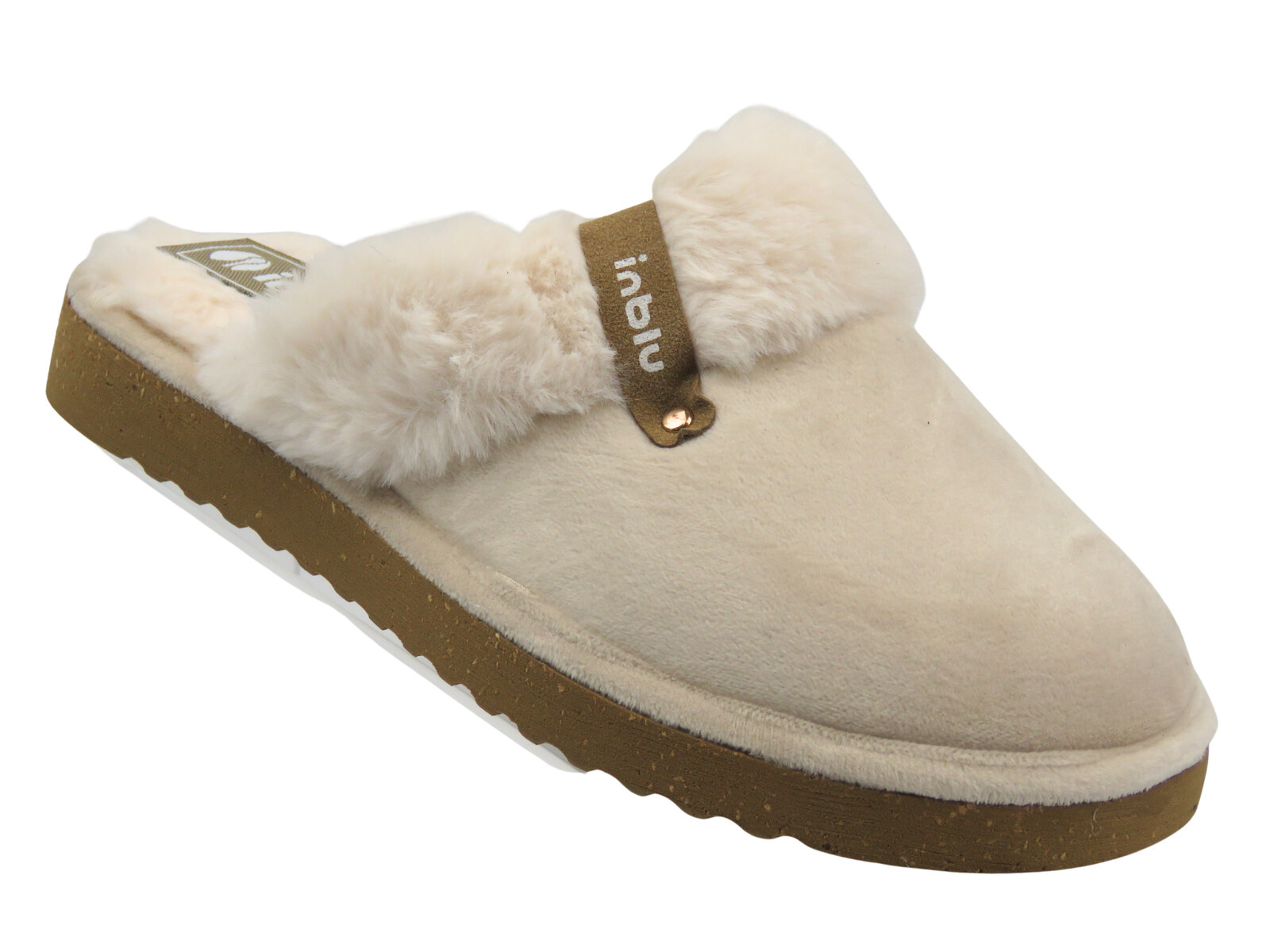 Damskie kapcie Inblu EY-32, beżowe – komfort i ciepło z futerkowym akcentem