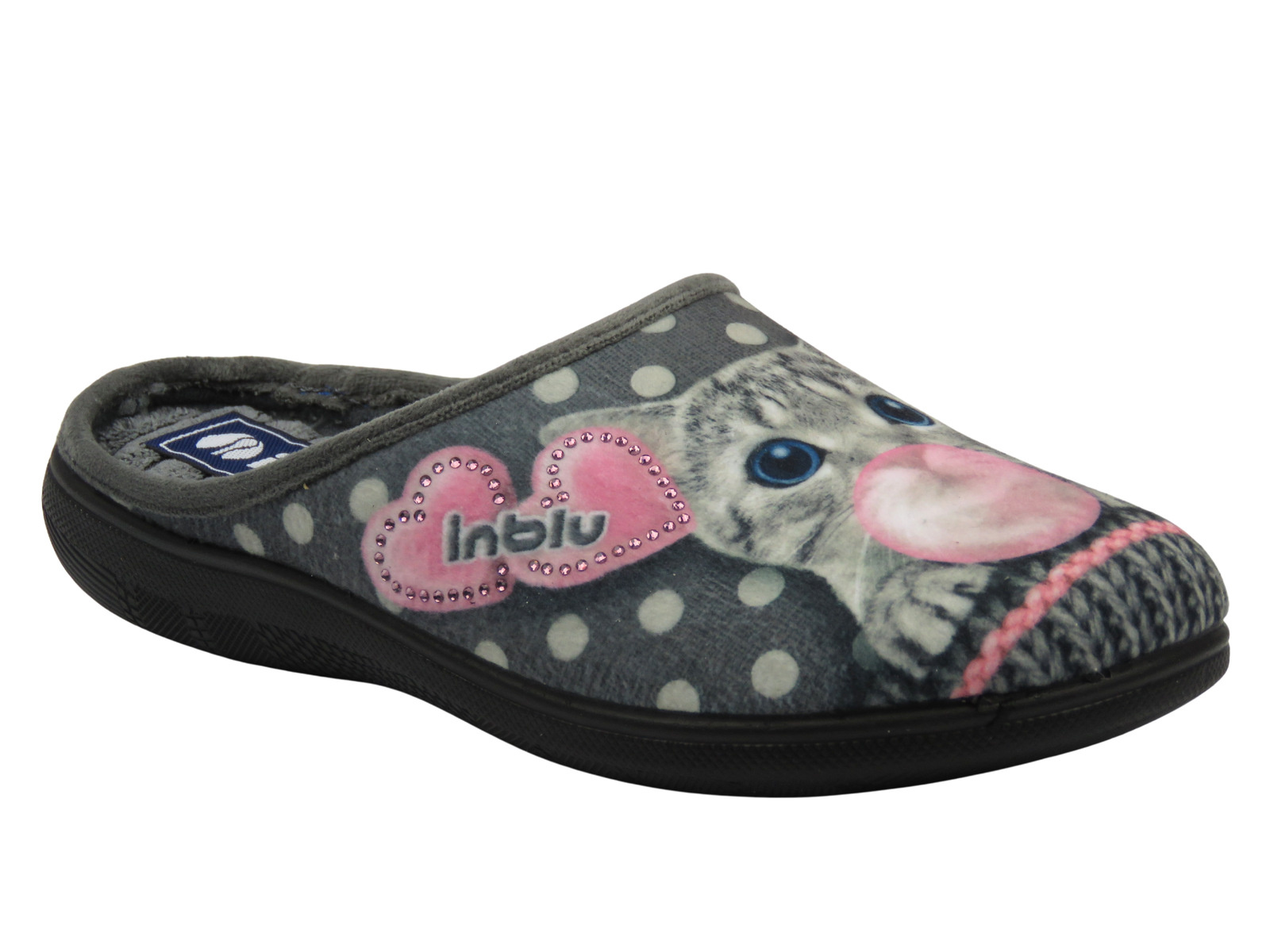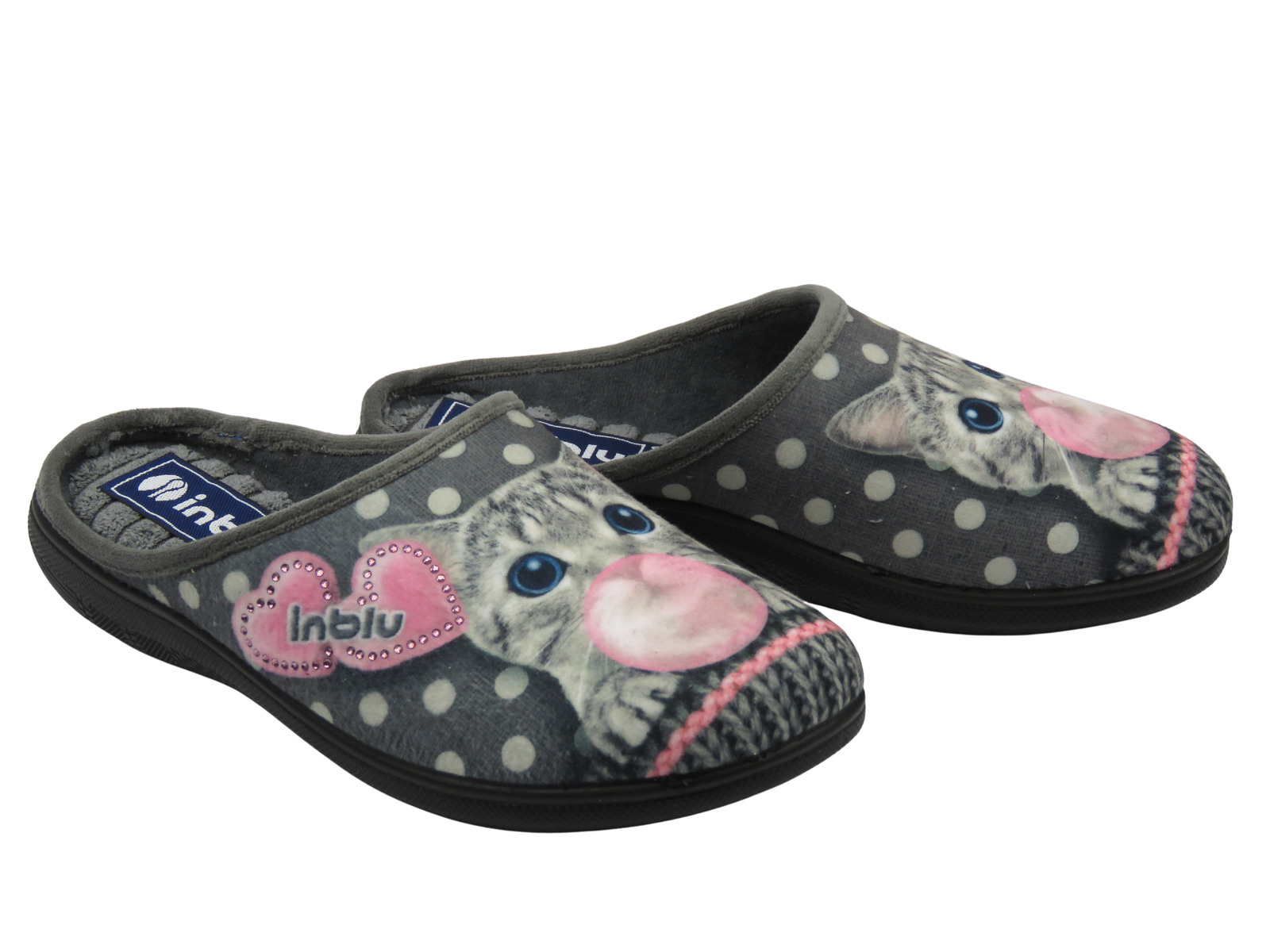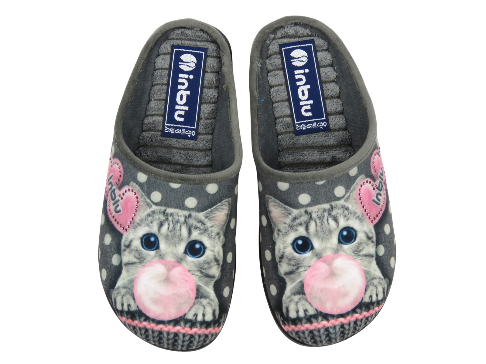 Kapcie damskie z kotkiem szare Inblu EC-93