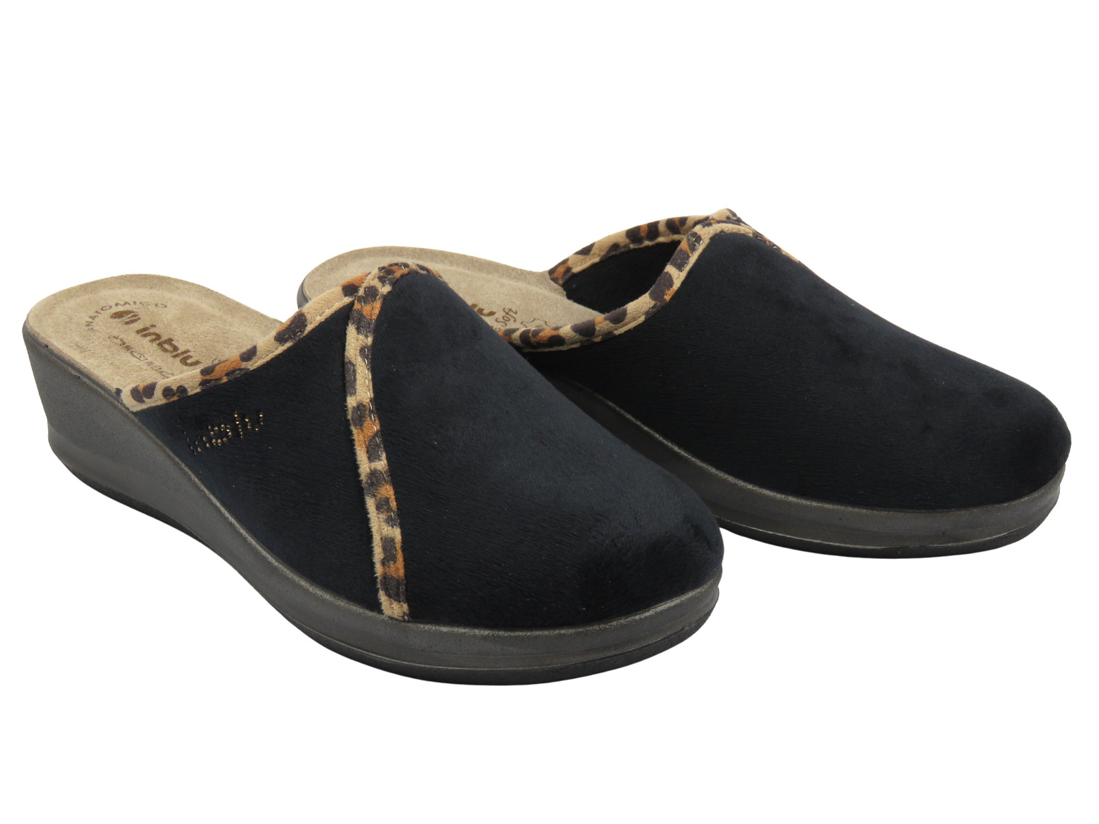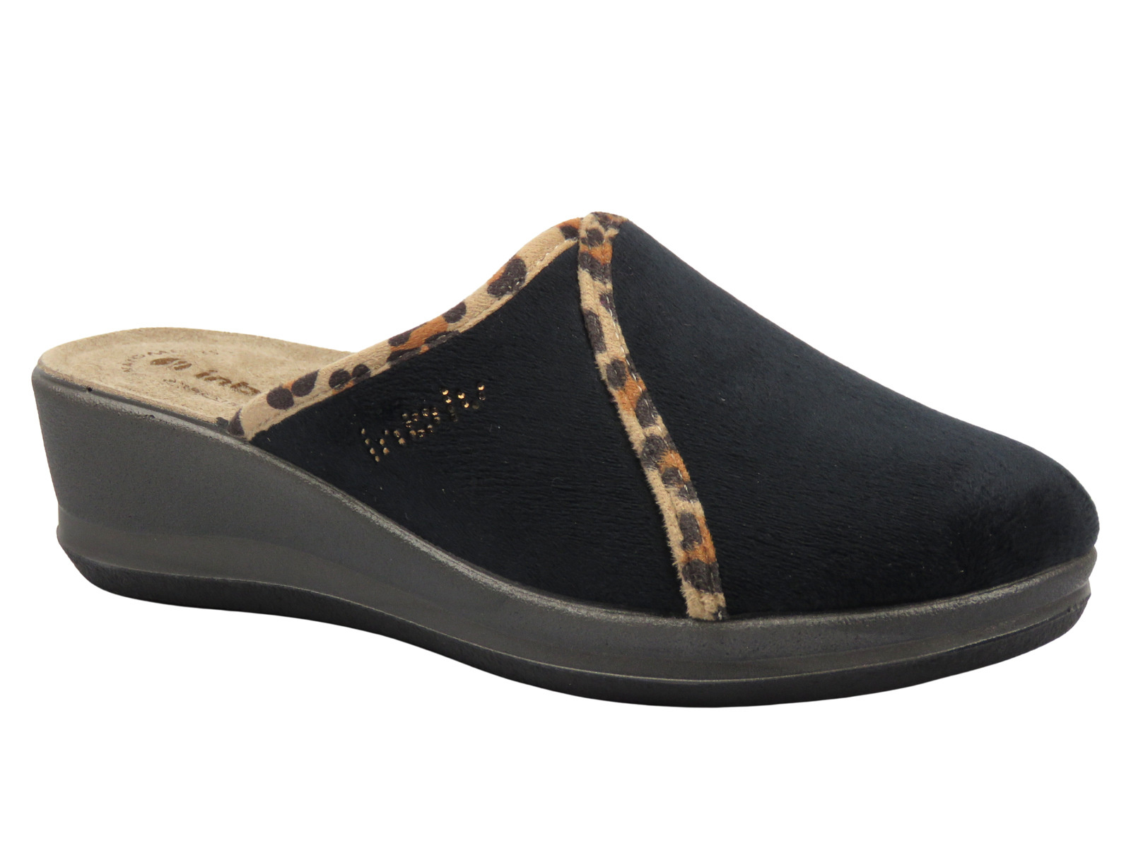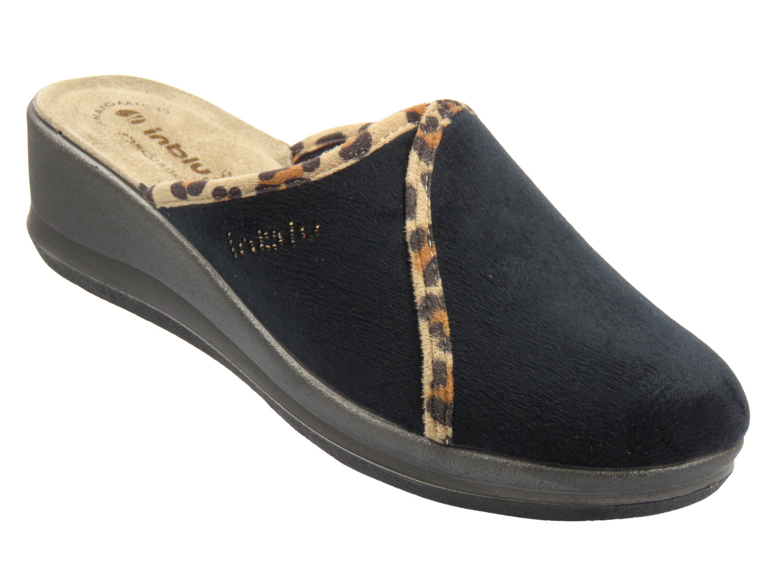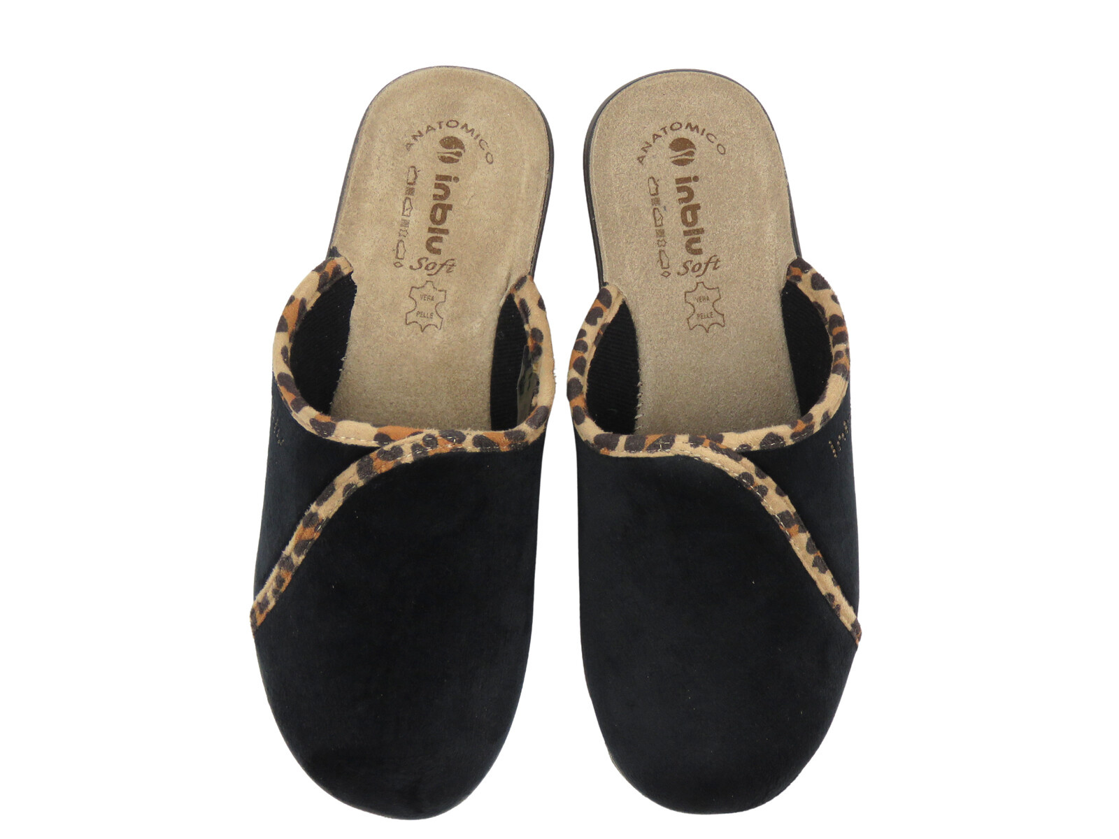 Kapcie damskie Inblu GI-25, czarne z panterkowym wzorem