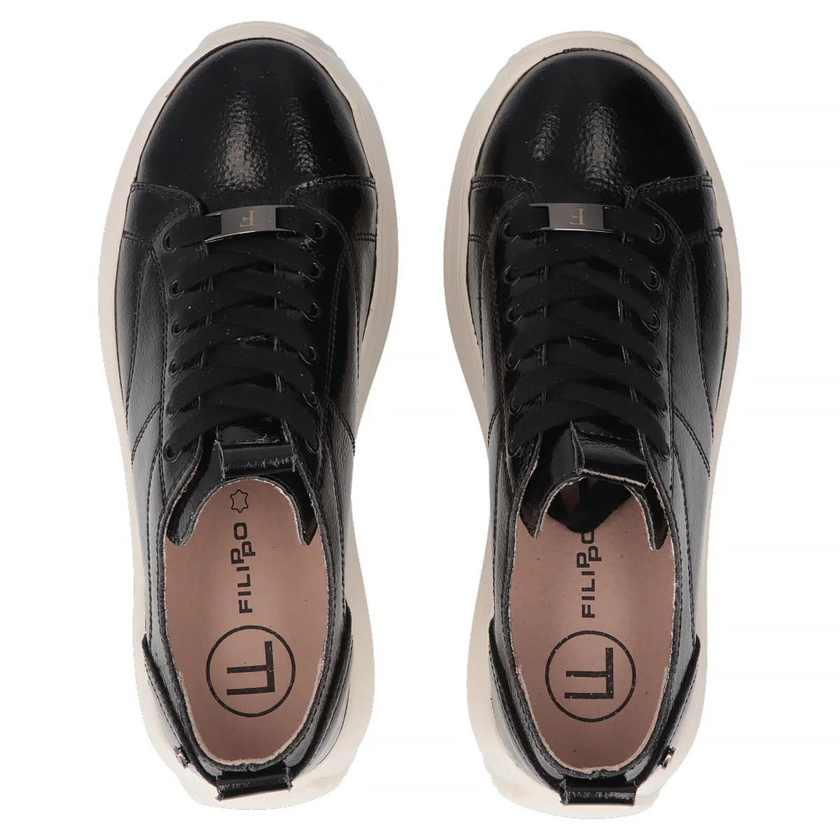 Filippo DP6792/25 to modne damskie sneakersy, które zachwycają nie tylko designem, ale także komfortem użytkowania. Wykonane z wysokiej jakości naturalnej skóry w połyskującym, czarnym wykończeniu, przyciągają wzrok i idealnie dopełniają każdą stylizację.