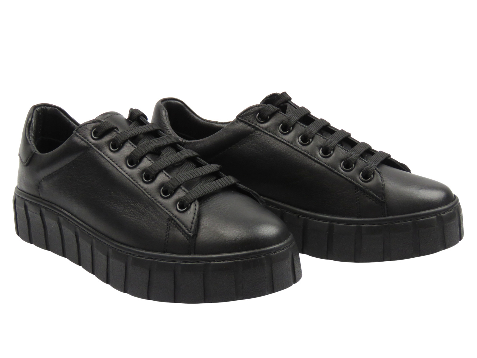 Dzięki klasycznemu sznurowaniu, buty można łatwo dopasować do stopy, zapewniając odpowiednie trzymanie i komfort w codziennym ruchu. Czarny kolor to ponadczasowa klasyka – uniwersalny, elegancki i łatwy do stylizacji na co dzień i od święta.