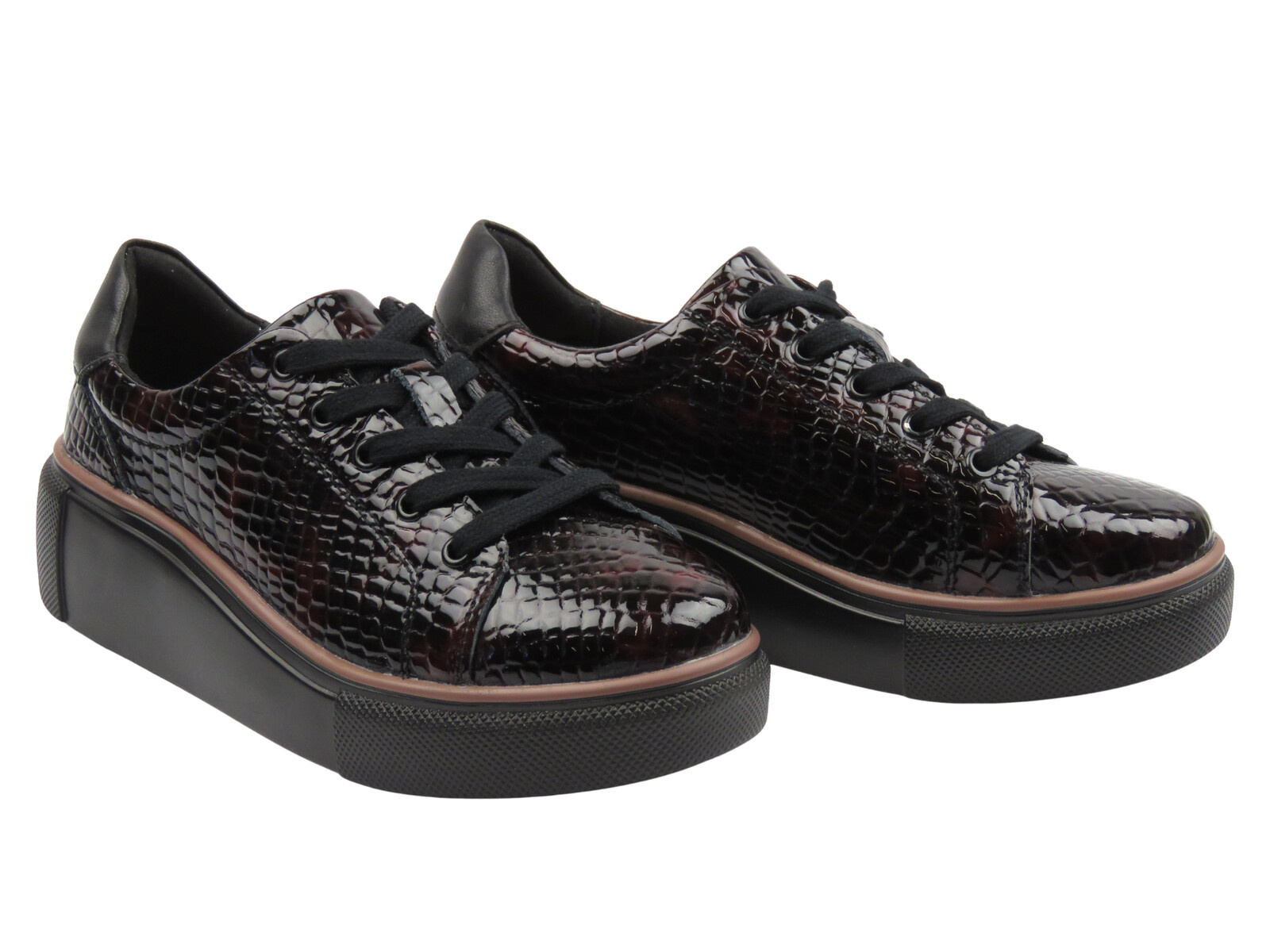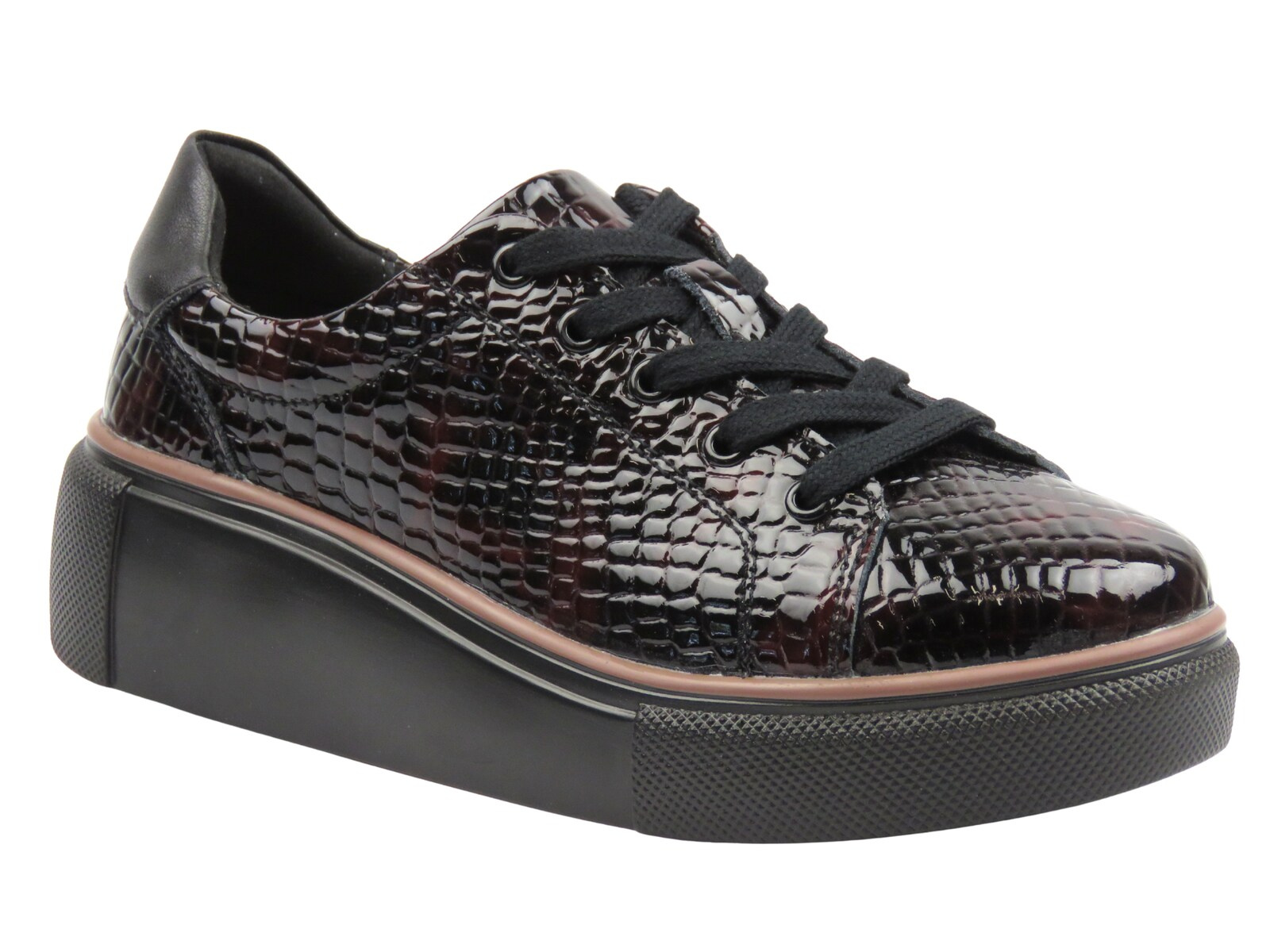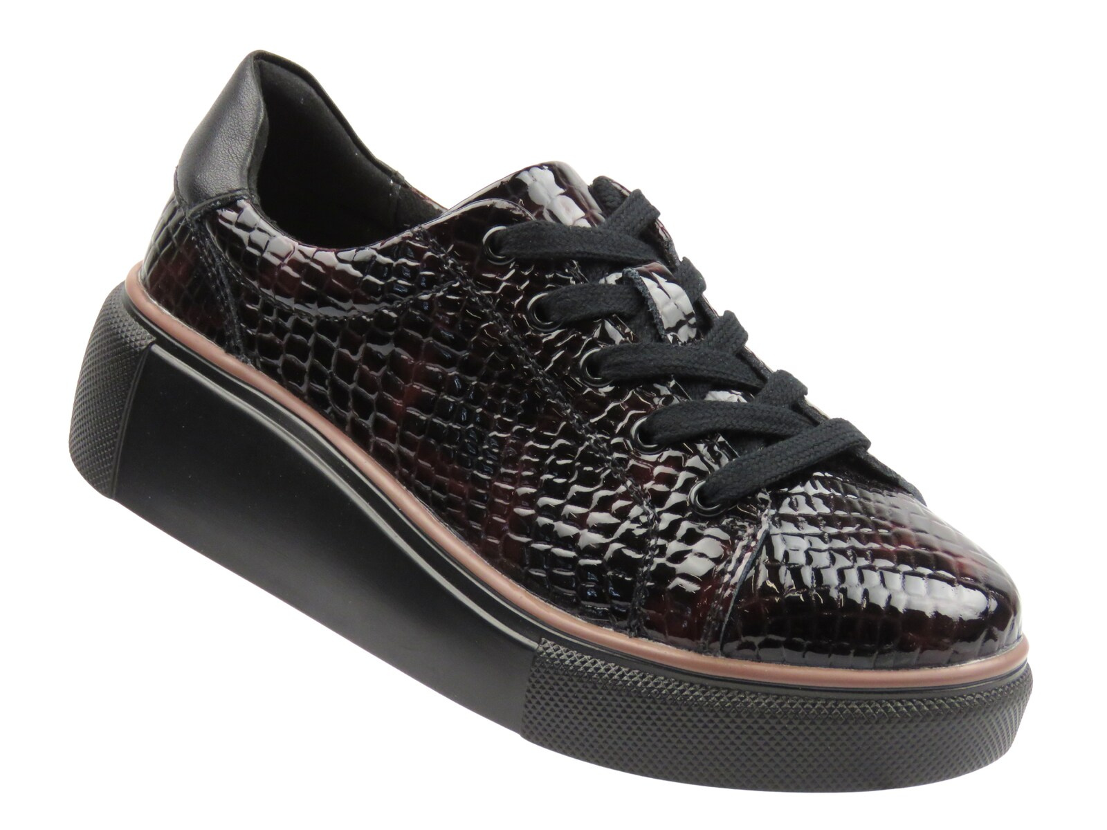 Obuwie osadzono na solidnej platformie o wysokości 5 cm, która optycznie wydłuża sylwetkę, a jednocześnie skutecznie amortyzuje każdy krok. Klasyczne sznurowanie pozwala na dopasowanie obuwia do indywidualnego kształtu stopy.