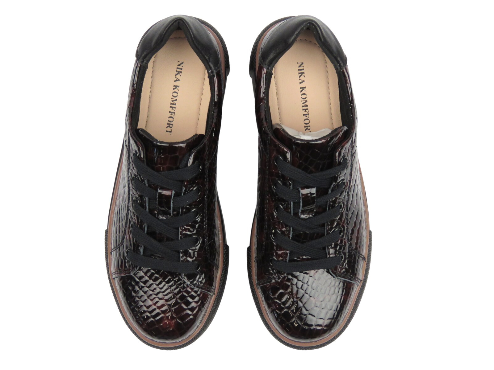 Nika Komfort H-286 to wyraziste i wygodne półbuty damskie, które przyciągają wzrok połyskującym wykończeniem i modną fakturą skóry przypominającą krokodylą. Cholewka wykonana z naturalnej skóry prezentuje się elegancko i stylowo, a jednocześnie jest trwała i łatwa w pielęgnacji.