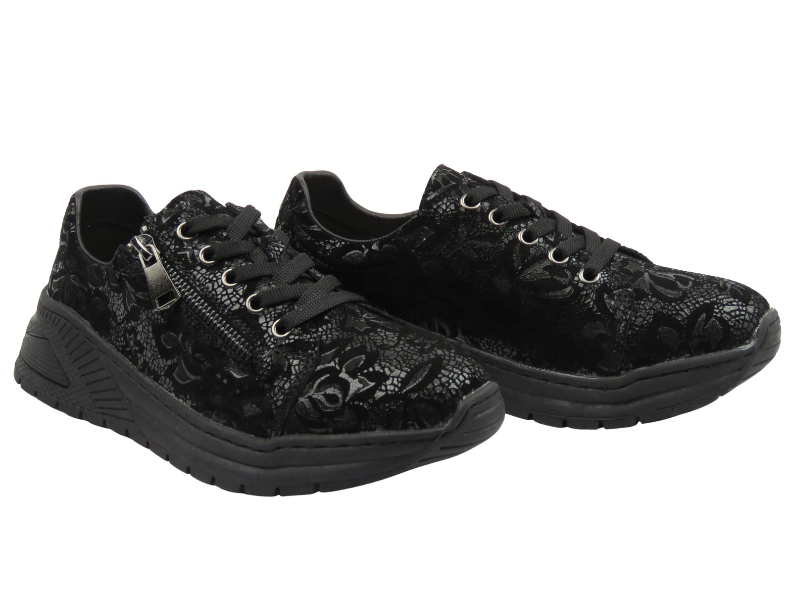 Grubsza podeszwa o wysokości 4,5 cm dobrze amortyzuje kroki, wysmukla sylwetkę i zapewnia stabilność. Połączenie sznurowania i praktycznego zamka pozwala na szybkie zakładanie i idealne dopasowanie do stopy.