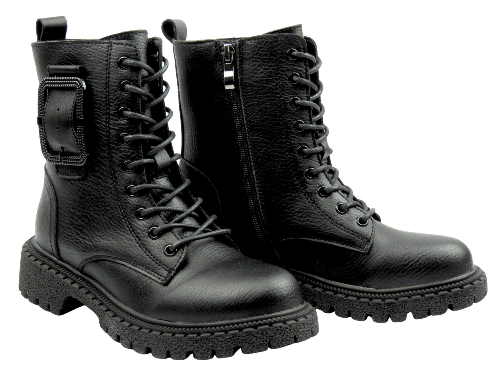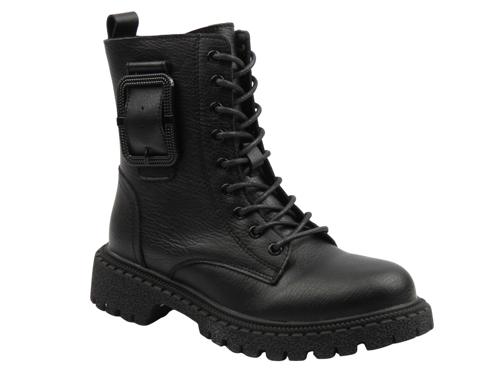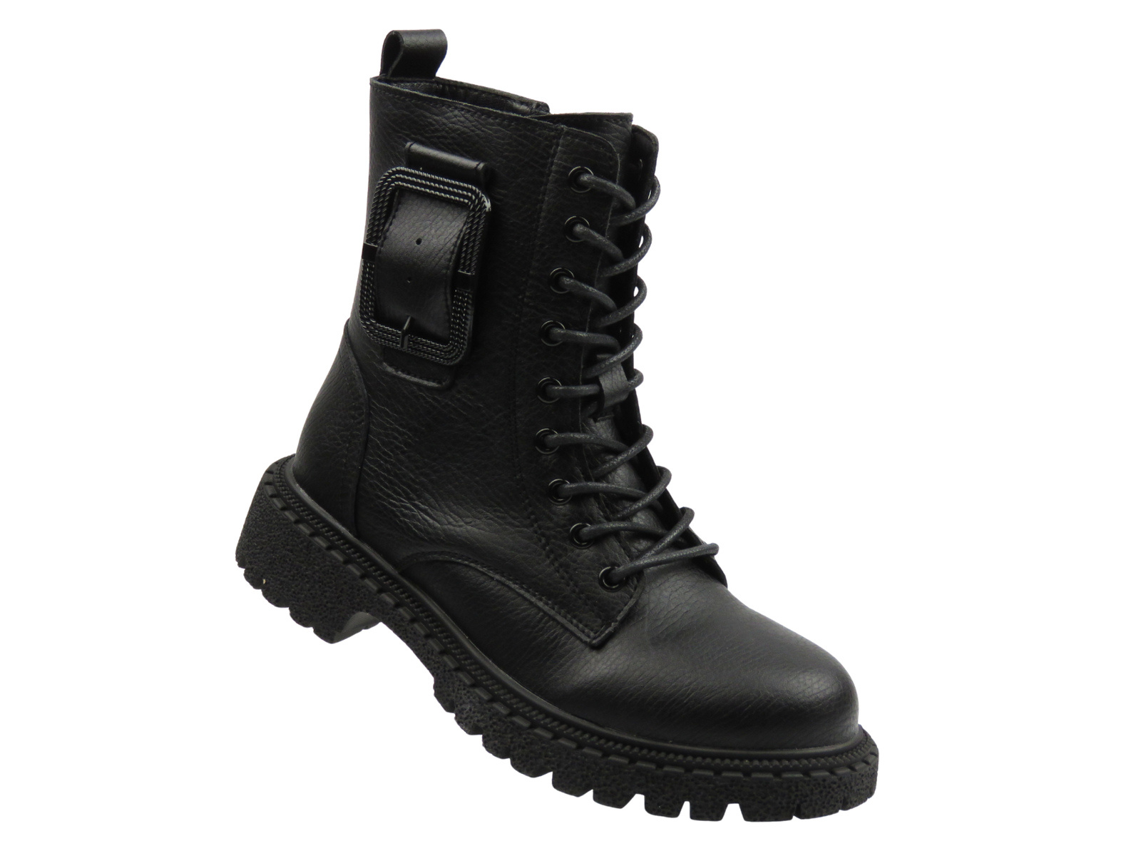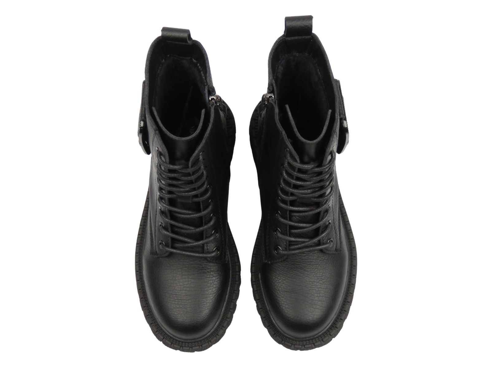 Skórzane trzewiki, trapery damskie czarne Nika Komfort H-297