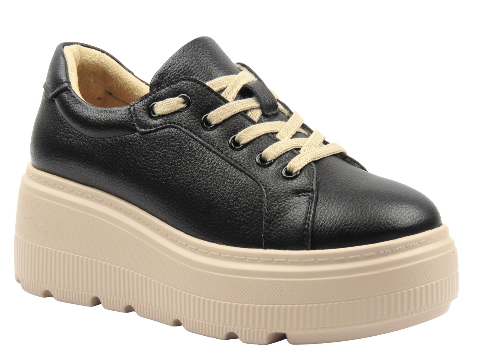 Skórzane sneakersy damskie na platformie czarne Cambell 25-19374