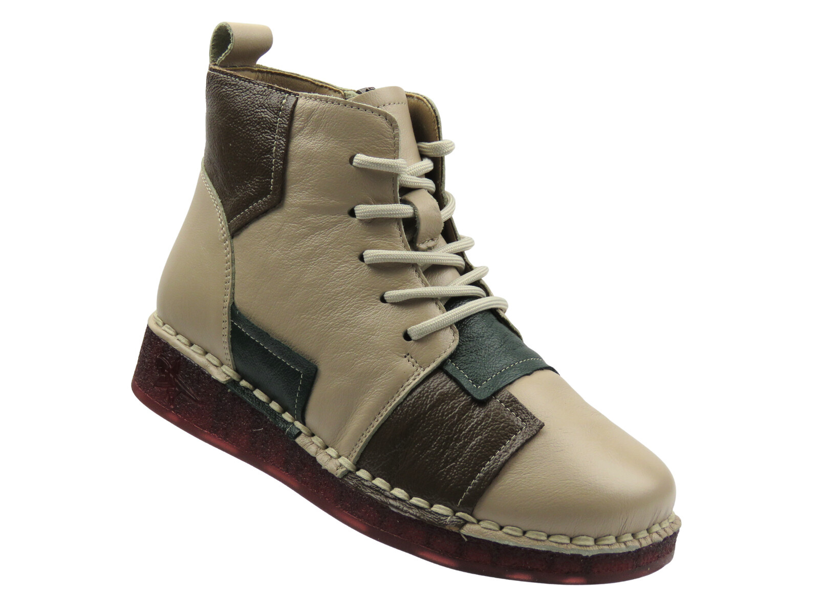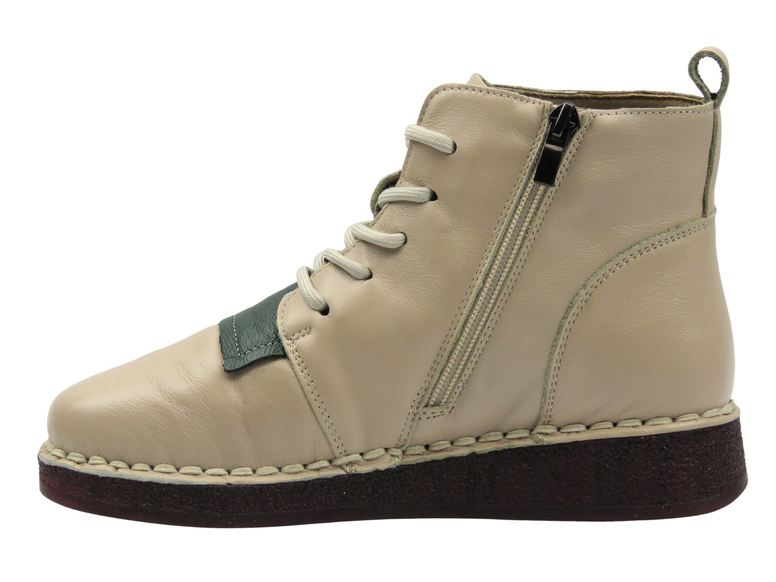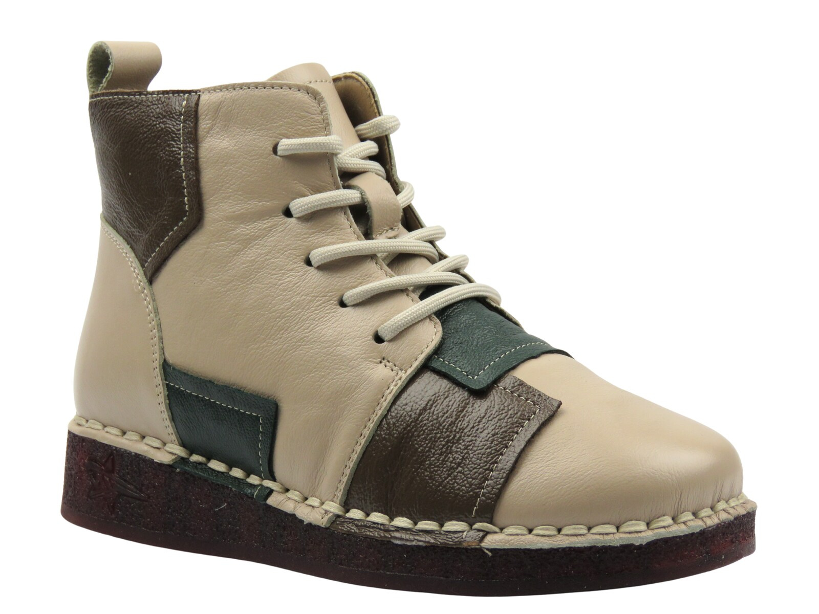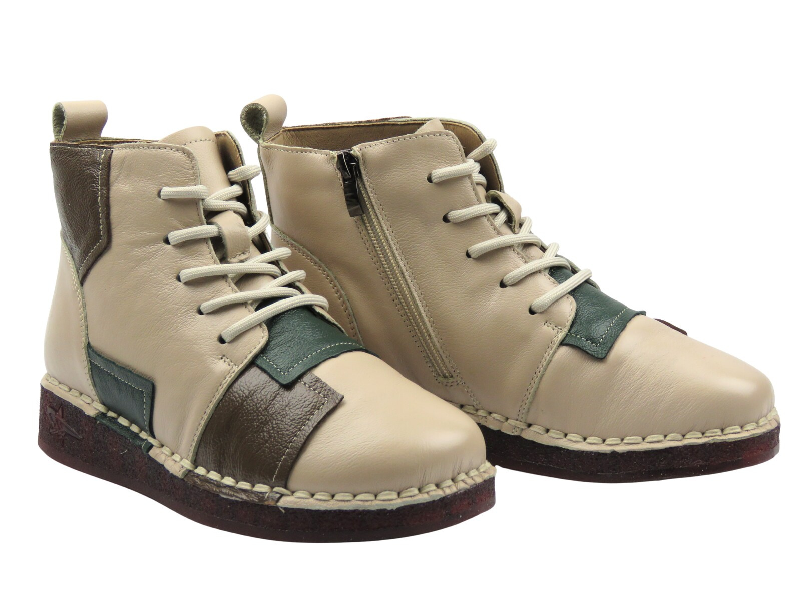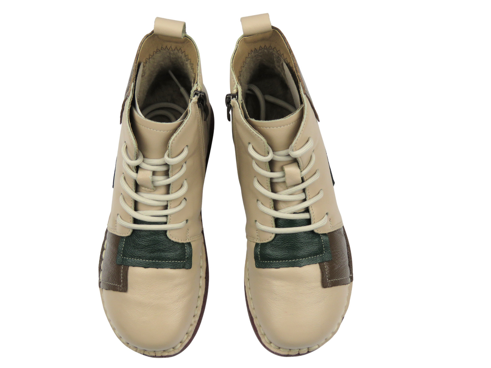 Skórzane Wygodne Botki Damskie - Cambell 25-15306 Beżowe Na Zamek