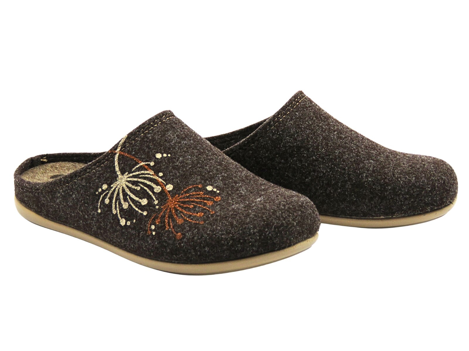 Damskie kapcie Inblu GF-30 brązowe z haftem