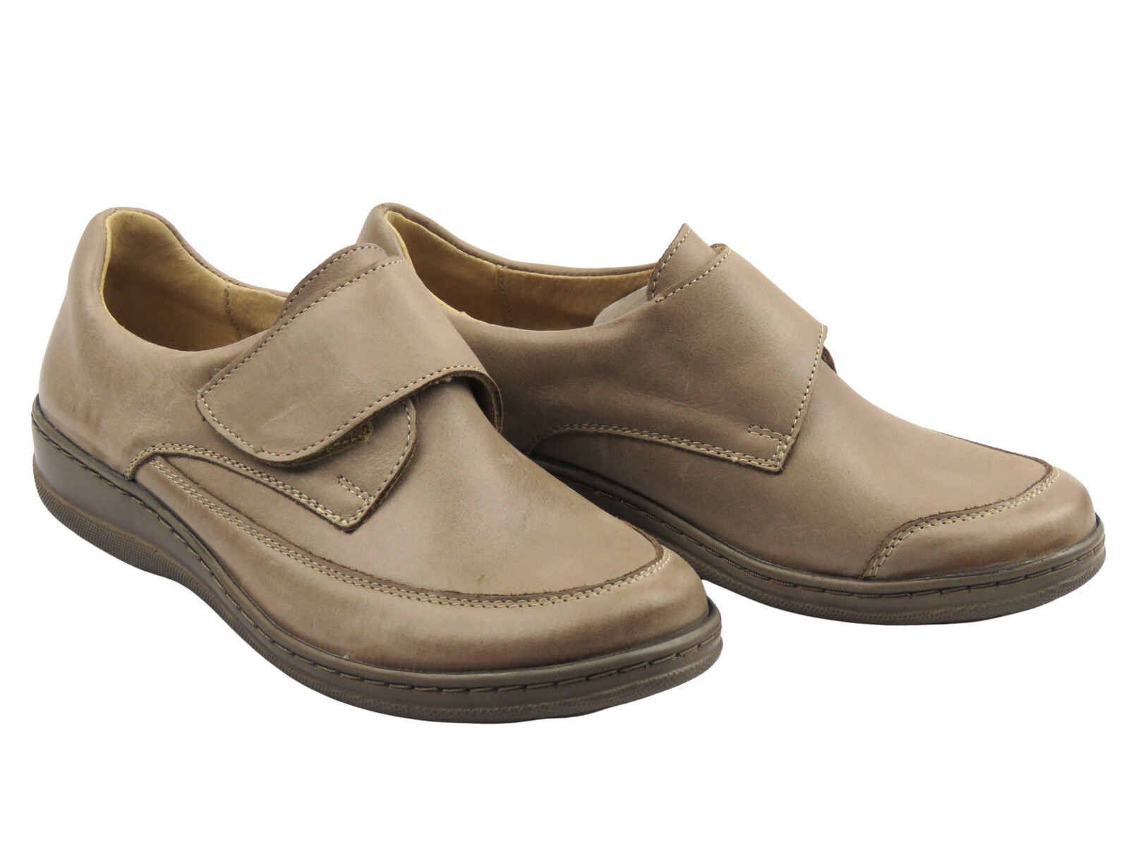 Wygodne półbuty damskie na rzep beżowe 2 Helios Komfort 395