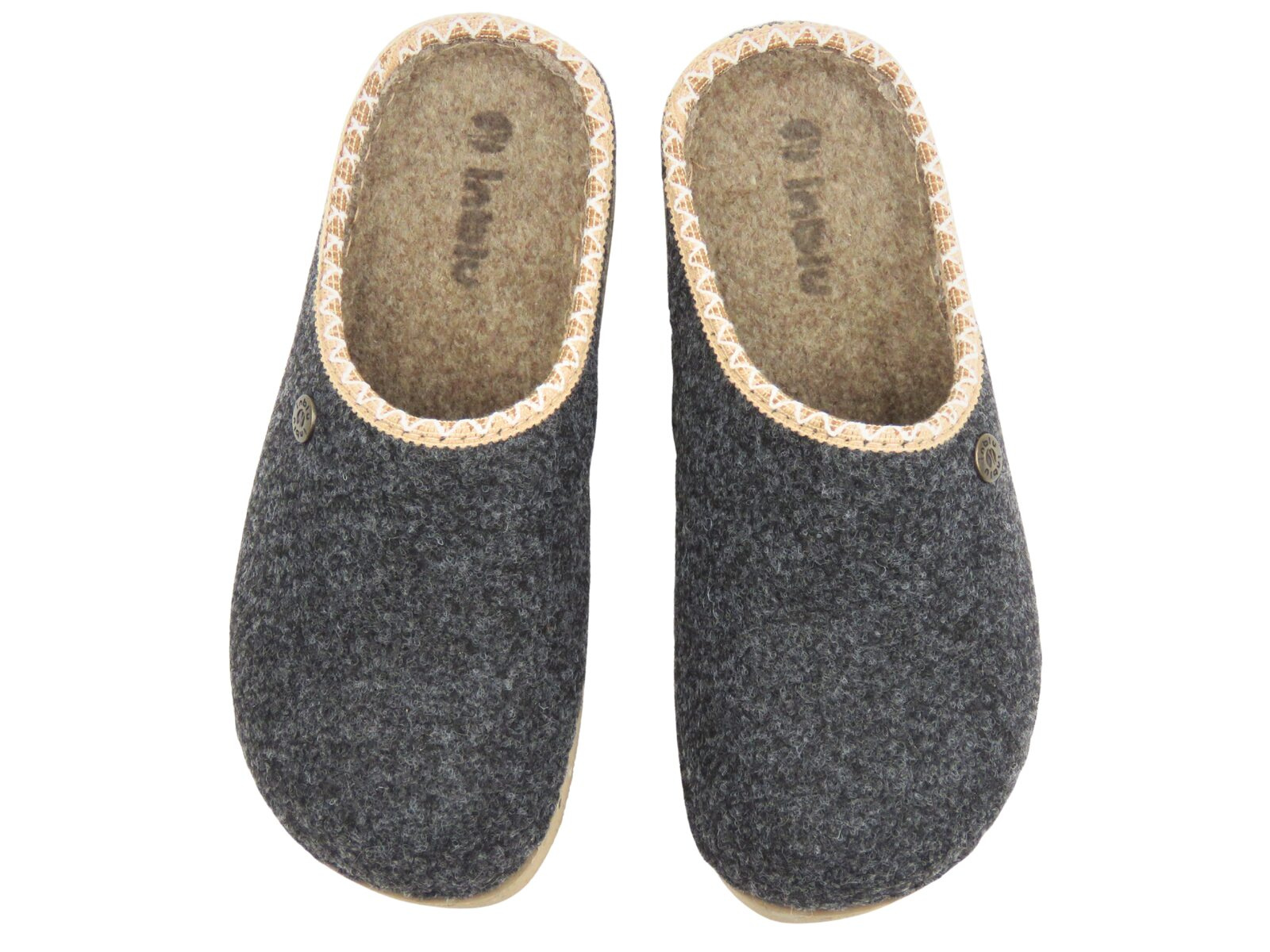 Wierzch, wnętrze oraz wkładka wykonane z filcu gwarantują naturalną izolację termiczną i miękkość, otulając stopy przyjemnym ciepłem. 3-centymetrowa podeszwa z lekkiego tworzywa o antypoślizgowej strukturze zapewnia stabilność i bezpieczeństwo na domowych nawierzchniach, jednocześnie amortyzując każdy krok.