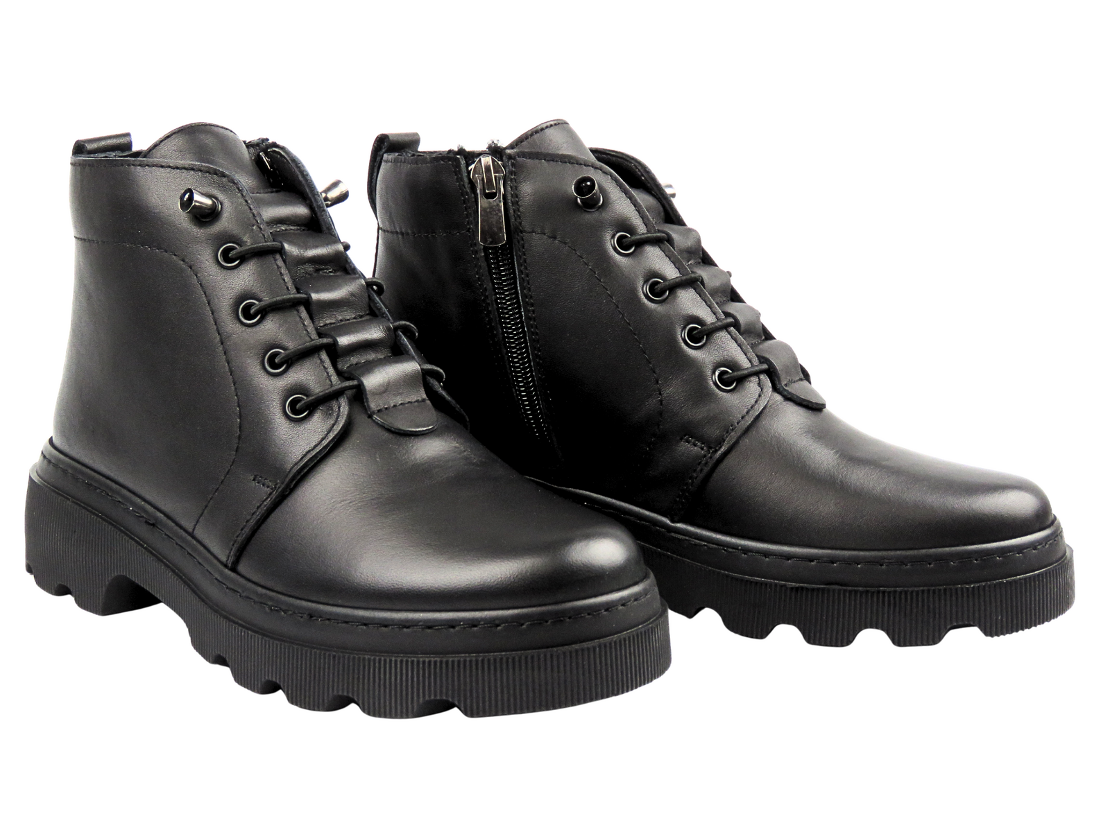 Skórzane botki damskie Nika Komfort H-2896, czarne
