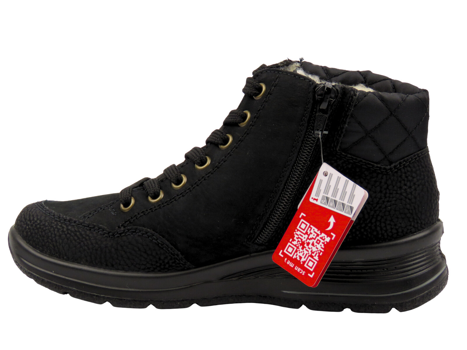 Botki damskie ocieplane - RIEKER L7701-00, czarne