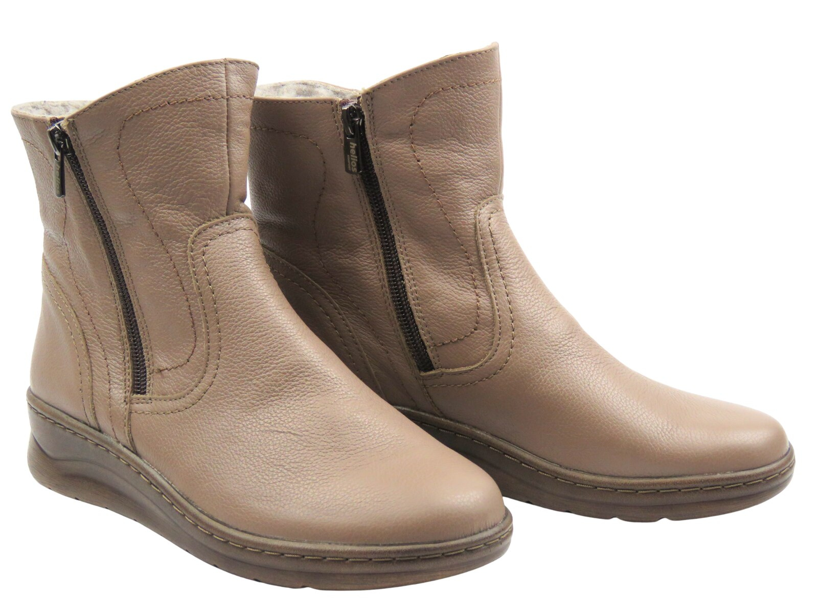 Wygodne botki damskie ocieplone kożuchem - HELIOS Komfort 788, khaki