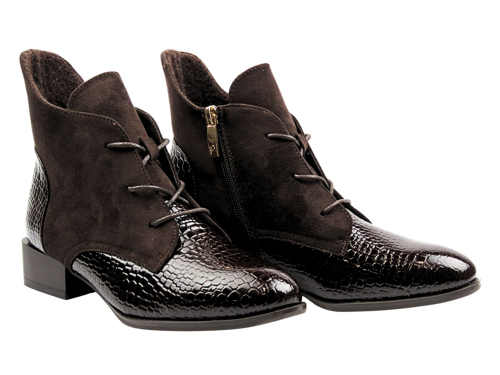 Ocieplane botki, trzewiki damskie brązowe Potocki 25-12498
