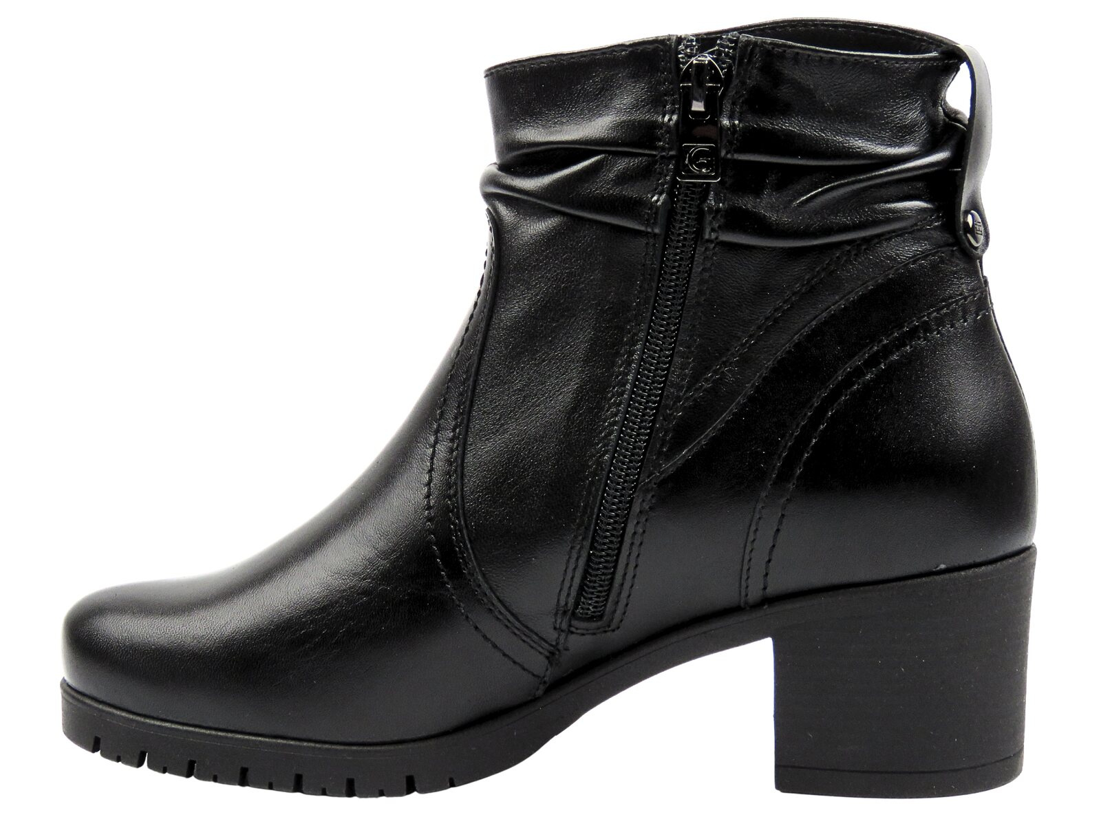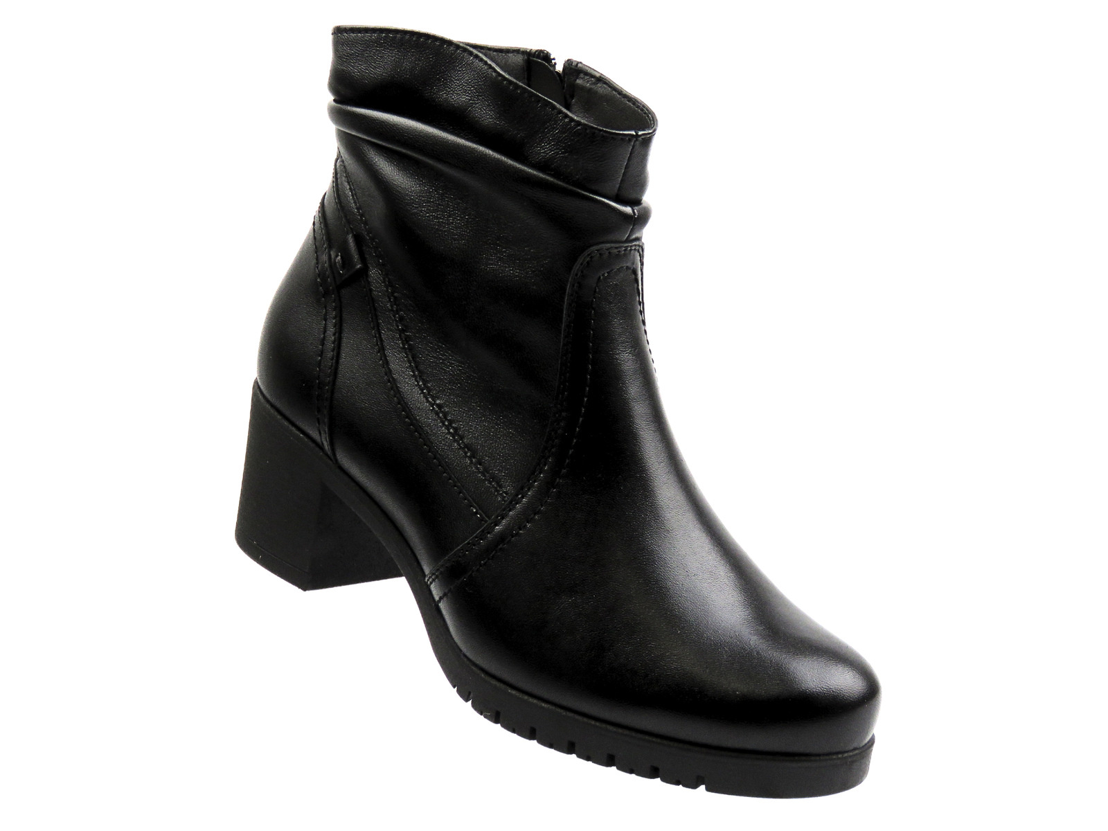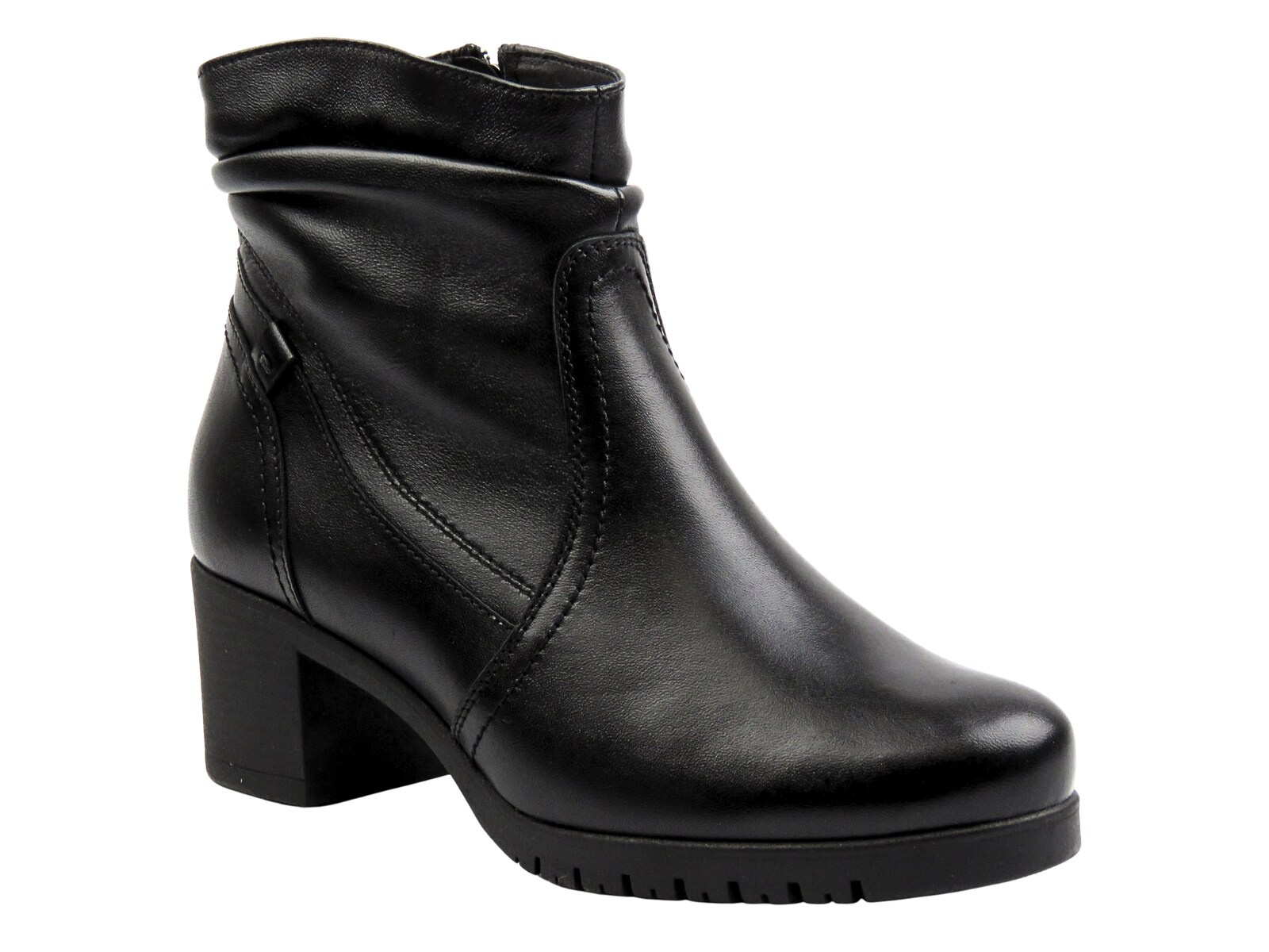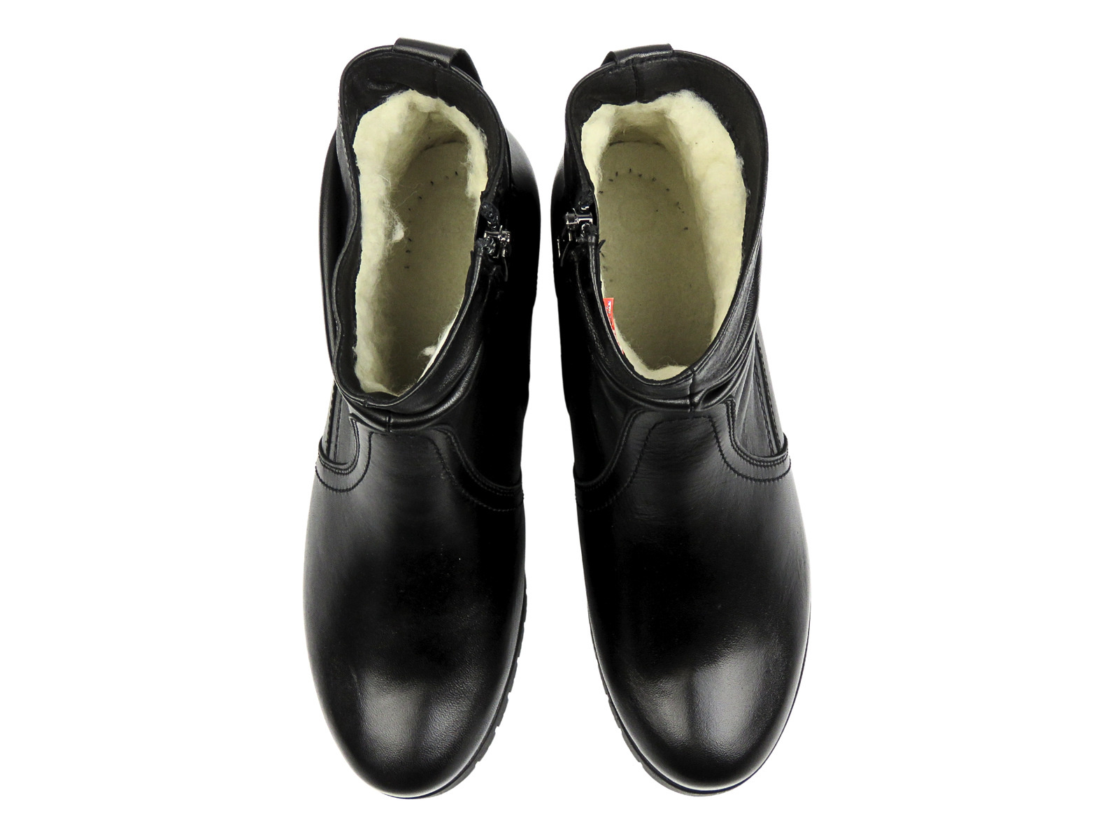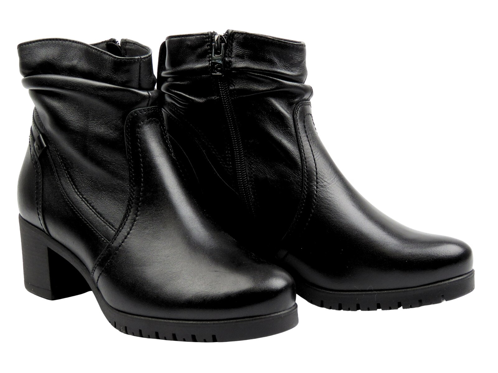 Wygodne, skórzane botki damskie na klocku - Galant 3320, czarne