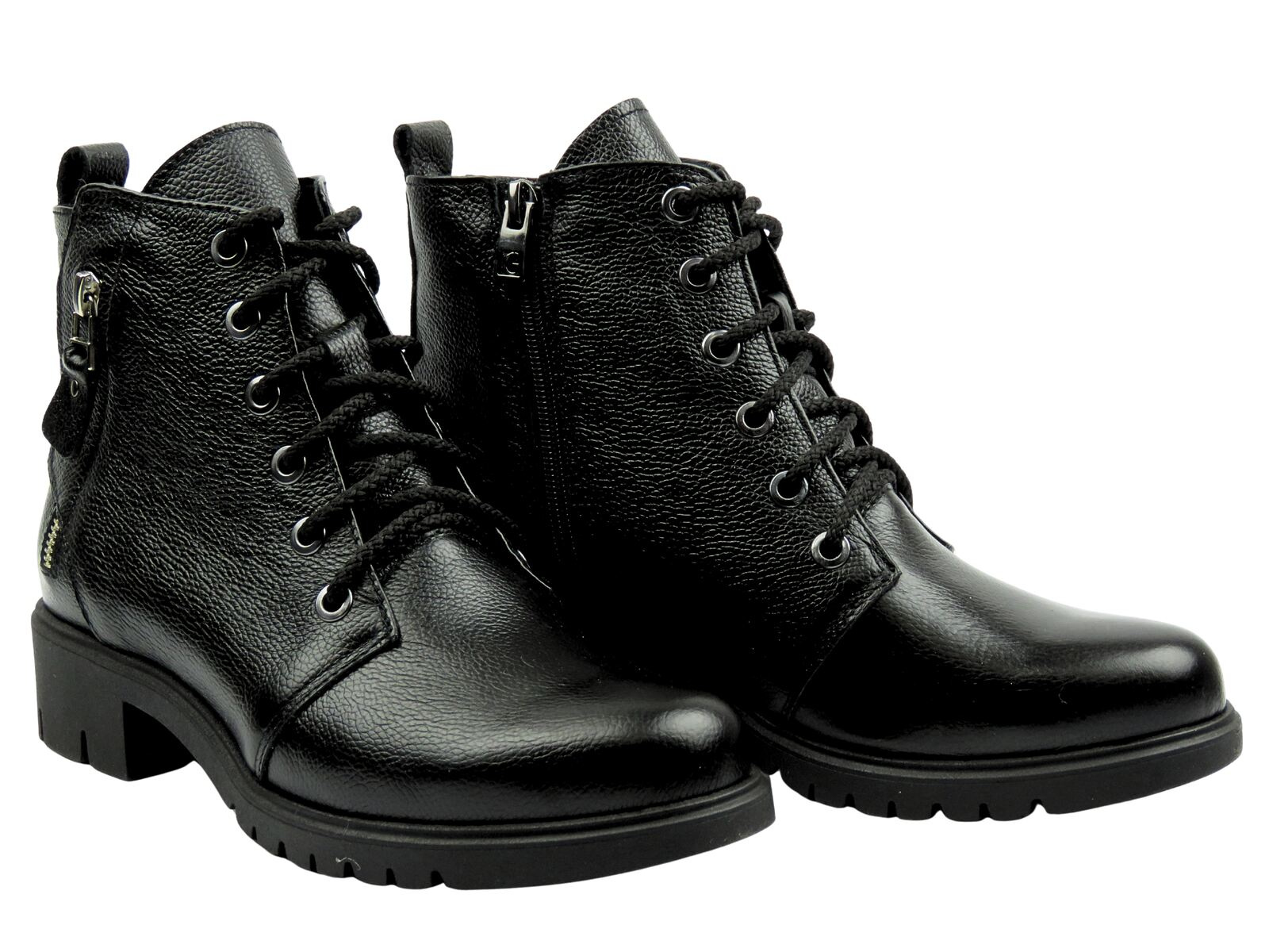 Wygodne, skórzane botki damskie na delikatnym obcasie - Galant 3343, czarne