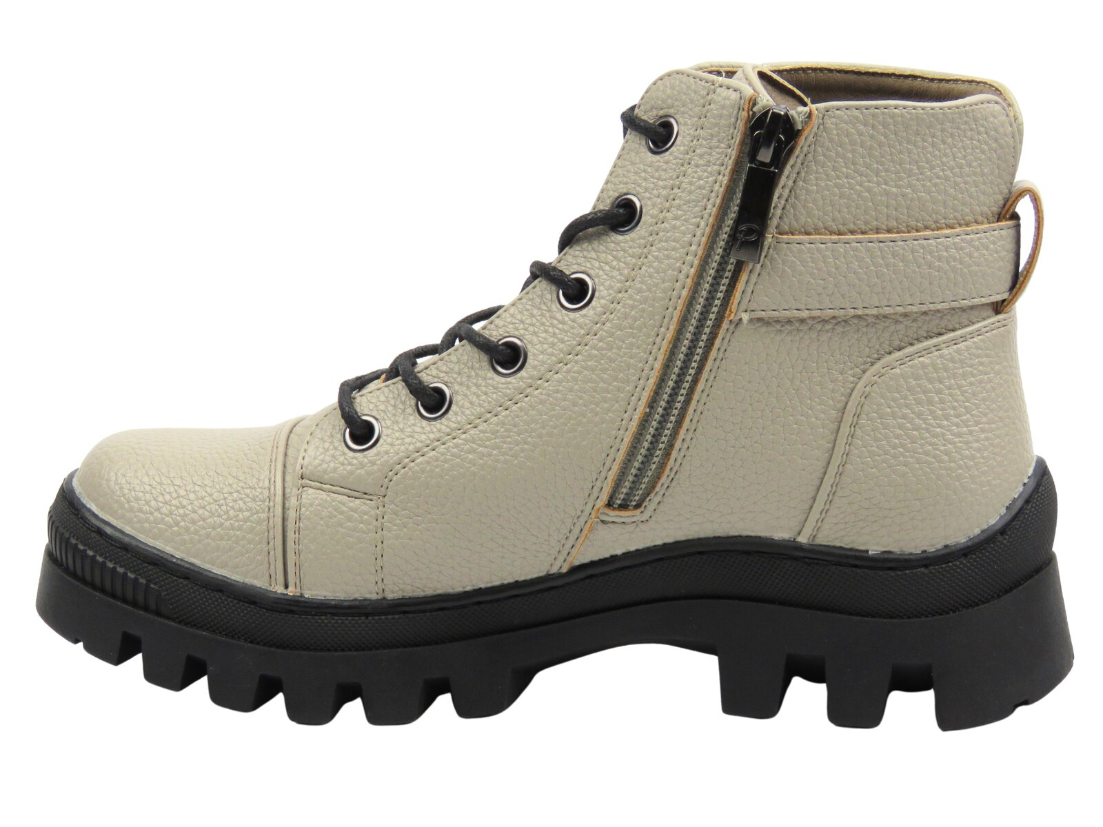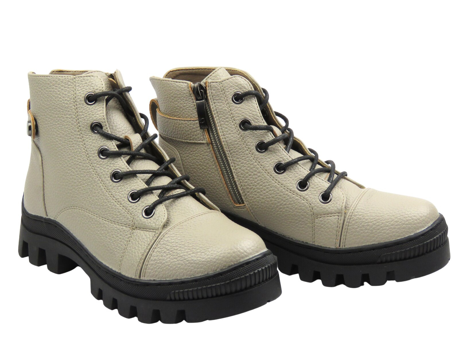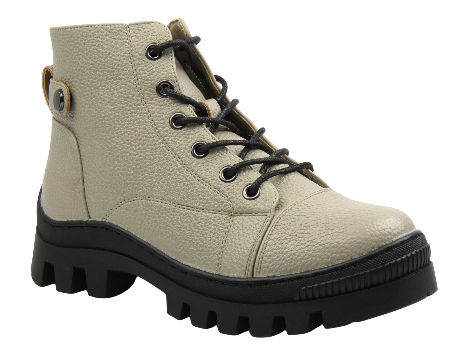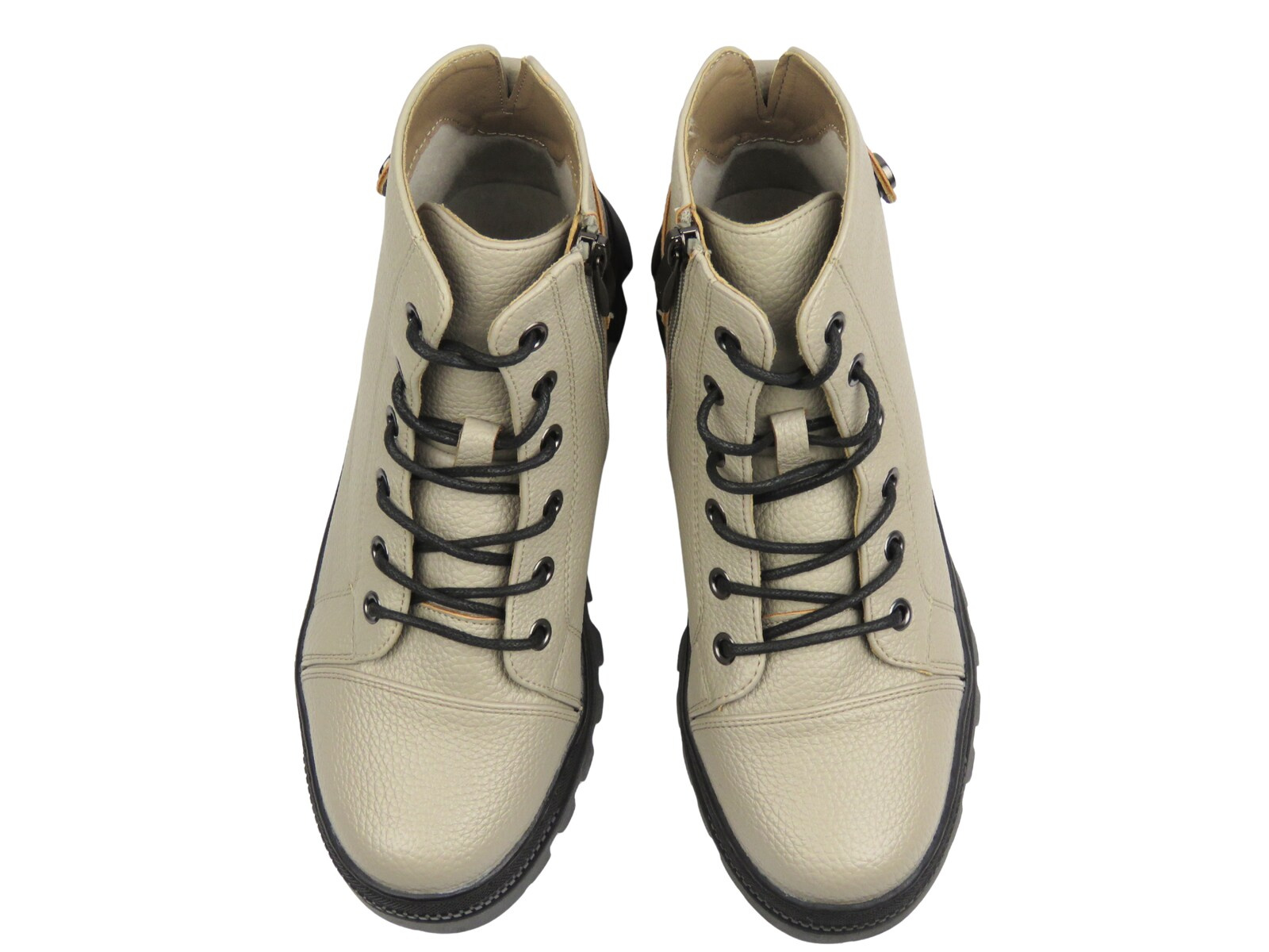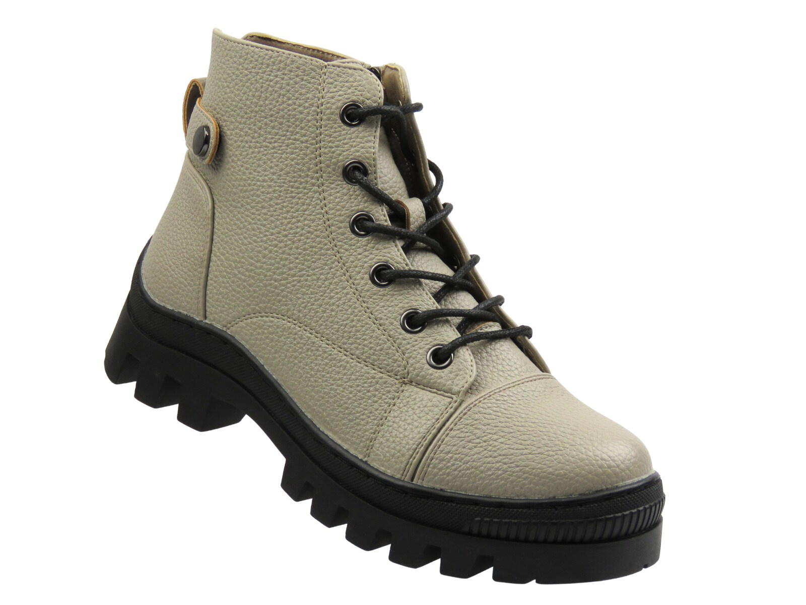 Ocieplane botki damskie - Potocki 25-19317, khaki lico