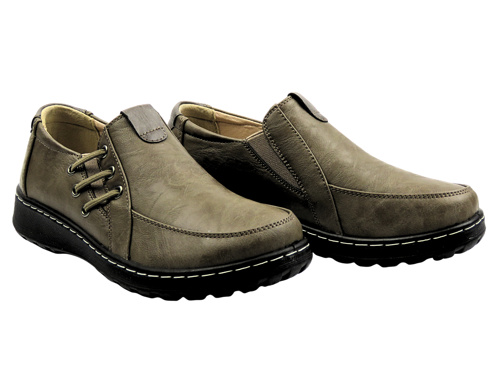 Wsuwane półbuty damskie khaki Potocki 25-90353