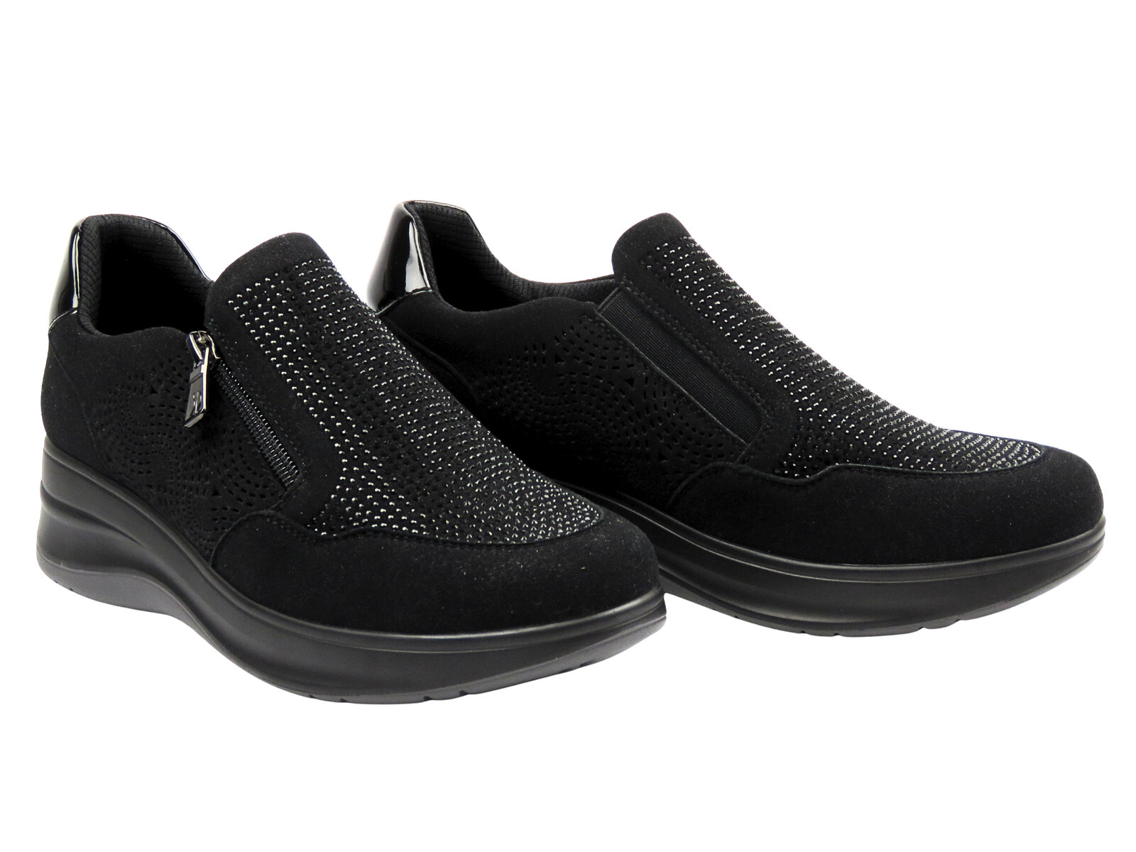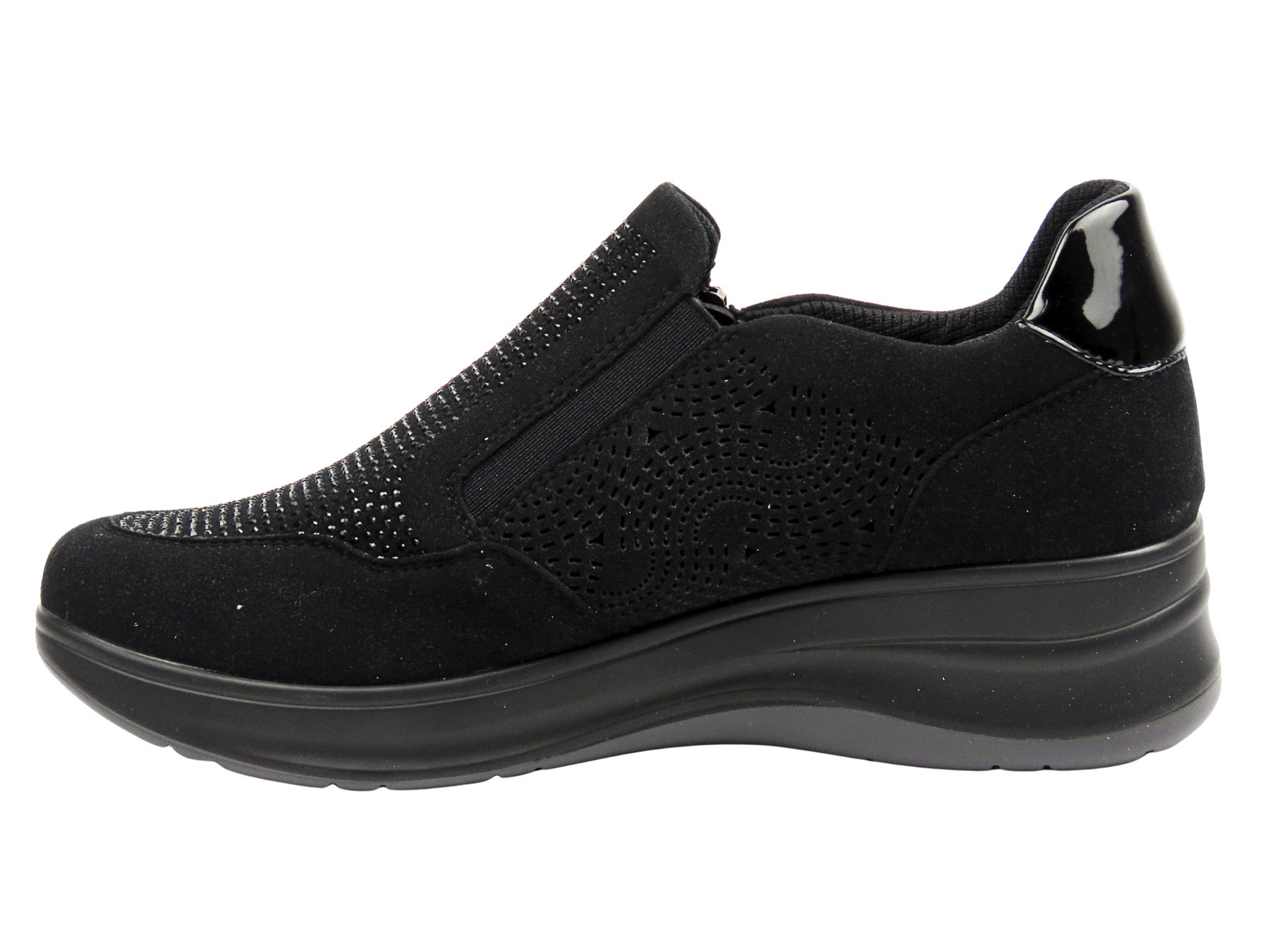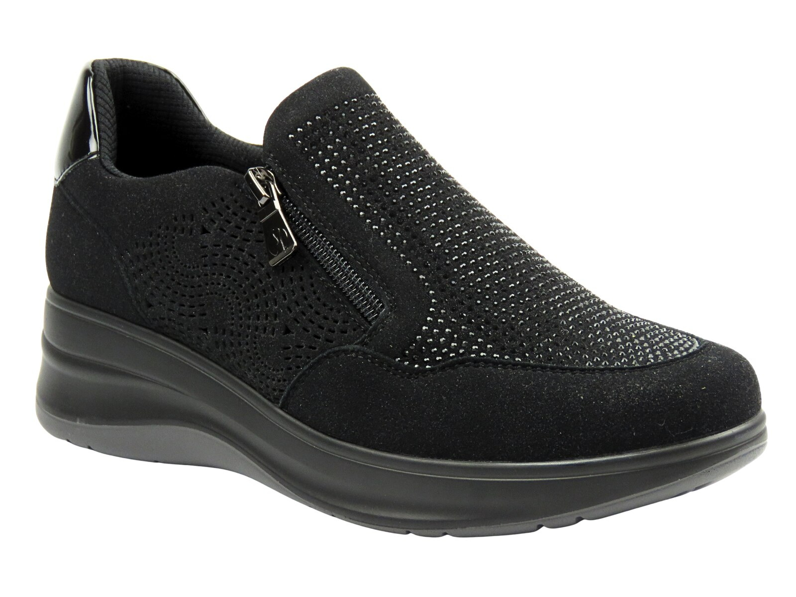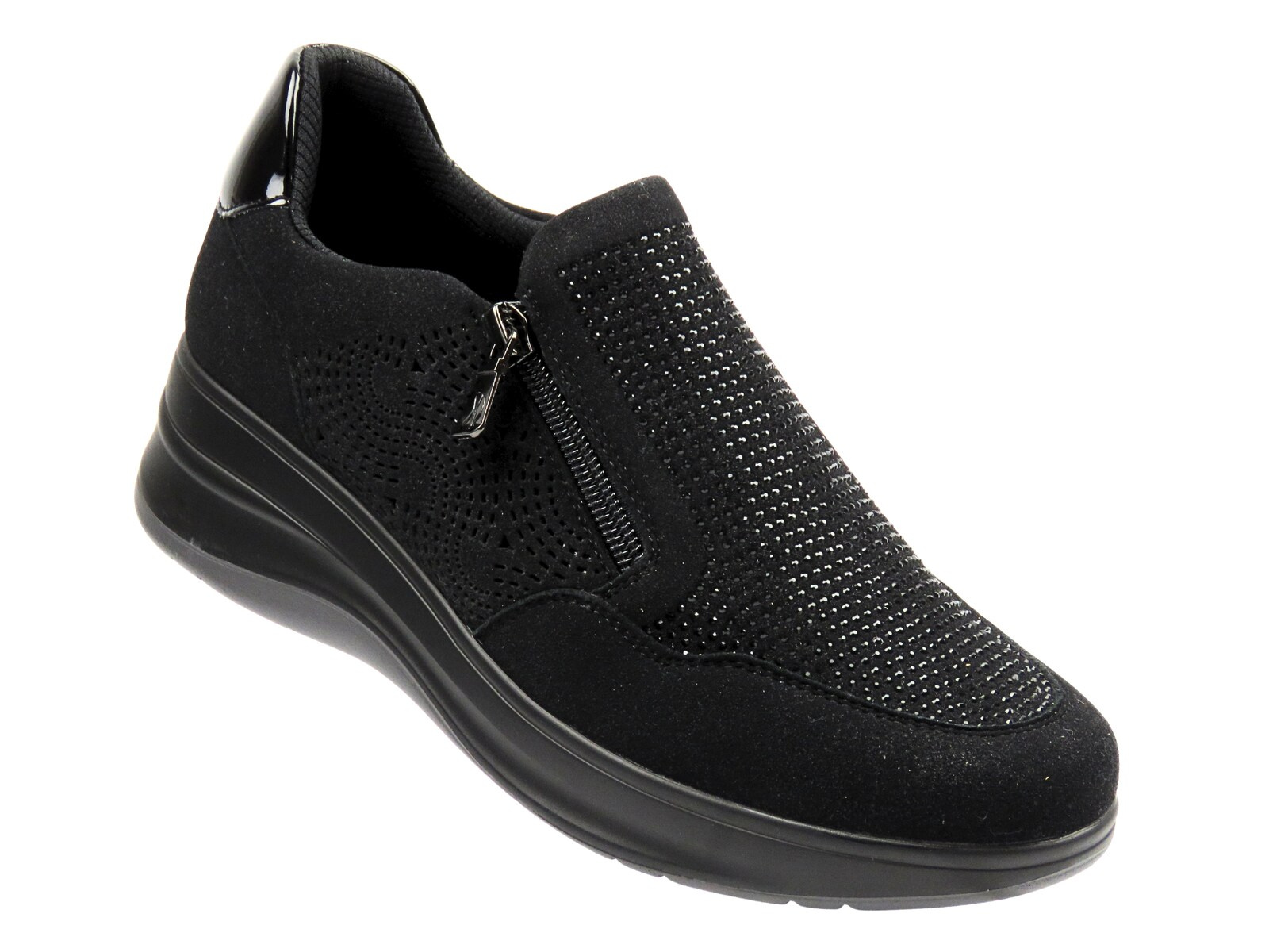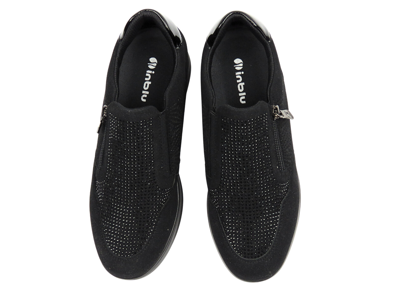 Inblu IC000050 to stylowe i wygodne damskie półbuty idealne do codziennego użytku. Wykonane z połączenia skóry ekologicznej i przewiewnej tkaniny, gwarantują komfort oraz trwałość. Czarny kolor z delikatnym połyskiem i subtelnymi aplikacjami dodaje im eleganckiego, nowoczesnego charakteru.