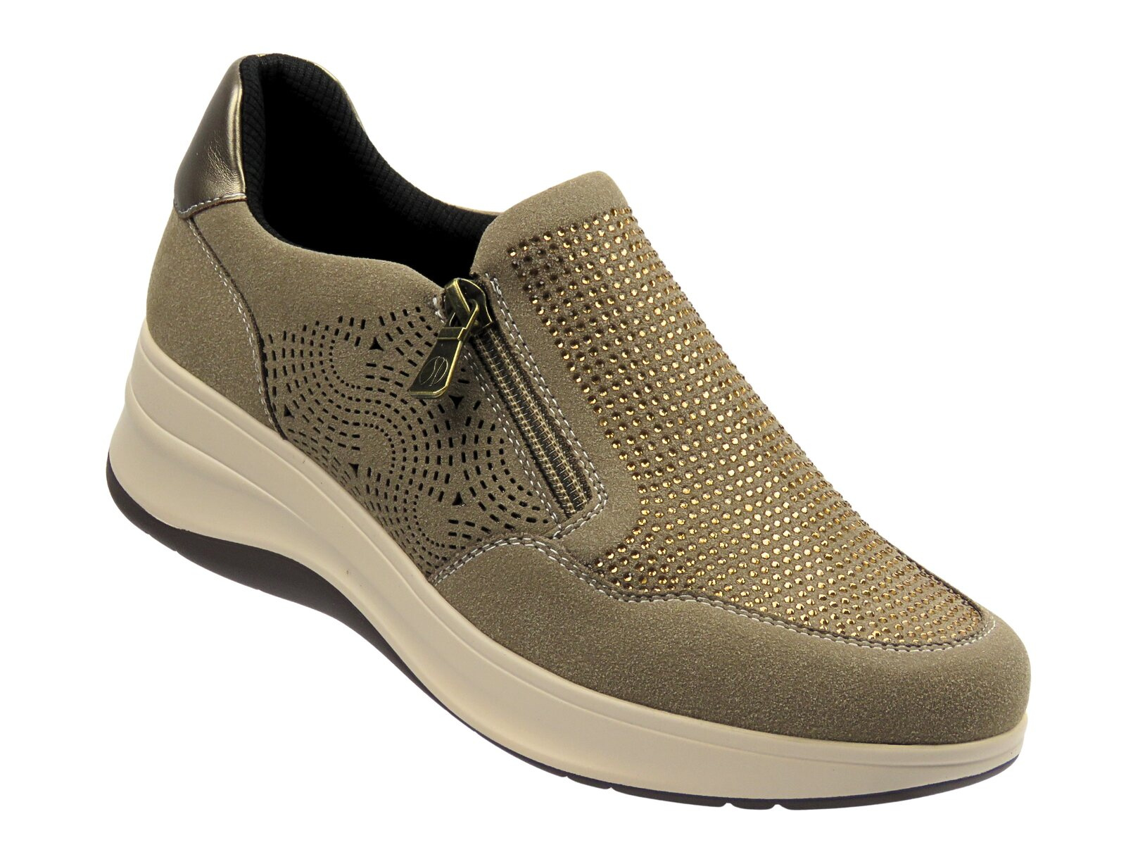 Miękka tekstylna wkładka i wnętrze dbają o wygodę przy każdym kroku, a lekka podeszwa o wysokości 4,5 cm zapewnia amortyzację i stabilność. Wygodny boczny suwak ułatwia zakładanie, a ażurowe zdobienia oraz drobne aplikacje tworzą stylowy, nowoczesny look.